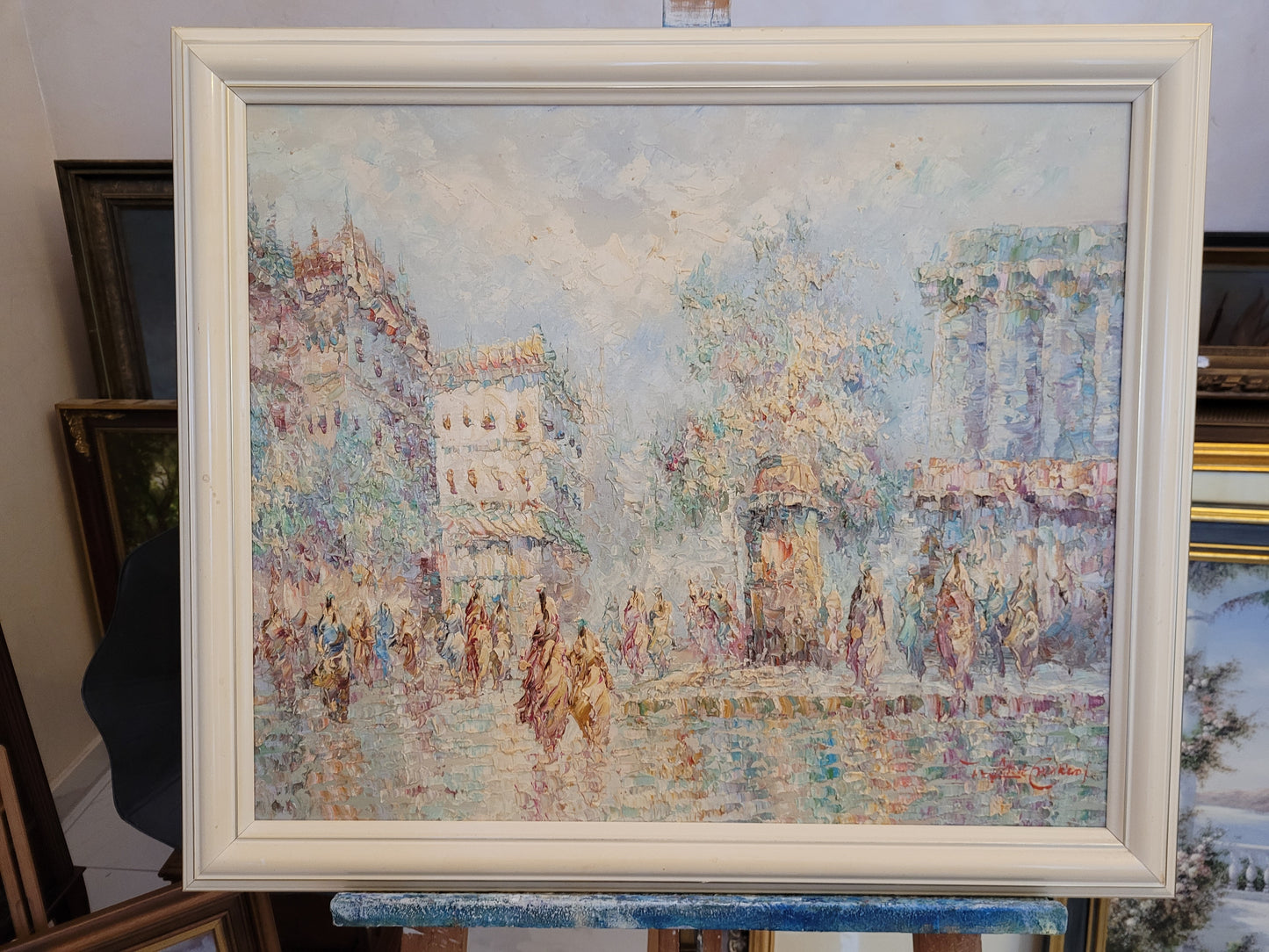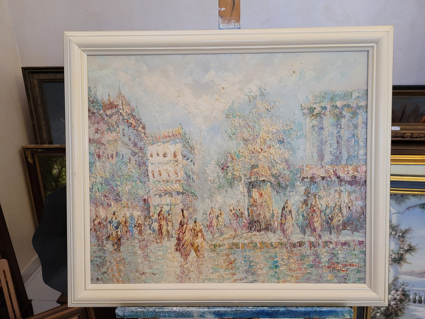 Europäische Schule (XX) Ölgemälde Pariser Straßenszene 60x70cm