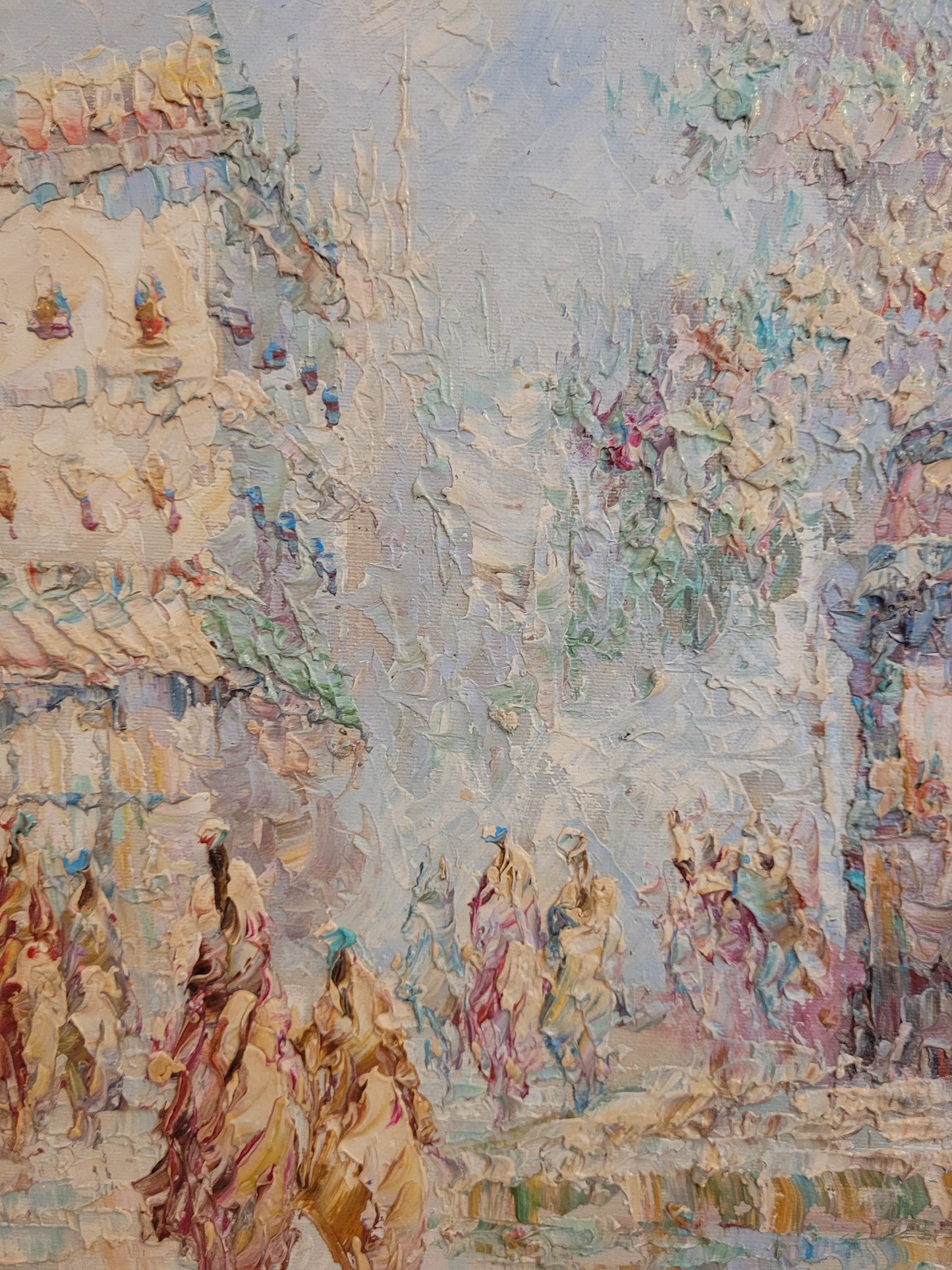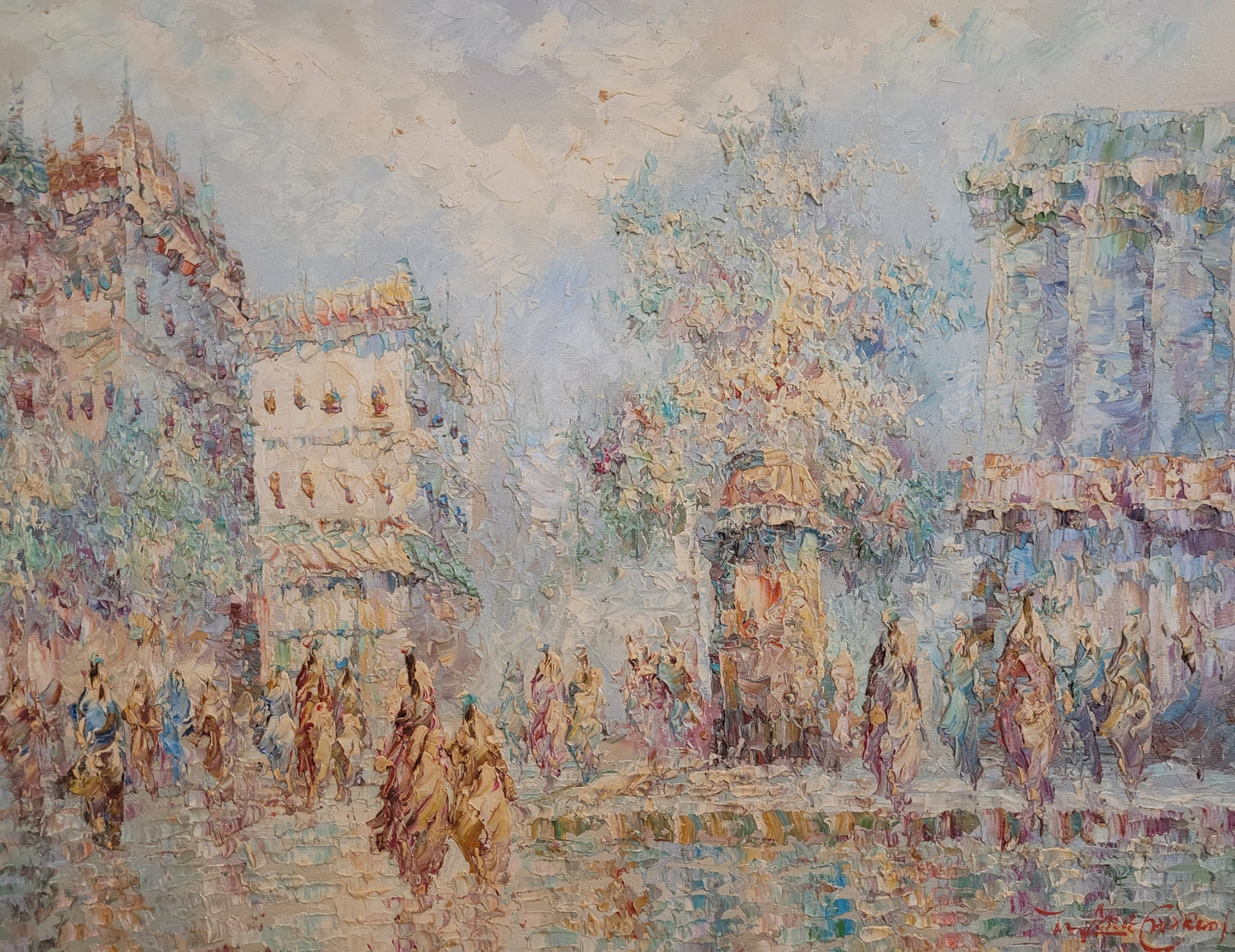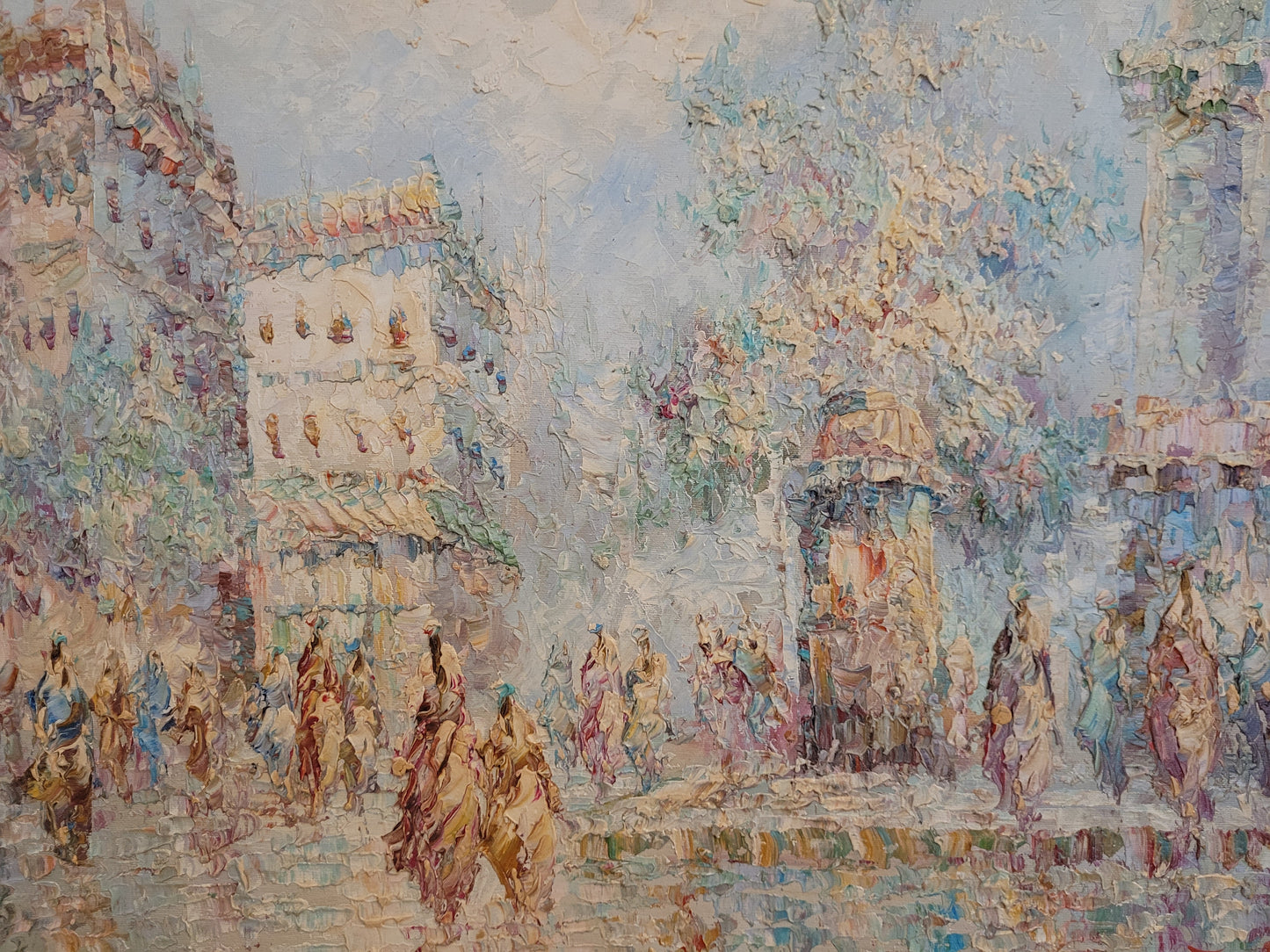 Beschreibung: Dieses faszinierende Ölgemälde entführt Sie in eine lebendige Pariser Straßenszene, eingefangen mit einer modernen und schnellen Pinselführung. Die lebendigen Farben und die dynamische Darstellung verleihen dem Gemälde eine pulsierende Energie und fangen die Atmosphäre der französischen Hauptstadt perfekt ein.