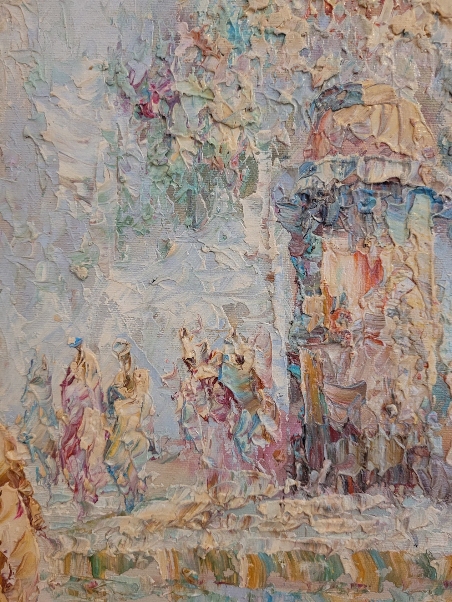 Der Zustand des Gemäldes ist als sehr gut zu bewerten, wie auf den beigefügten Fotos zu sehen ist. Diese einzigartige Arbeit der europäischen Schule wird sicherlich jeden Raum bereichern und bewundernde Blicke auf sich ziehen.