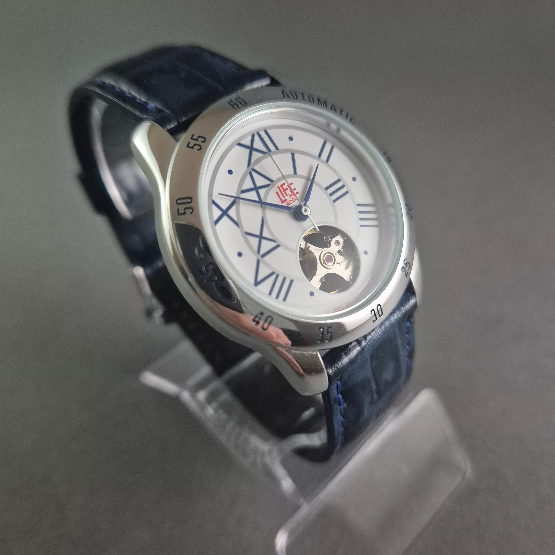 Diese elegante Automatikuhr von LIFE by ADEC besticht durch ihr klassisches Design mit römischen Ziffern und einem faszinierenden Sichtfenster zur offenen Unruh. Das Edelstahlgehäuse in Kombination mit dem blauen Lederarmband verleiht der Uhr einen hochwertigen und stilvollen Look. Die Automatikfunktion sorgt für einen präzisen Lauf ohne Batteriewechsel.