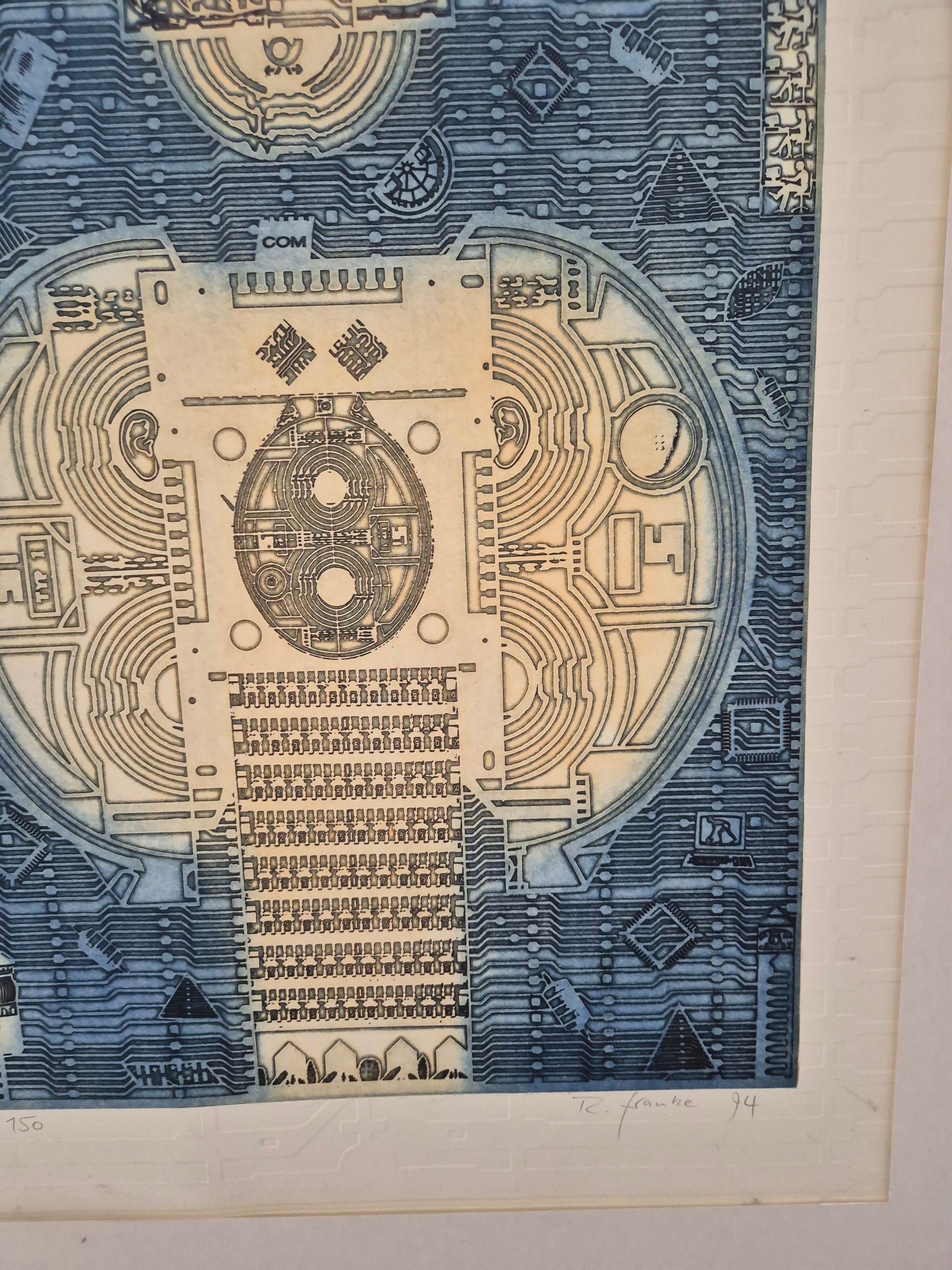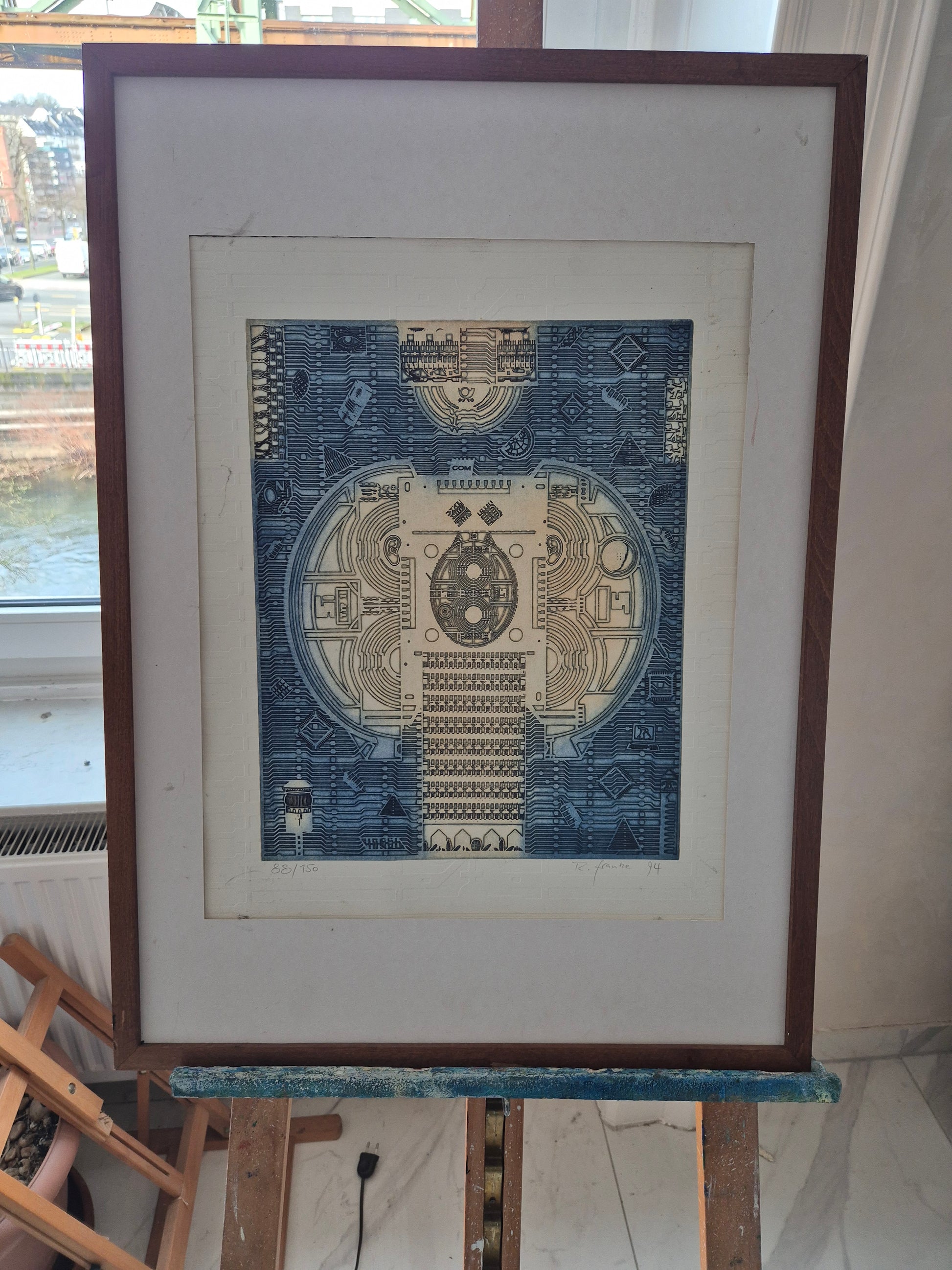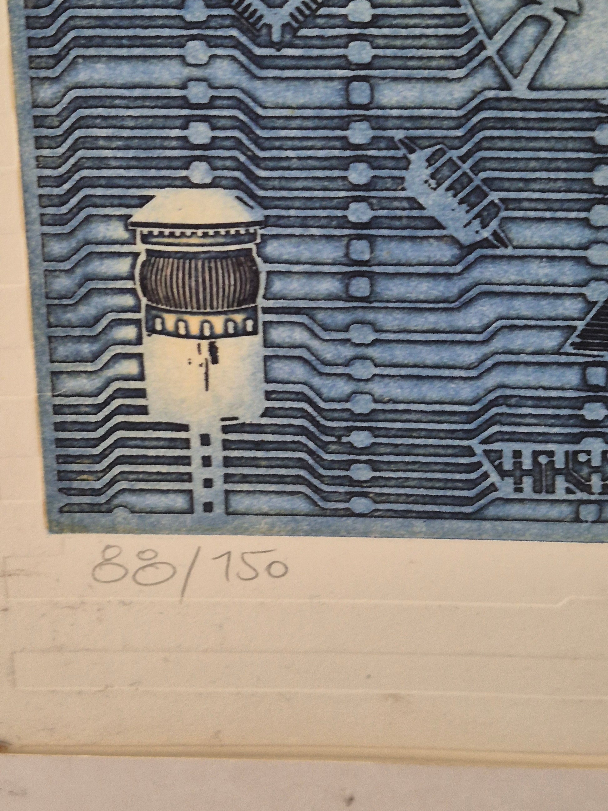 Beschreibung: Dieser beeindruckende Farbdruck von R. Franke (1994) zeigt eine Modellabbildung aus der Vogelperspektive. Die klare, präzise Linienführung und die interessante Perspektive machen das Werk zu einem einzigartigen Kunststück. Als limitierte Auflage (88 von 150) und mit Handsignatur des Künstlers versehen, erhält dieser Radierung einen exklusiven Wert und ist ein wahres Highlight für Kunstsammler.