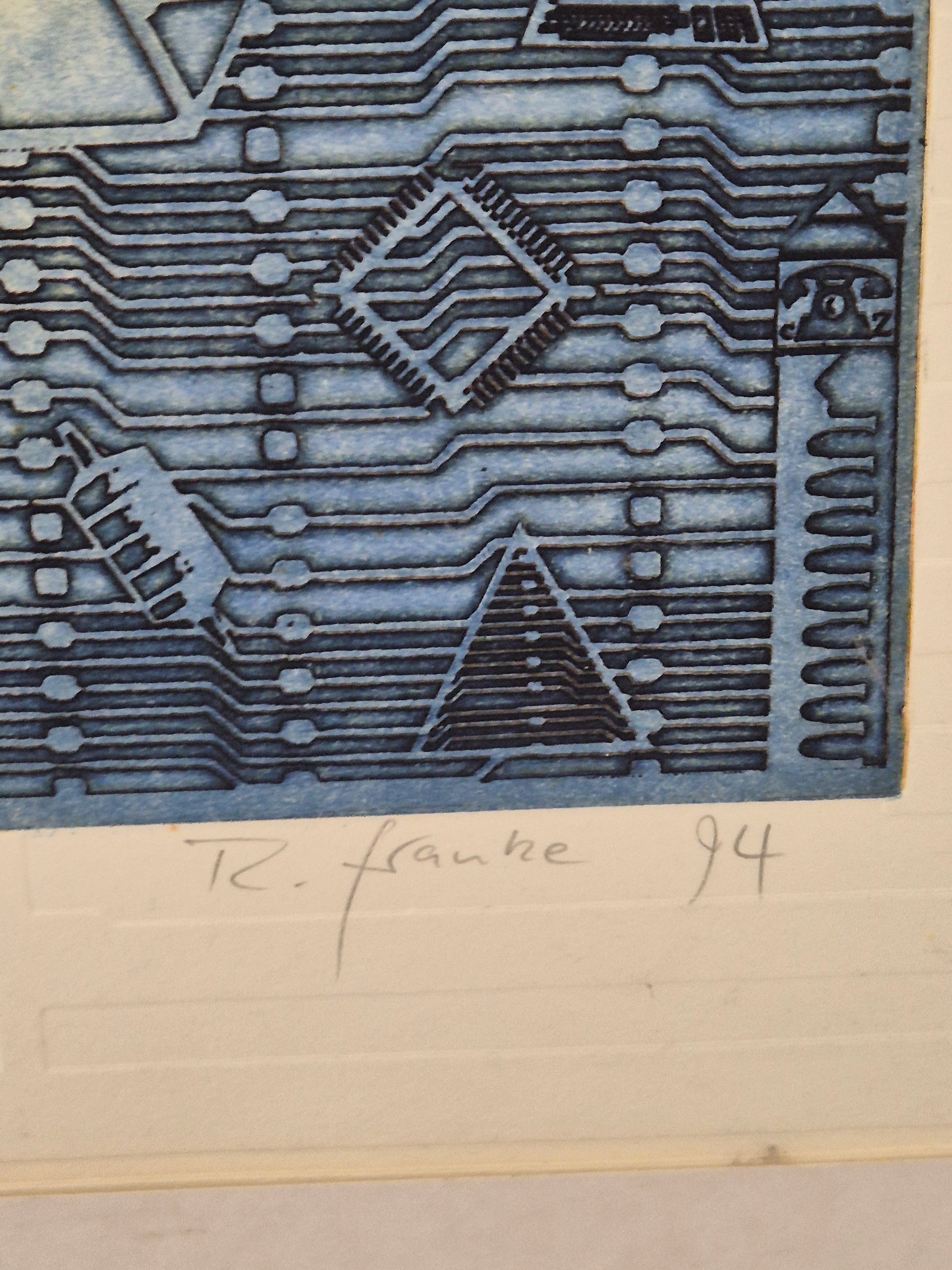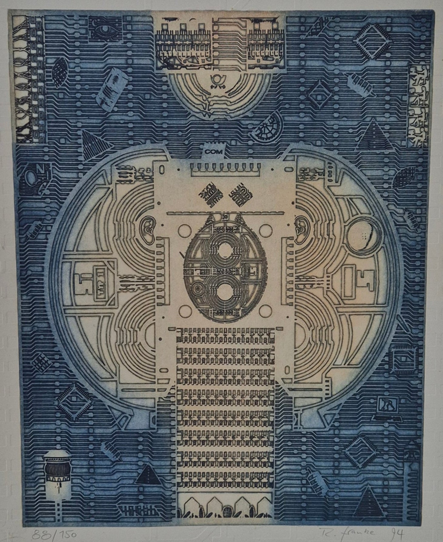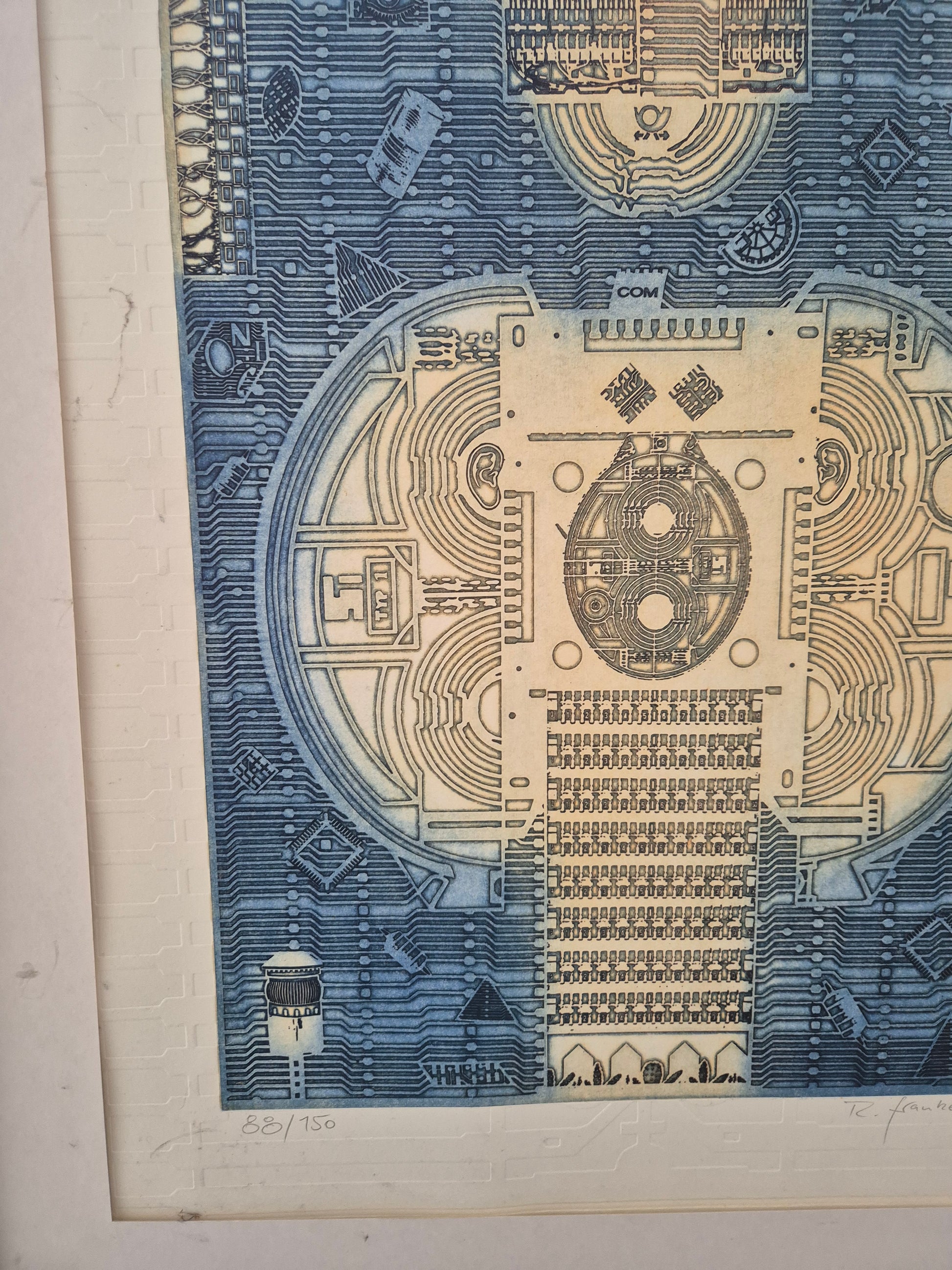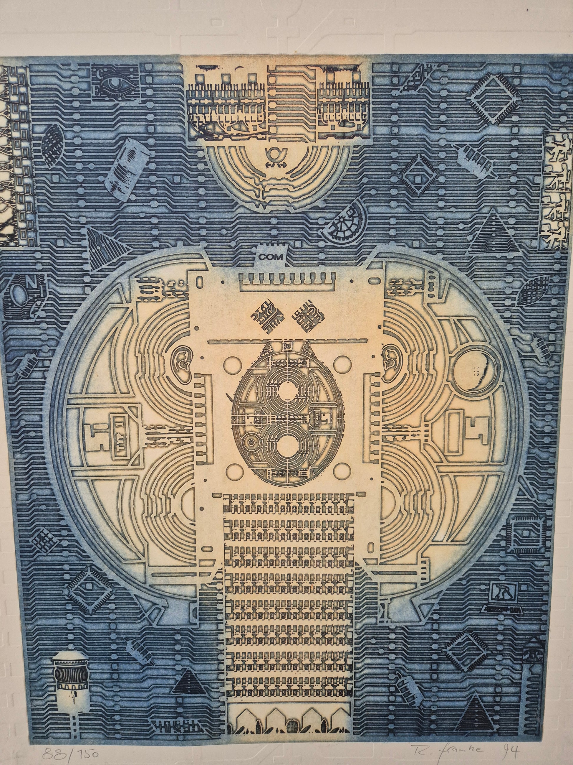 Beschreibung: Dieser beeindruckende Farbdruck von R. Franke (1994) zeigt eine Modellabbildung aus der Vogelperspektive. Die klare, präzise Linienführung und die interessante Perspektive machen das Werk zu einem einzigartigen Kunststück. Als limitierte Auflage (88 von 150) und mit Handsignatur des Künstlers versehen, erhält dieser Radierung einen exklusiven Wert und ist ein wahres Highlight für Kunstsammler.