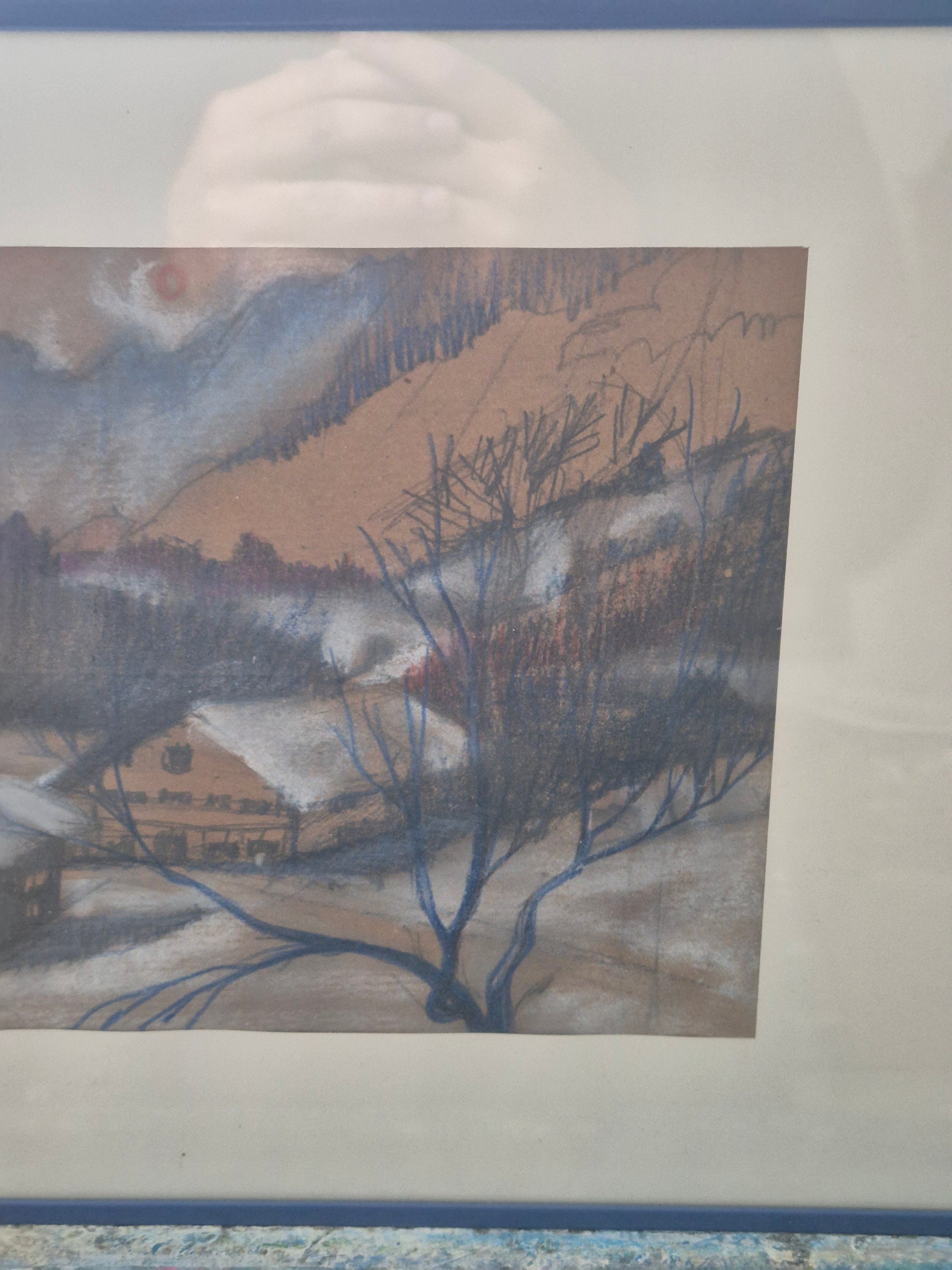 Gemälde Öl-/Mischtechnik Winterlandschaft um Abendrot