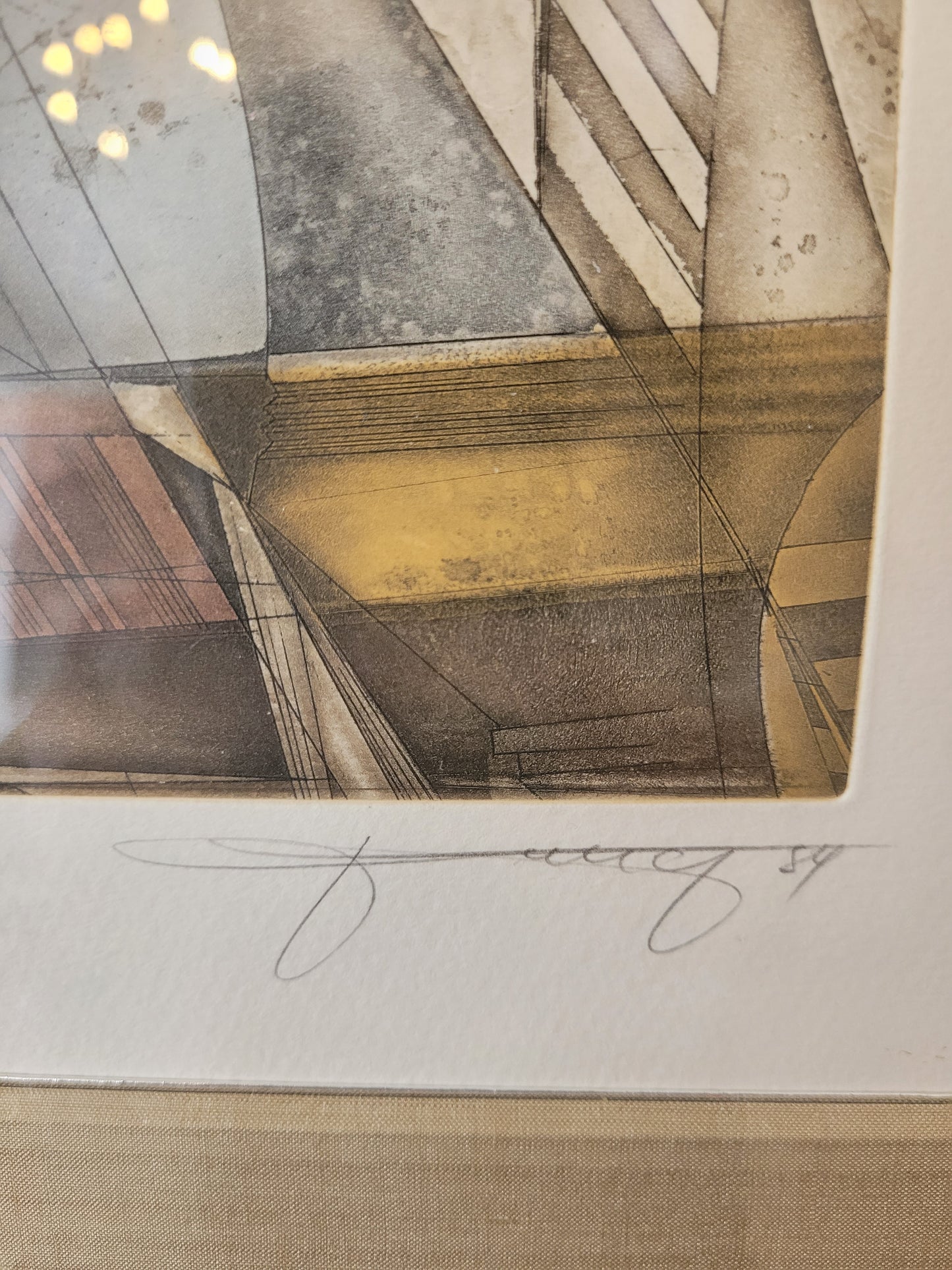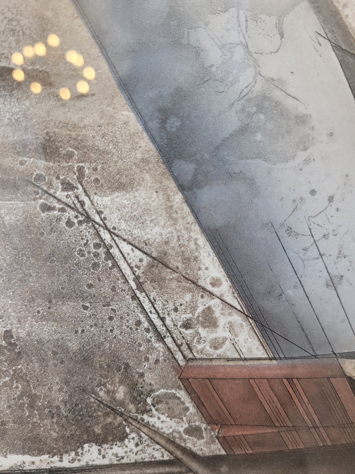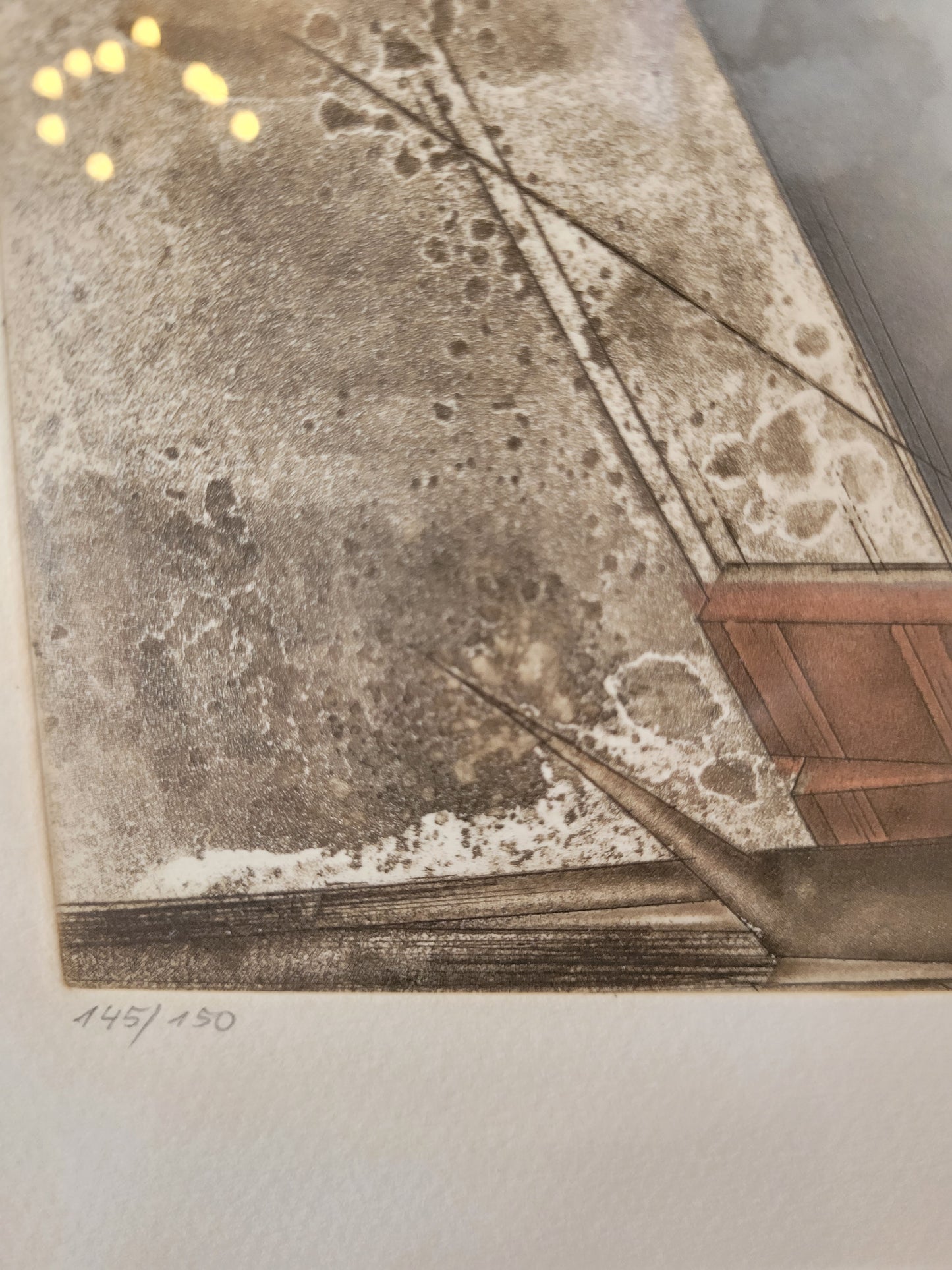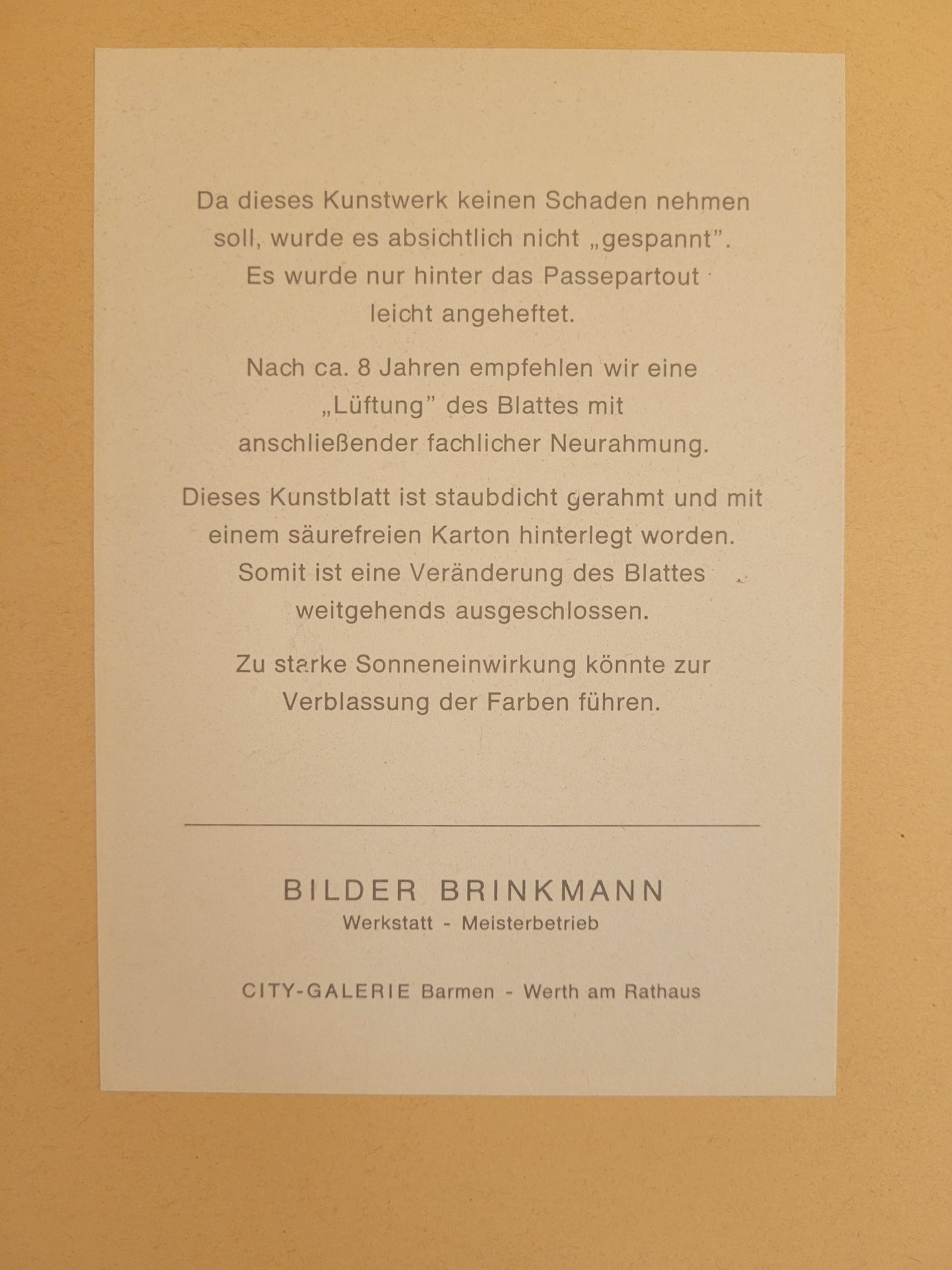 Der Zustand der Radierung ist sehr gut, wie auf den Fotos zu sehen ist. Diese Farbradierung ist nicht nur ein beeindruckendes Kunstwerk, sondern auch ein wertvolles Stück für Sammler und Liebhaber der Druckgrafik.