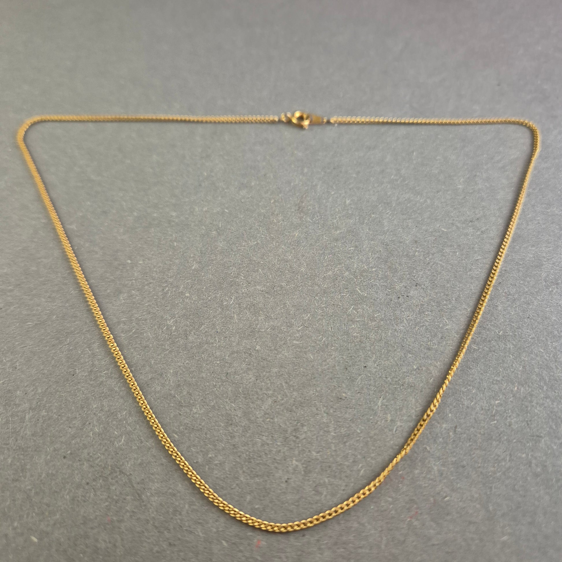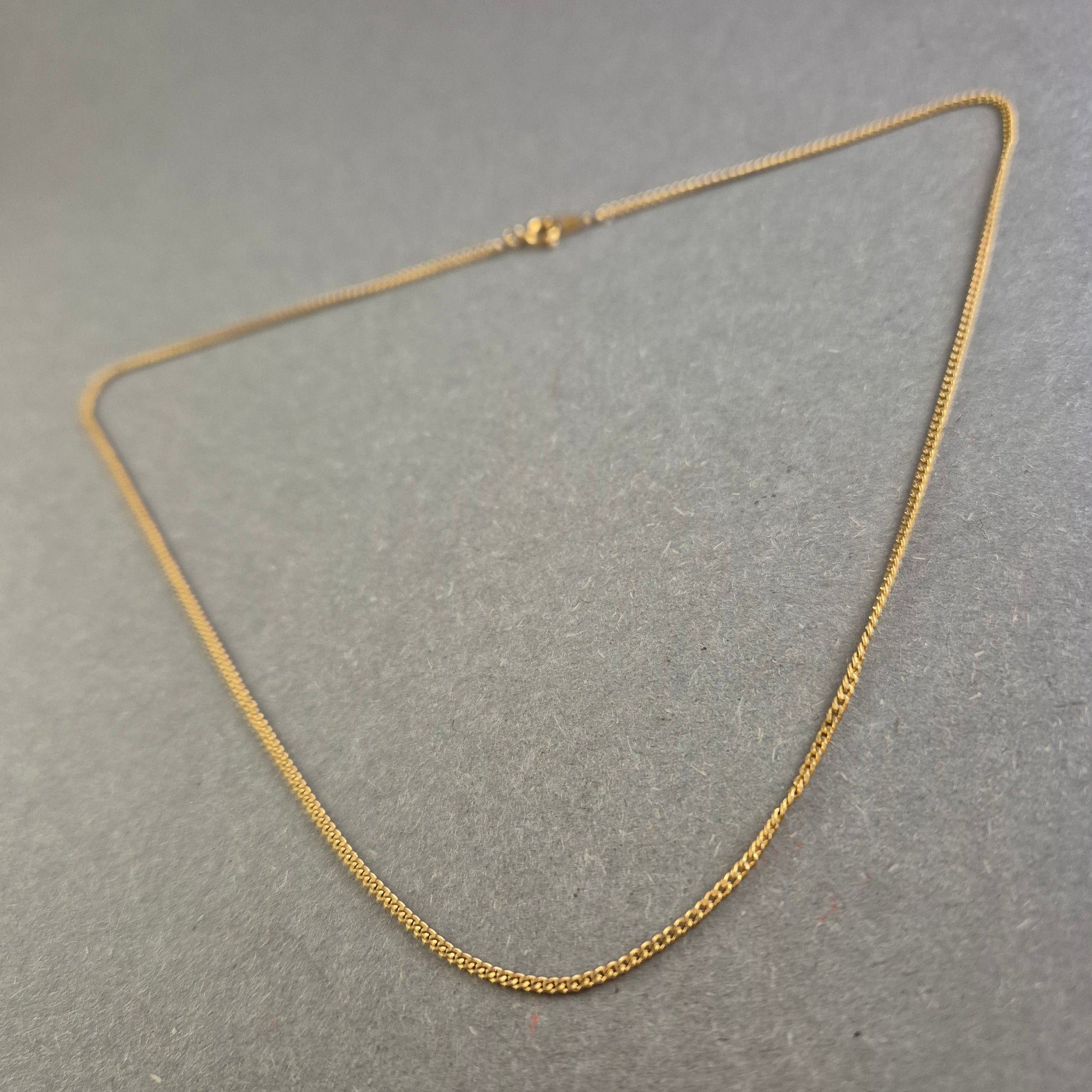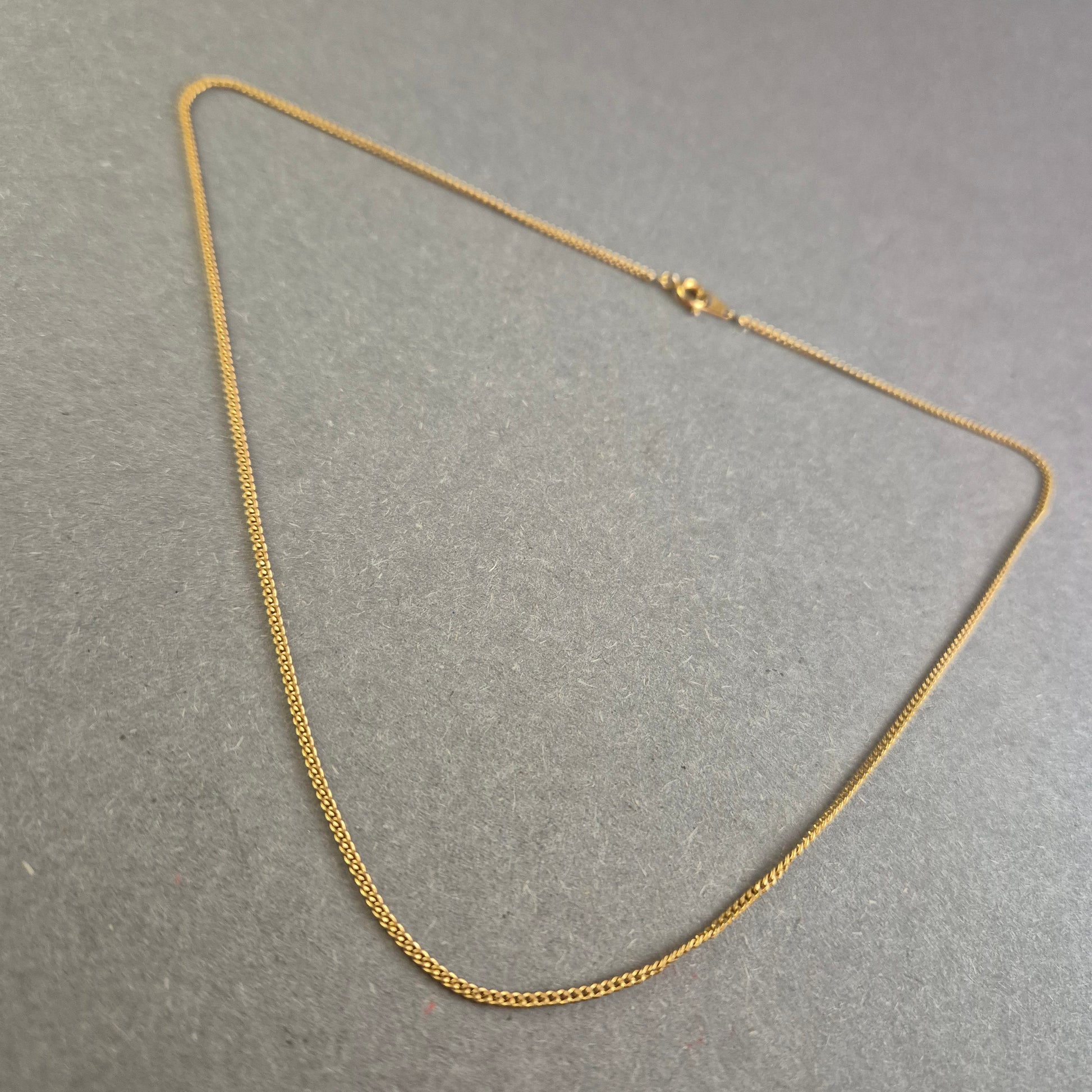 Diese elegante, goldfarbene Halskette besticht durch ihr zeitloses und filigranes Design. Die feingliedrige Kette eignet sich ideal zum Tragen allein oder in Kombination mit Anhängern. Dank ihres schlichten und dennoch edlen Stils passt sie zu jedem Outfit – ob casual oder elegant. Der stabile Federringverschluss sorgt für sicheren Halt.