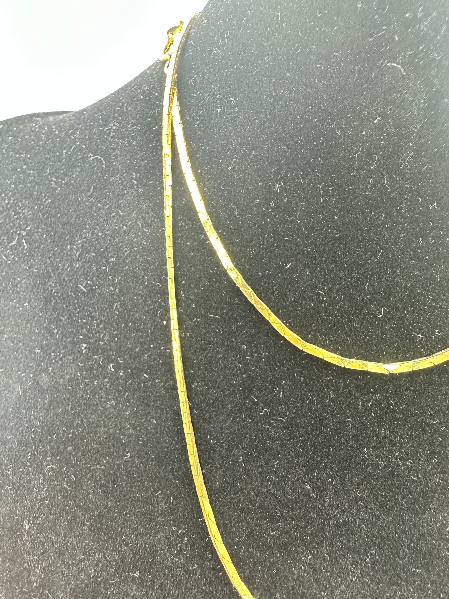 Stilvolle Vielseitigkeit: Diese exquisite vergoldete Halskette ist das perfekte Accessoire für jeden Anlass, sei es ein formelles Event oder ein lässiger Tag im Büro. Sie fügt jedem Outfit eine subtile Note von Glanz und Raffinesse hinzu und lässt Sie in jedem Moment strahlen.