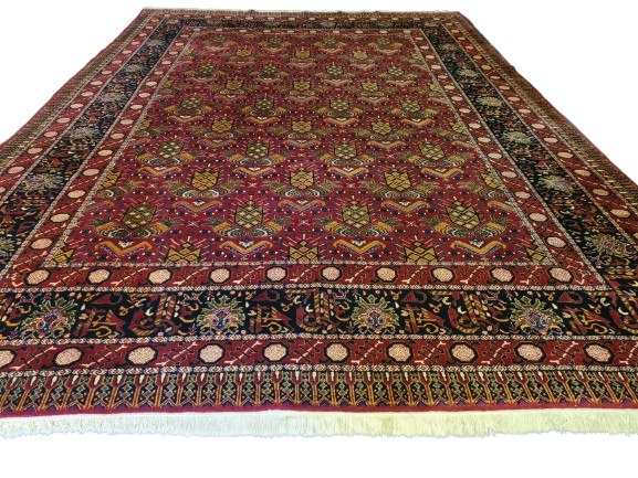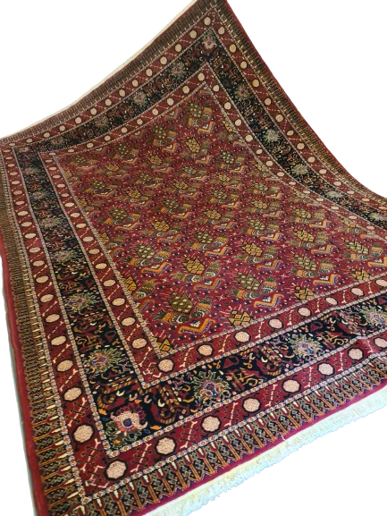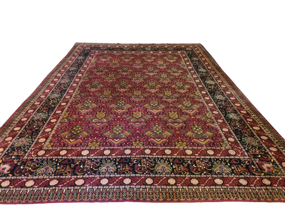 Beschreibung: Dieser königliche Palastteppich aus Perser Meshad verkörpert die zeitlose Schönheit und das Erbe orientalischer Teppichkunst. Sein reichhaltiges Blumenmotiv und die feinen Materialien machen ihn zu einem begehrten Stück für Sammler und Liebhaber traditioneller Handwerkskunst. Perfekt für Wohnzimmer, Esszimmer oder Bibliotheken – dieser Teppich wird jedem Raum eine königliche Aura verleihen.