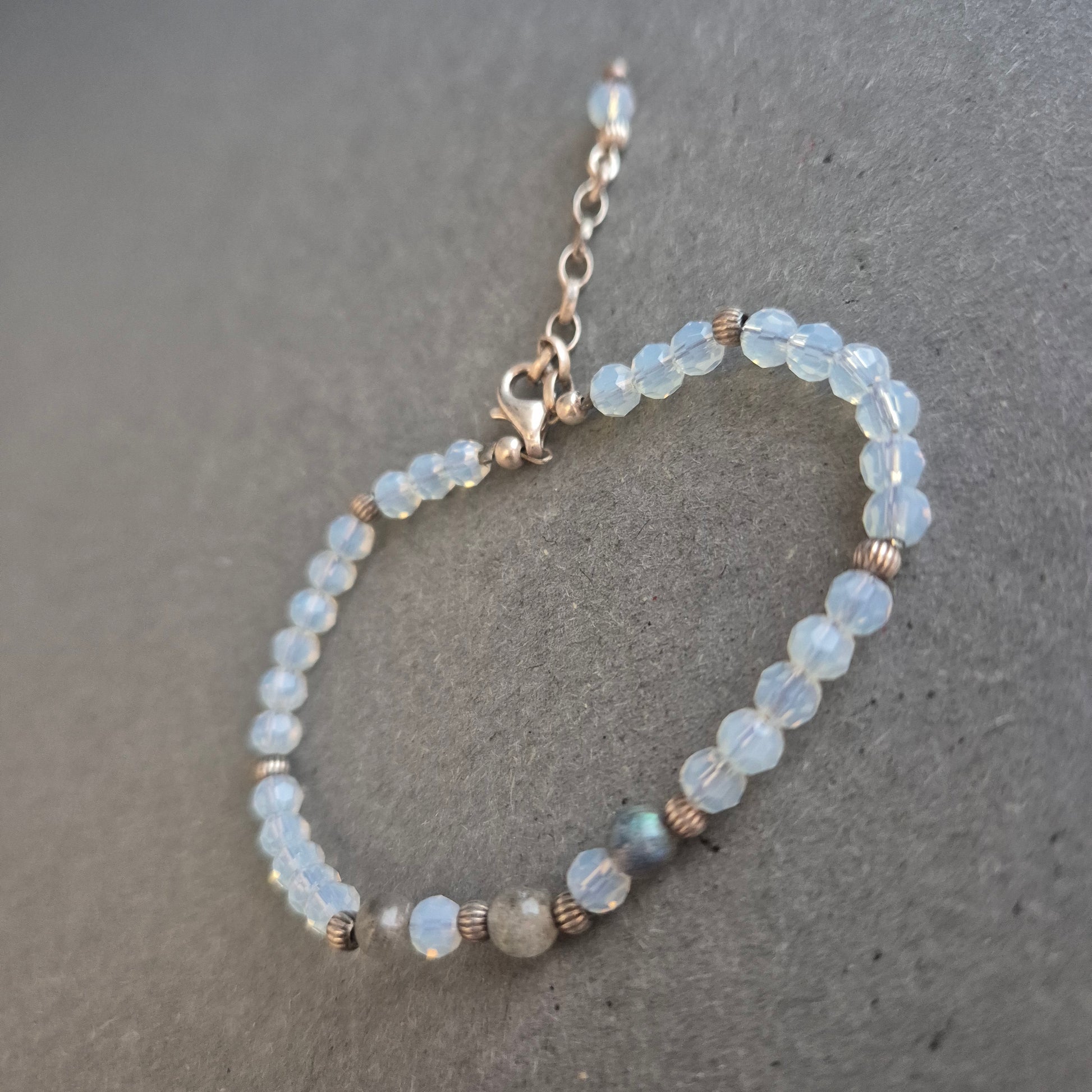 Feines Armband mit Opalglasperlen – Zartes Funkeln in Hellblau