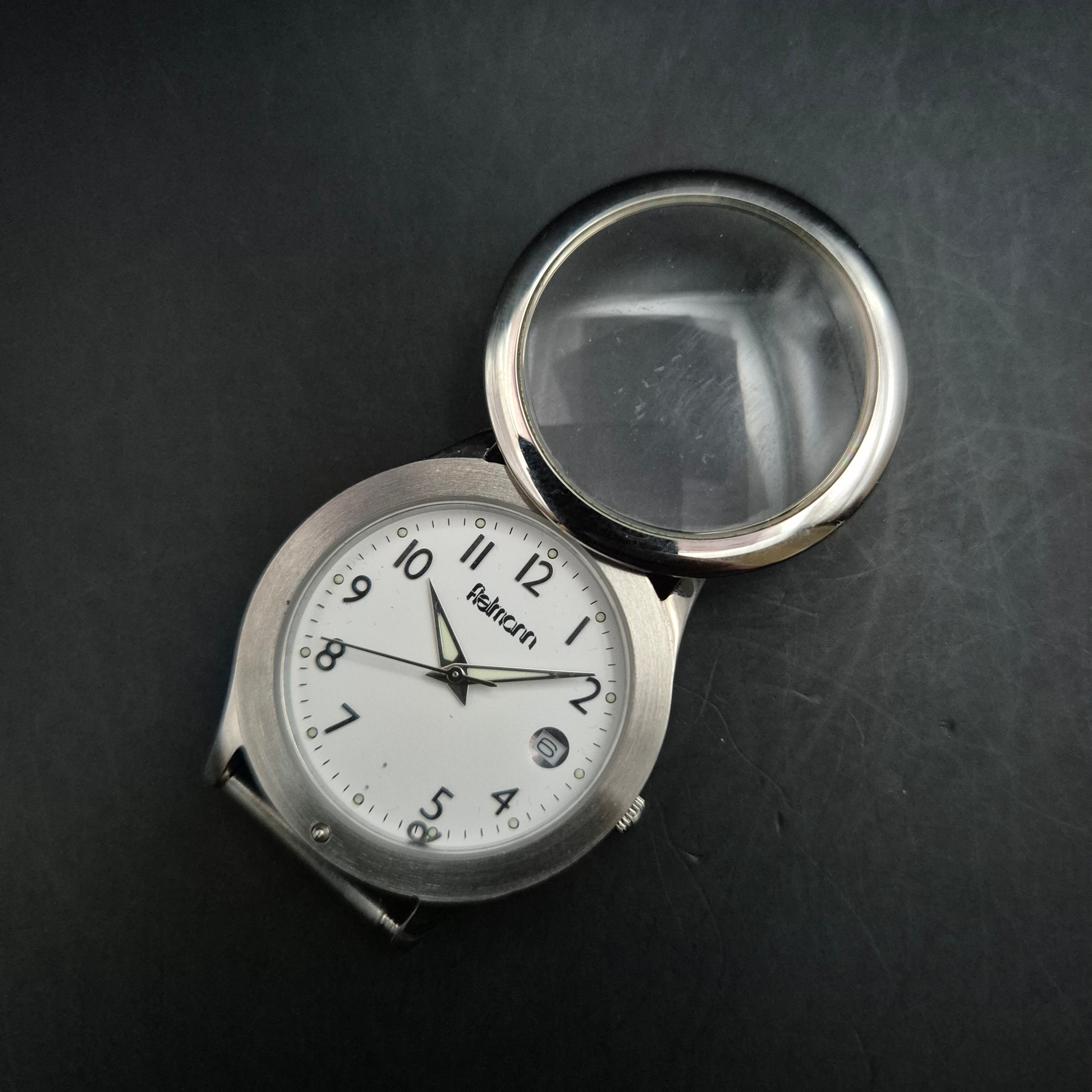 Fielmann Uhr – Edelstahl mit Klappglas & Datumsanzeige