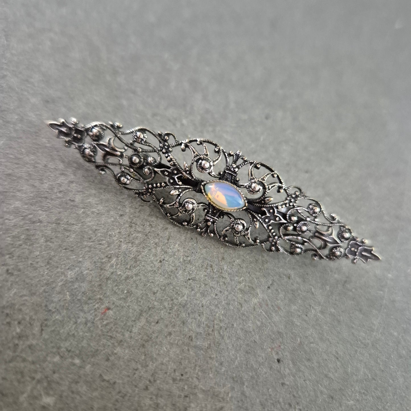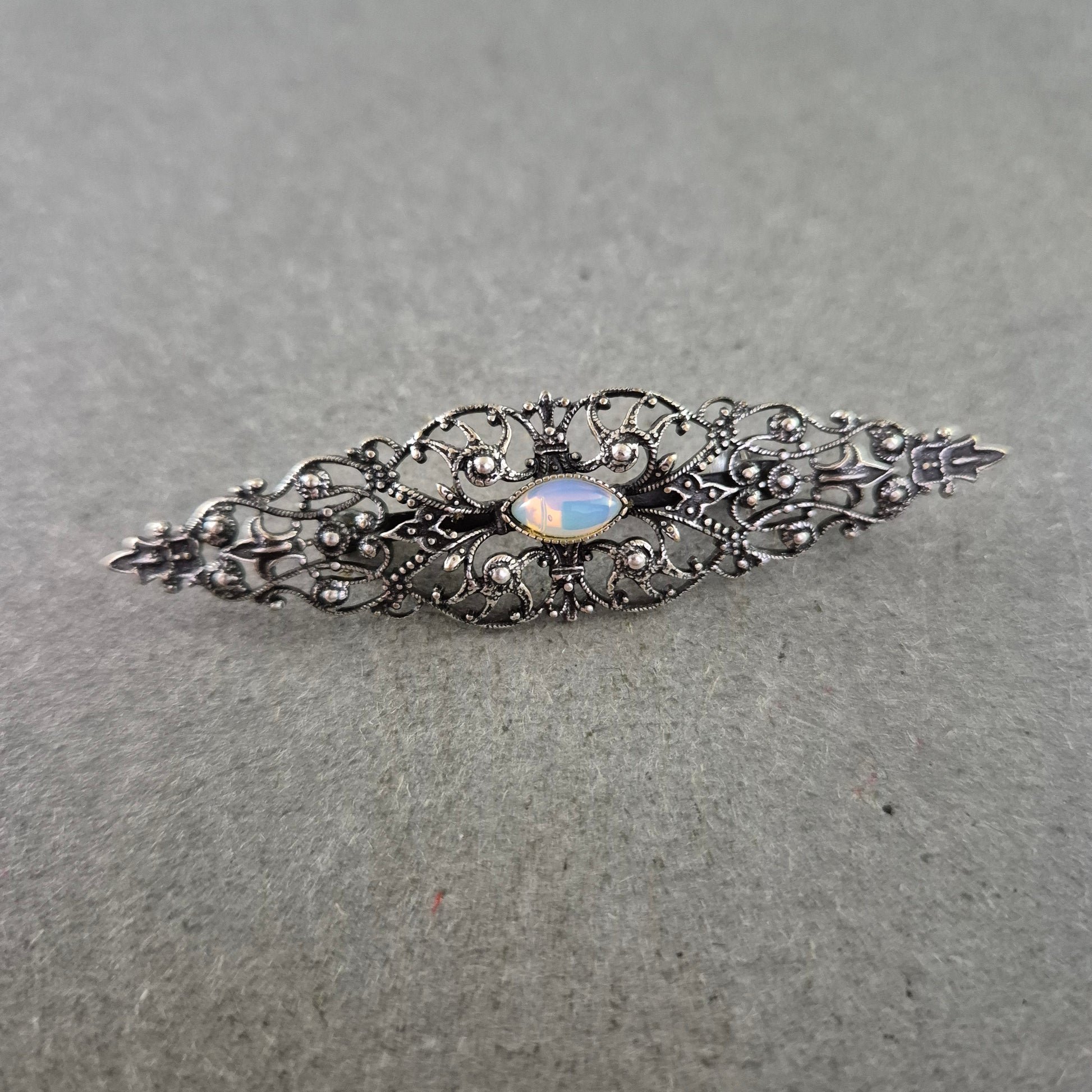 Filigrane Vintage Brosche Silberfarben mit Opal Optik