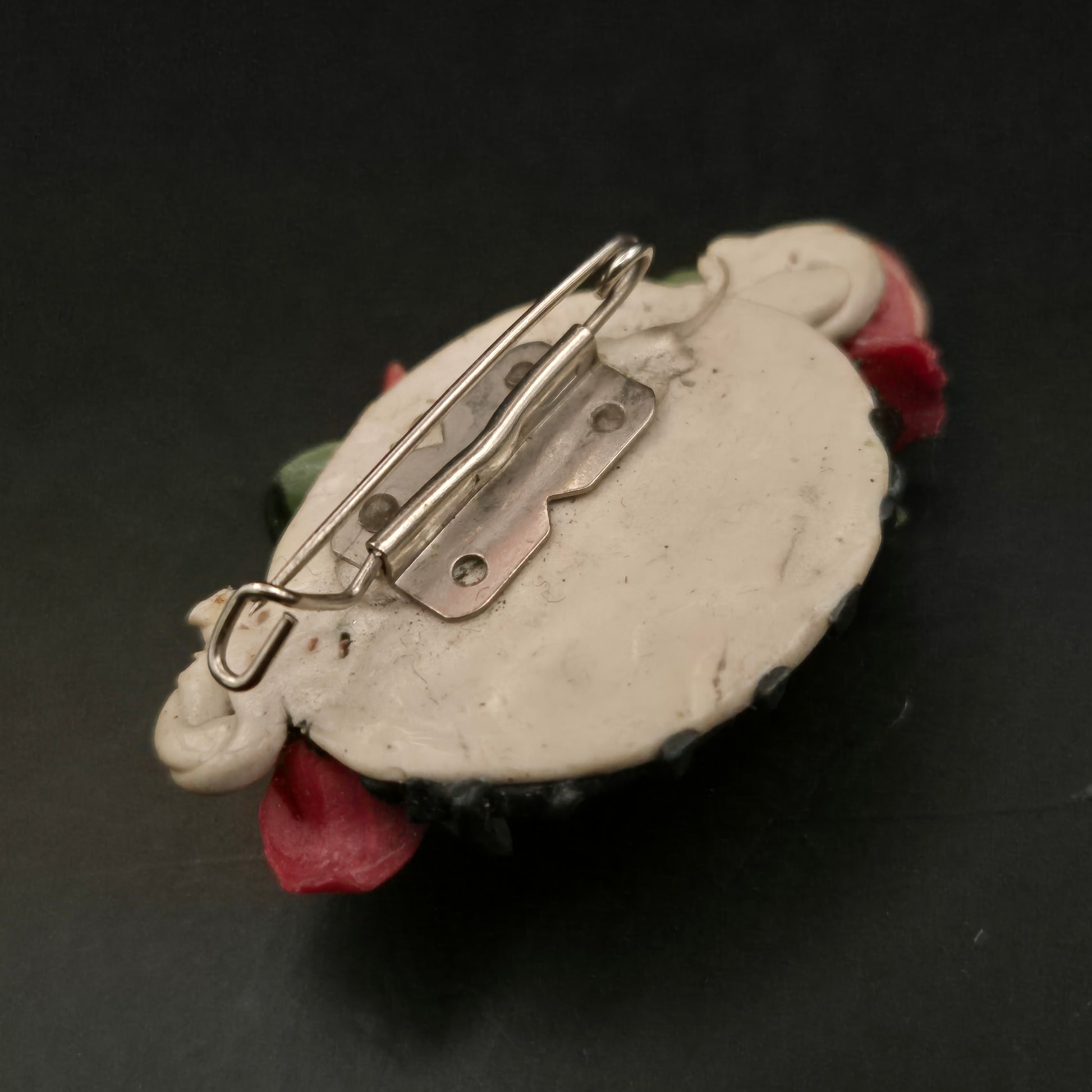 Florale Brosche mit Rosenmotiv – Vintage Handarbeit aus Resin