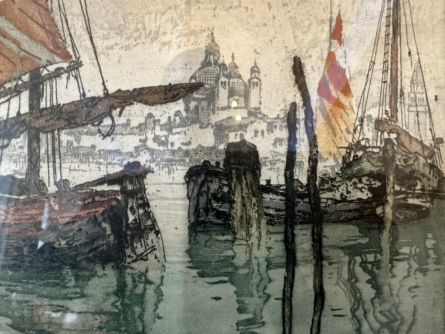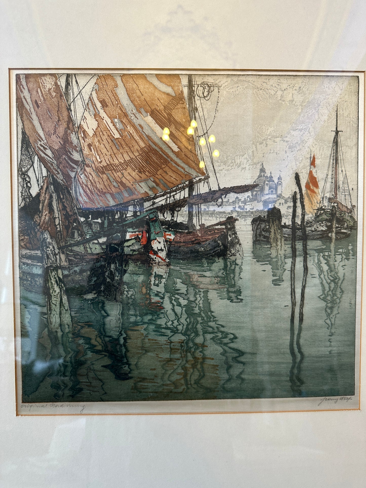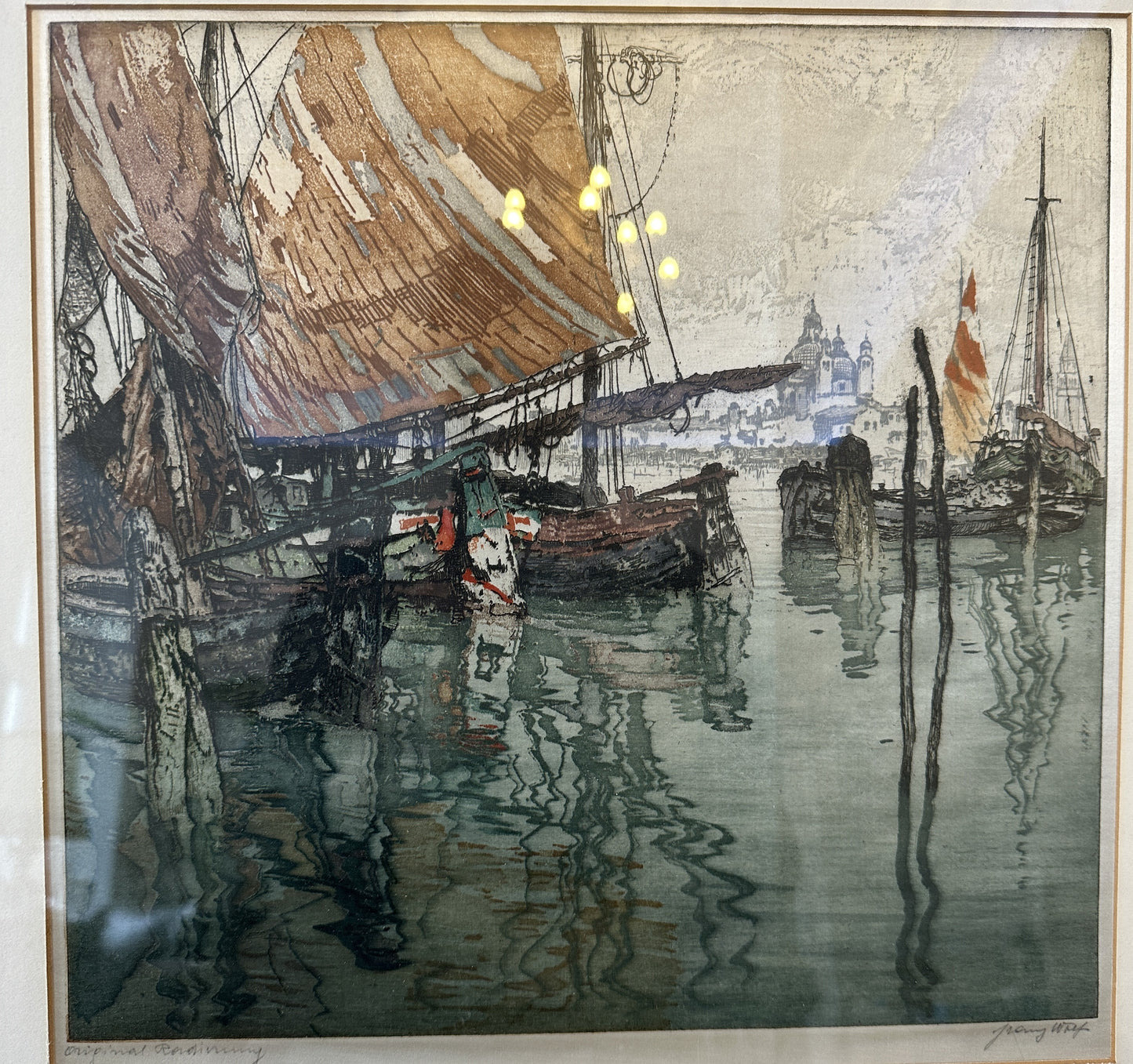 Franz Xaver Wolf (1896-1989) Original Radierung Handsigniert Hafenszene