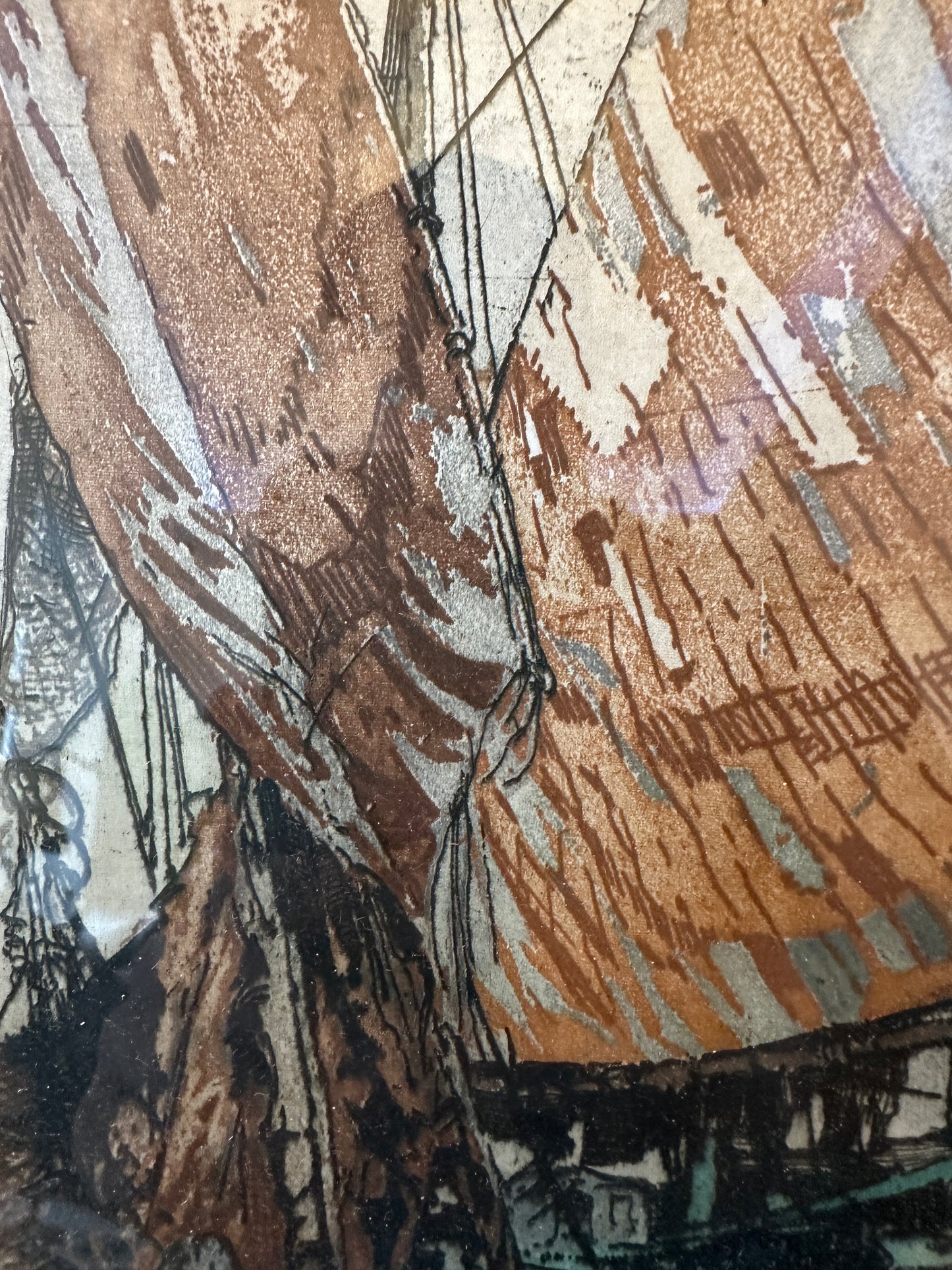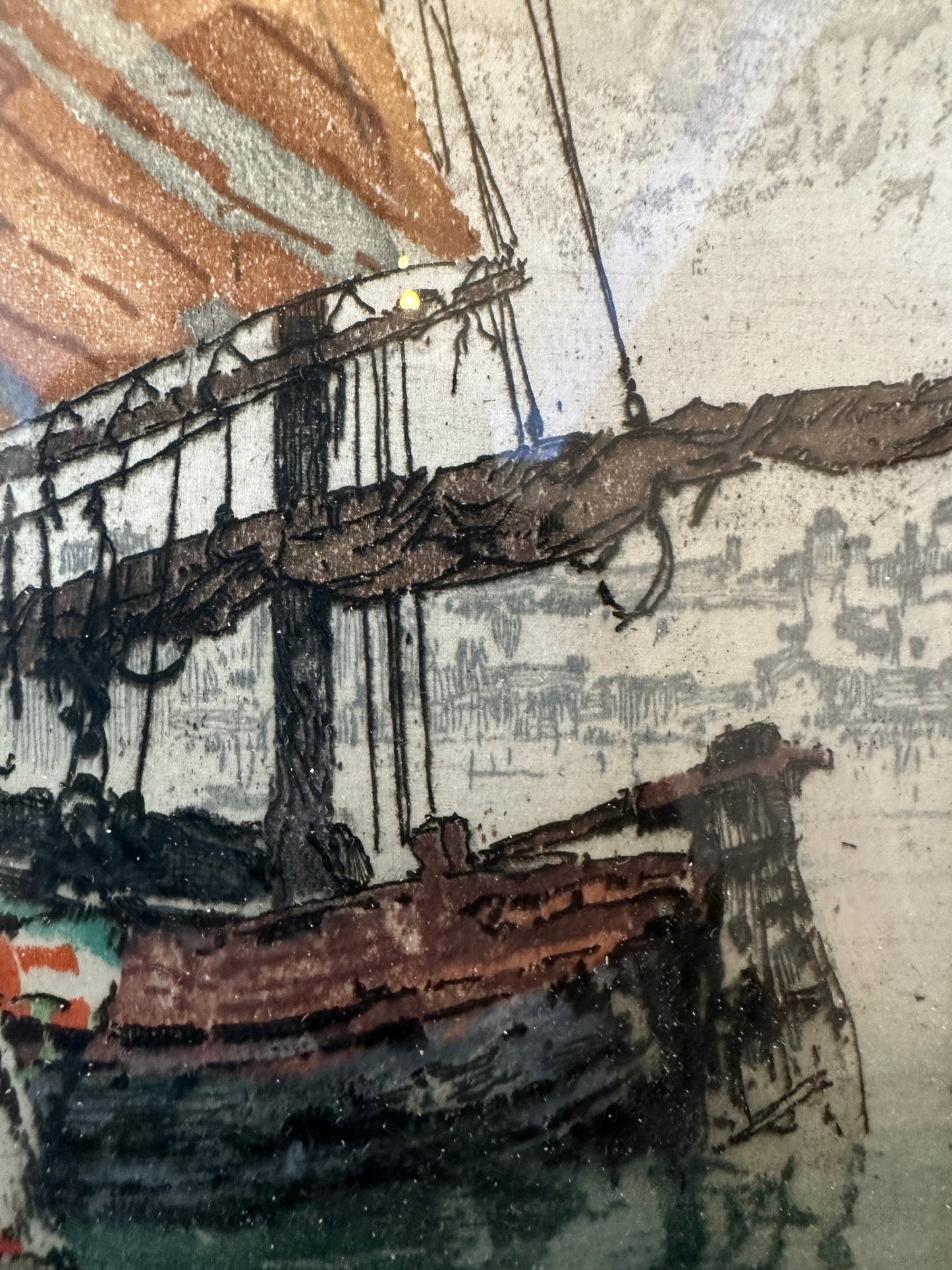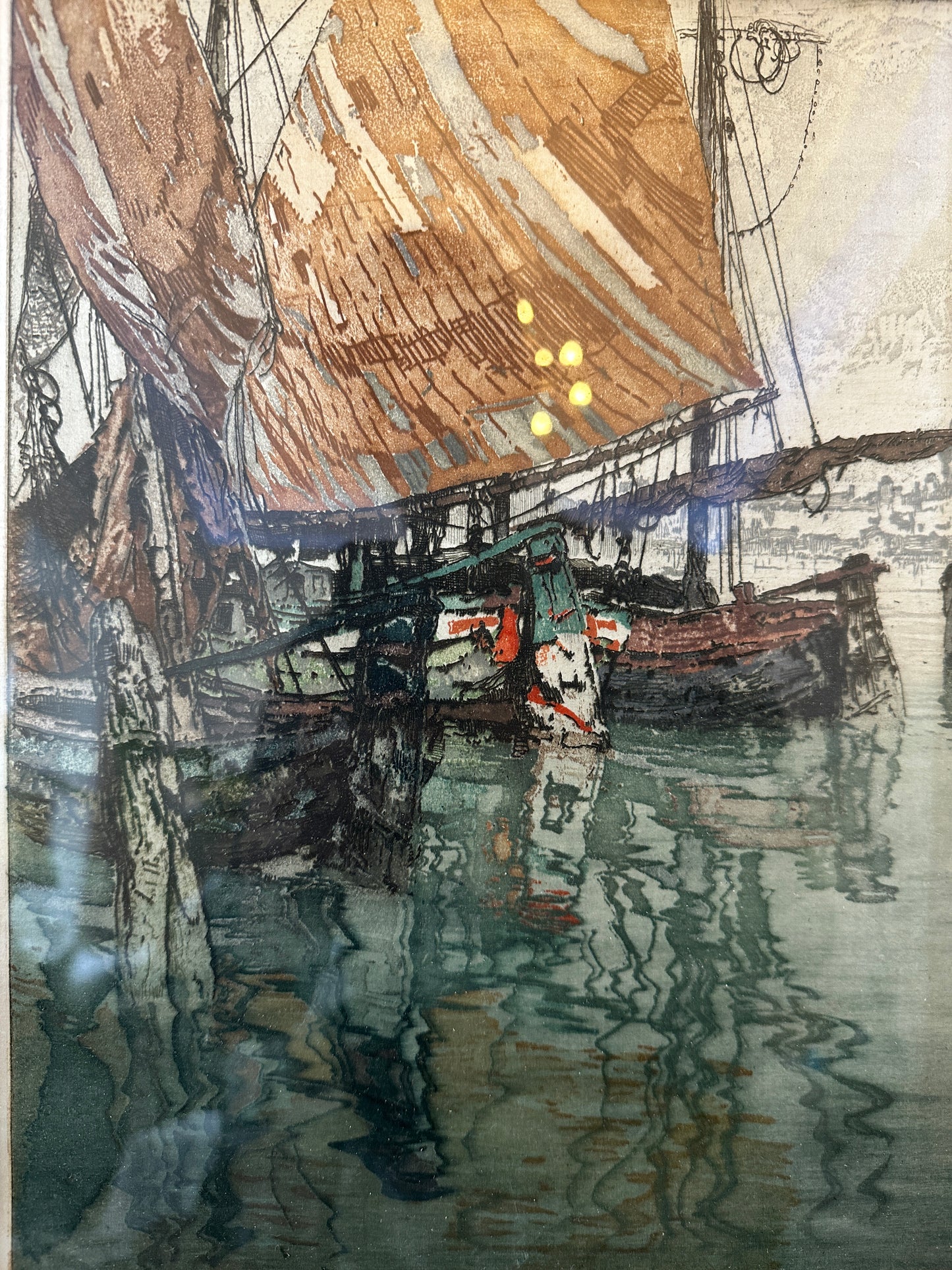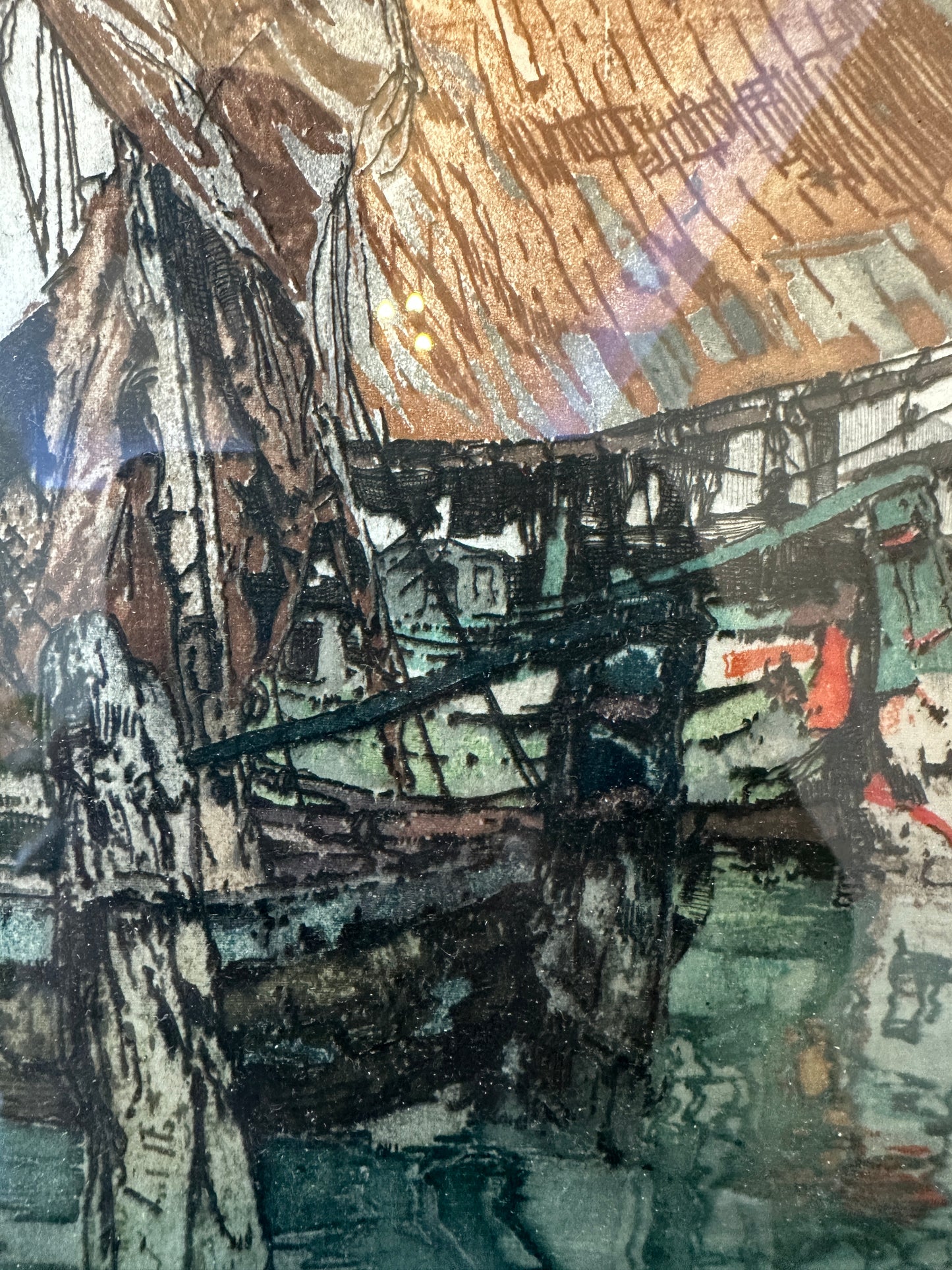Franz Xaver Wolf (1896-1989) Original Radierung Handsigniert Hafenszene