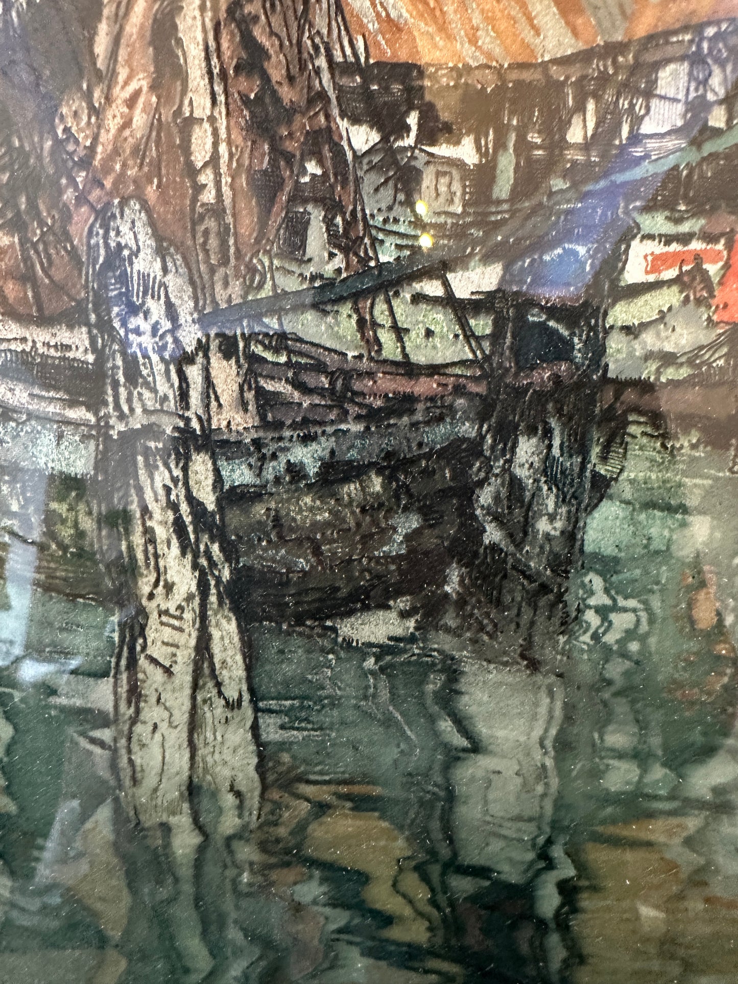 Franz Xaver Wolf war ein renommierter deutscher Maler und Grafiker, dessen Werke für ihre künstlerische Qualität und Ausdruckskraft bekannt sind. Diese Hafenszene könnte einen faszinierenden Einblick in seine Auseinandersetzung mit urbanen Landschaften bieten.