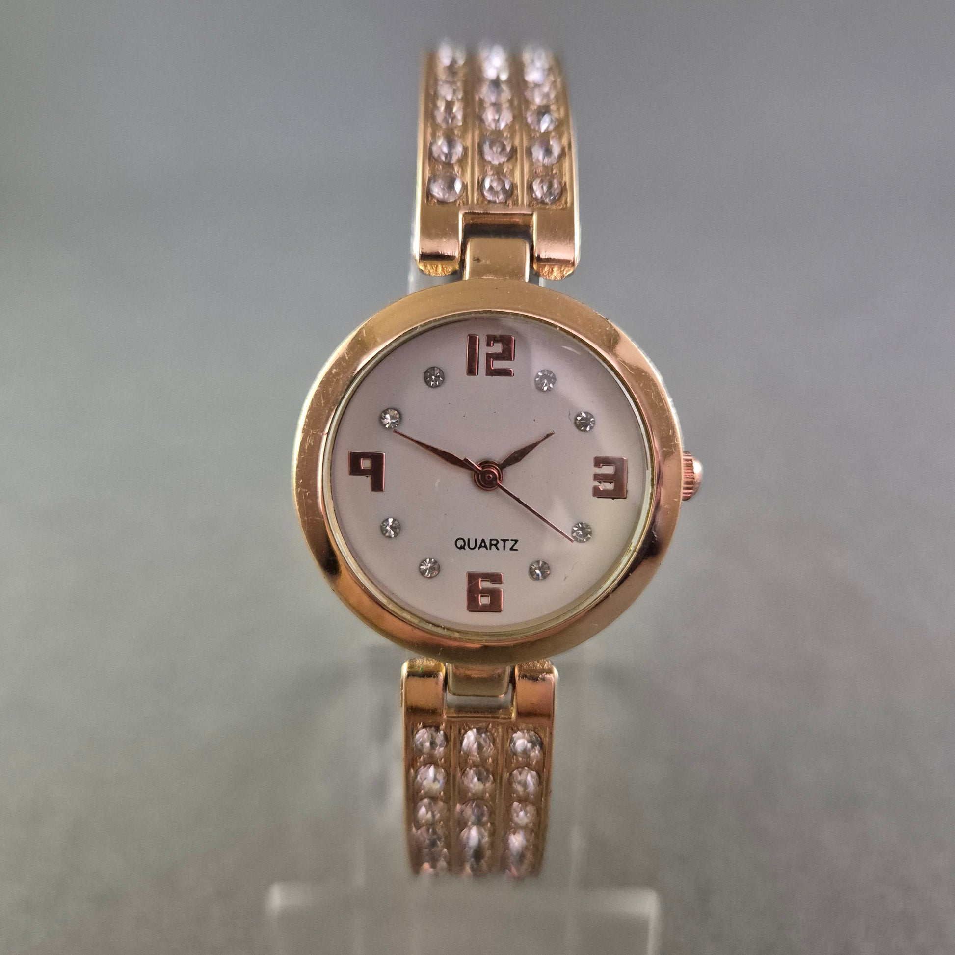 Funkelnde Damen Uhr in Goldoptik – Mit Strass und Lederarmband