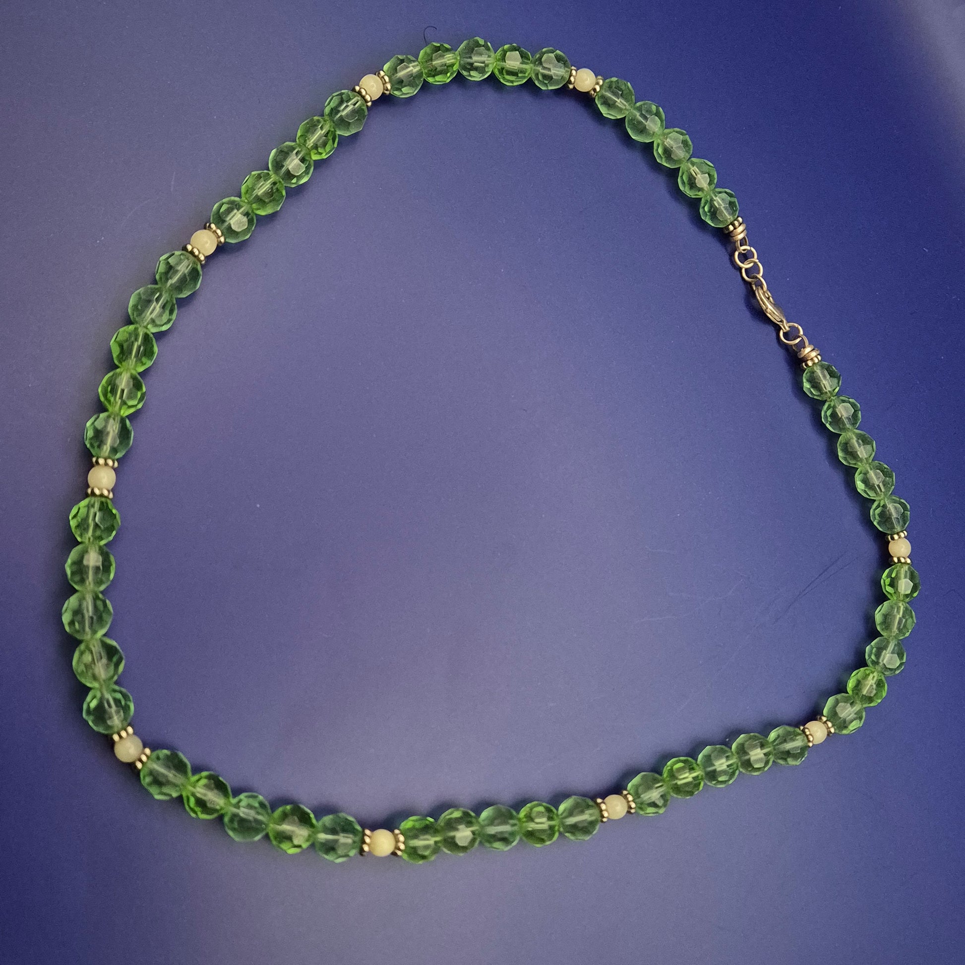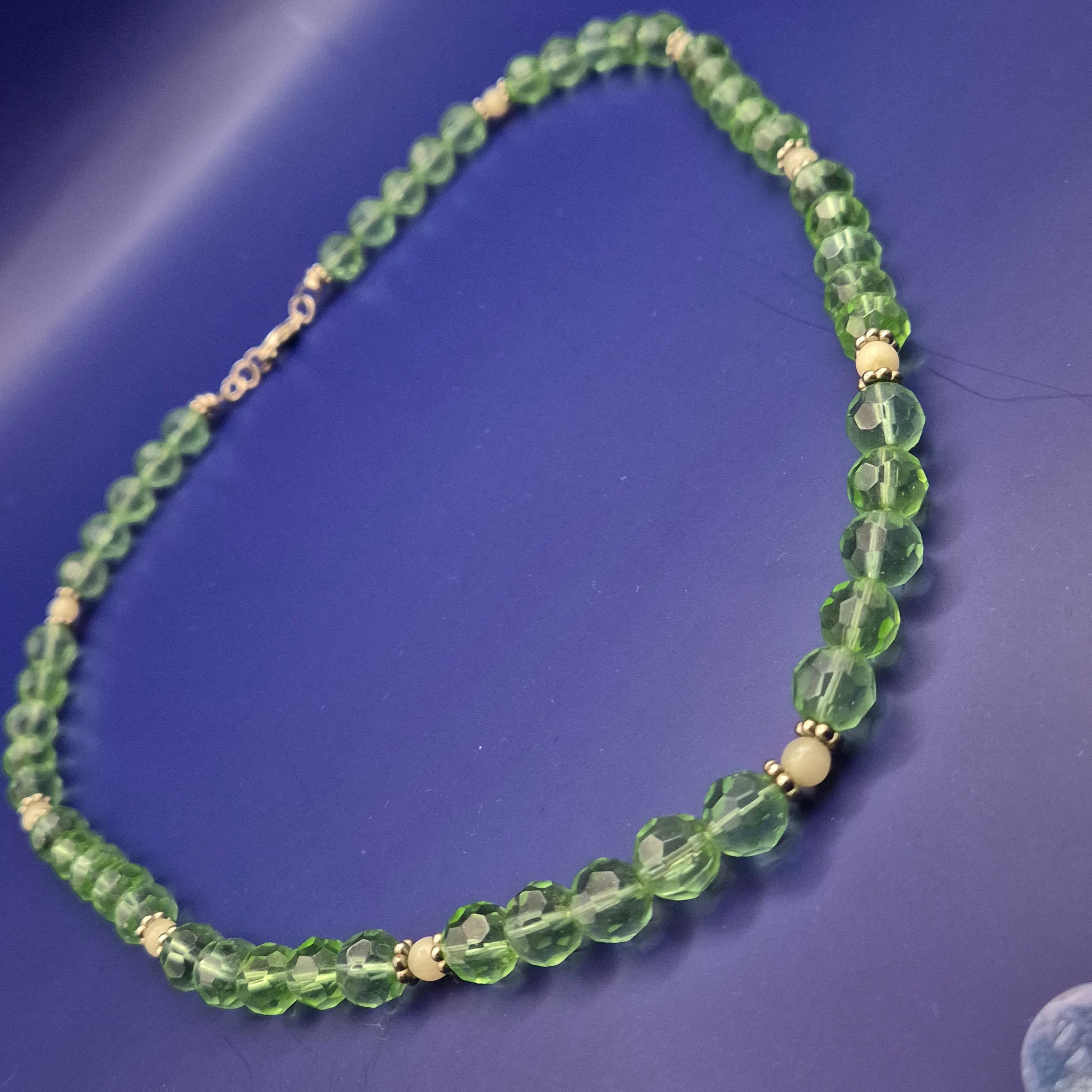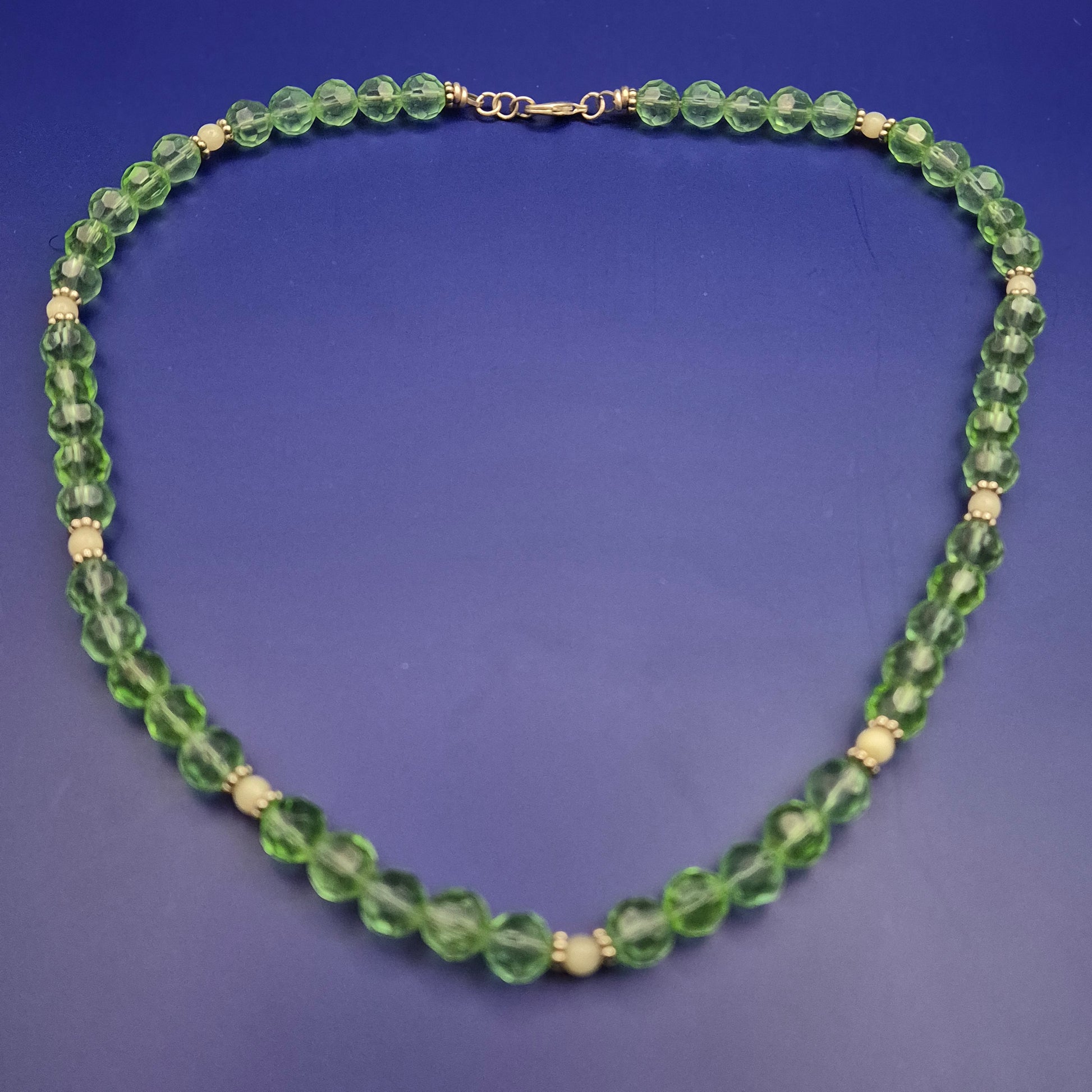 Funkelnde Glasperlen-Kette – Hellgrüner Facettenschliff