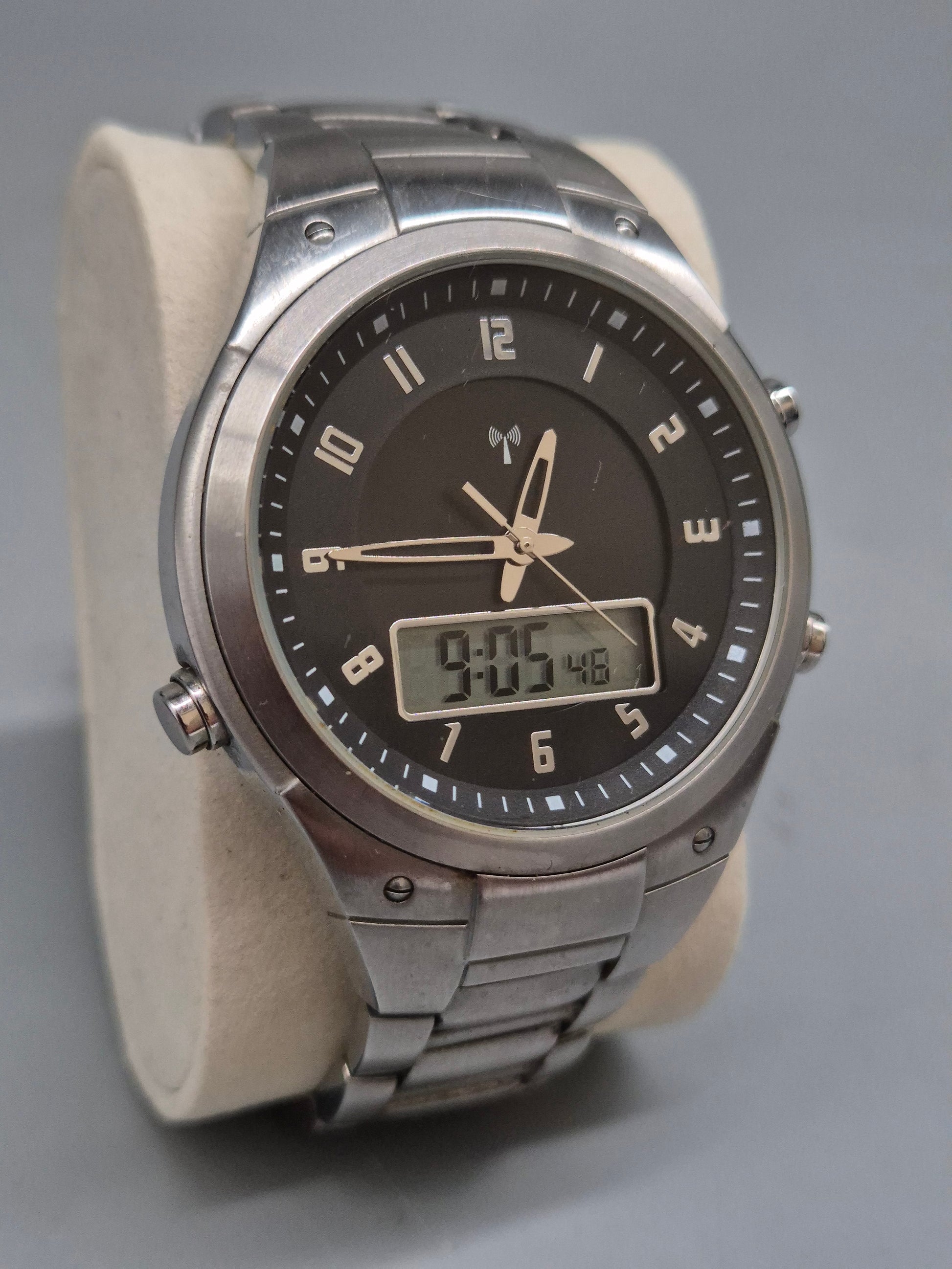 Funkgesteuerte TCM Herren Uhr – Edelstahl mit Digitalanzeige