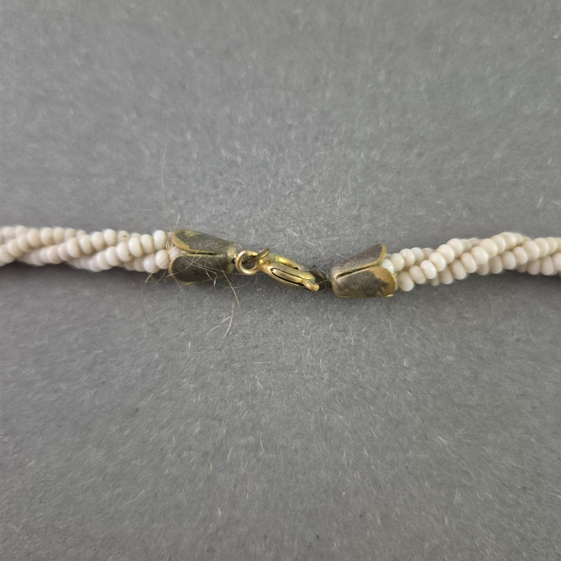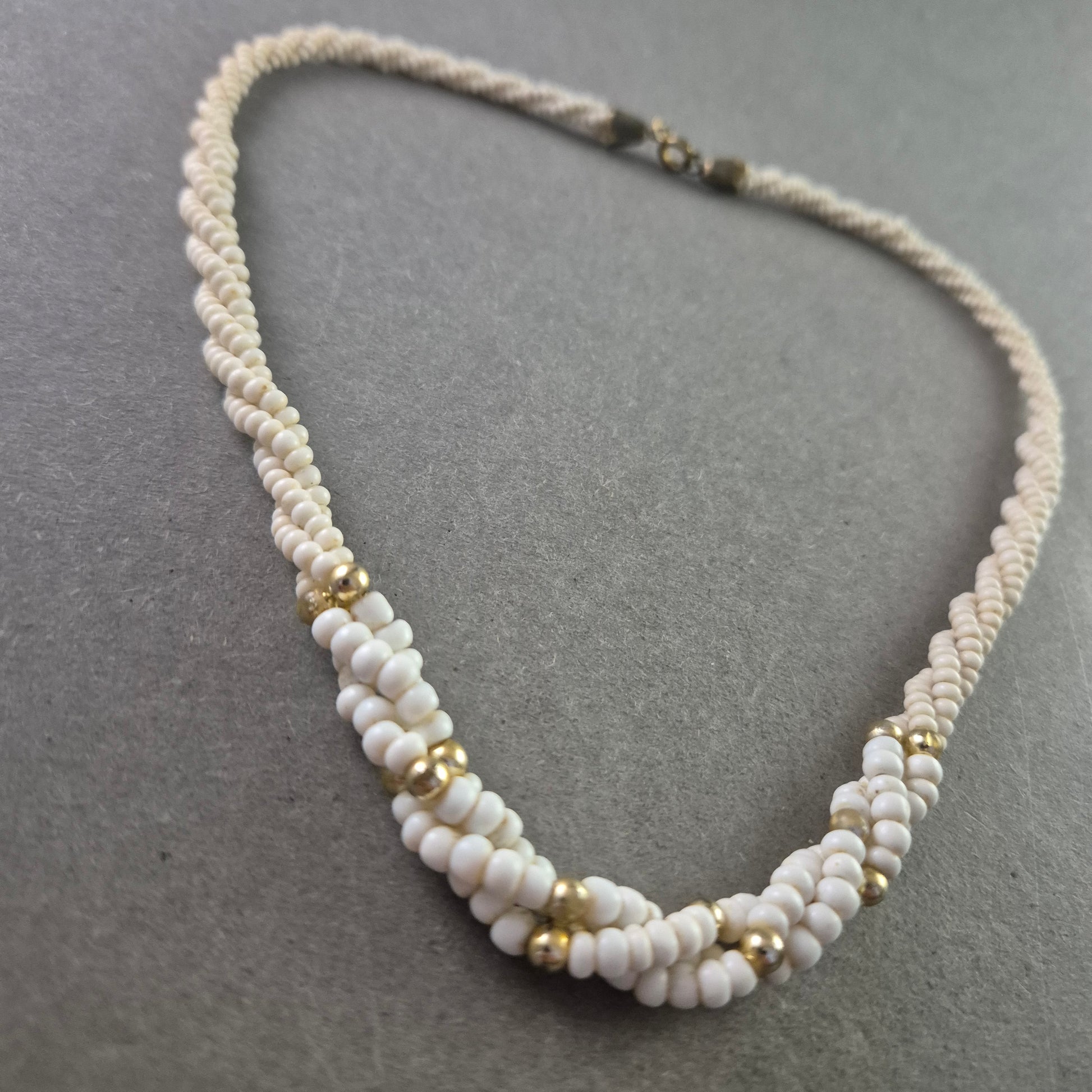 Geflochtene Vintage-Kette mit kleinen Perlen in Cremeweiß