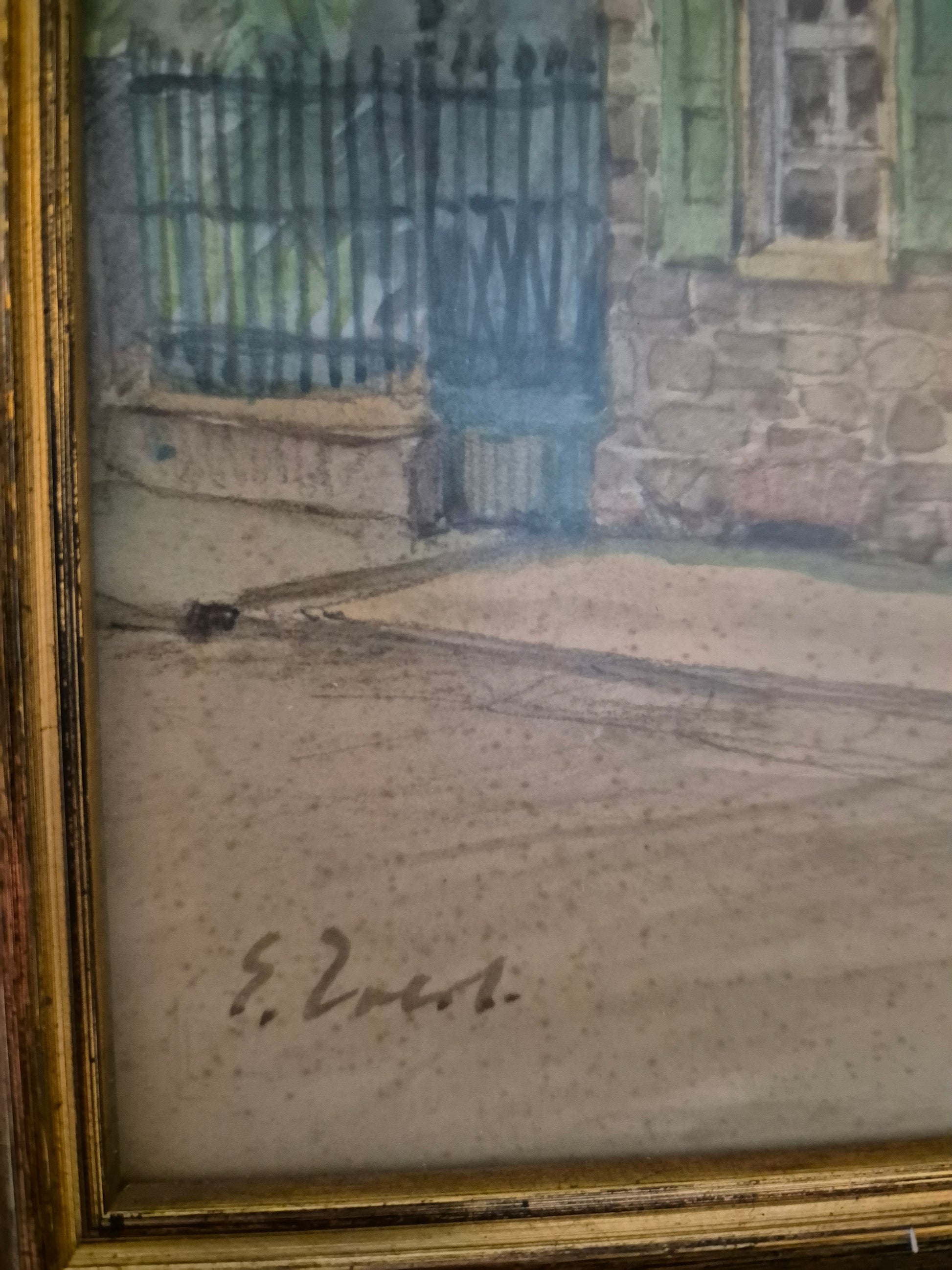 Herzlich willkommen, angeboten wird ein interessantes Gemälde mit der Darstellung der Gründungsstätte von Jul. Niederdrenk in Velbert. Das Werk ist vermutlich mit Wasserfarben oder Aquarell gemalt und zeigt eine historische Szene mit liebevoll gestalteten Details. Die Darstellung erinnert an die reiche Geschichte der Region und lädt zur Entdeckung vergangener Zeiten ein.