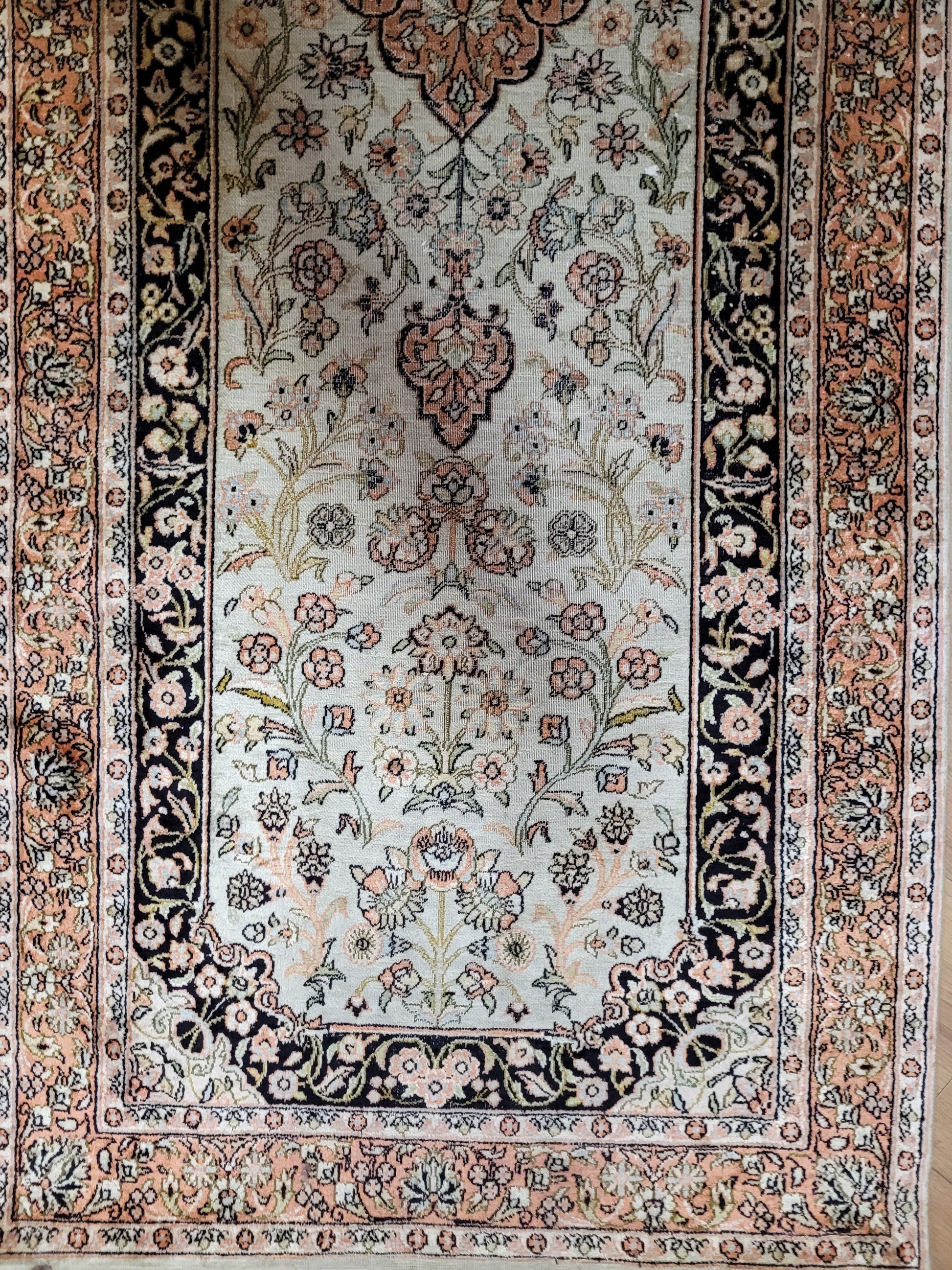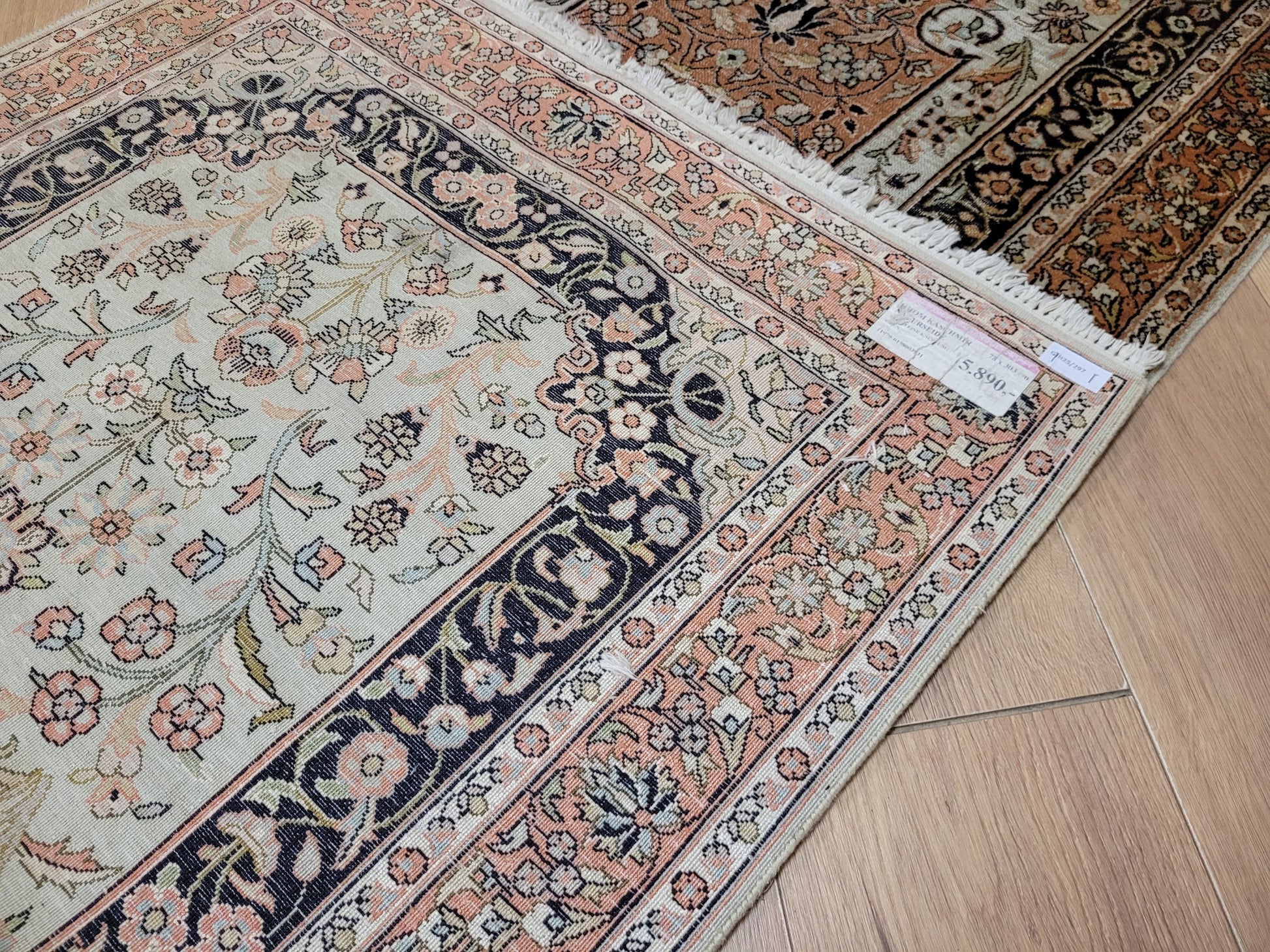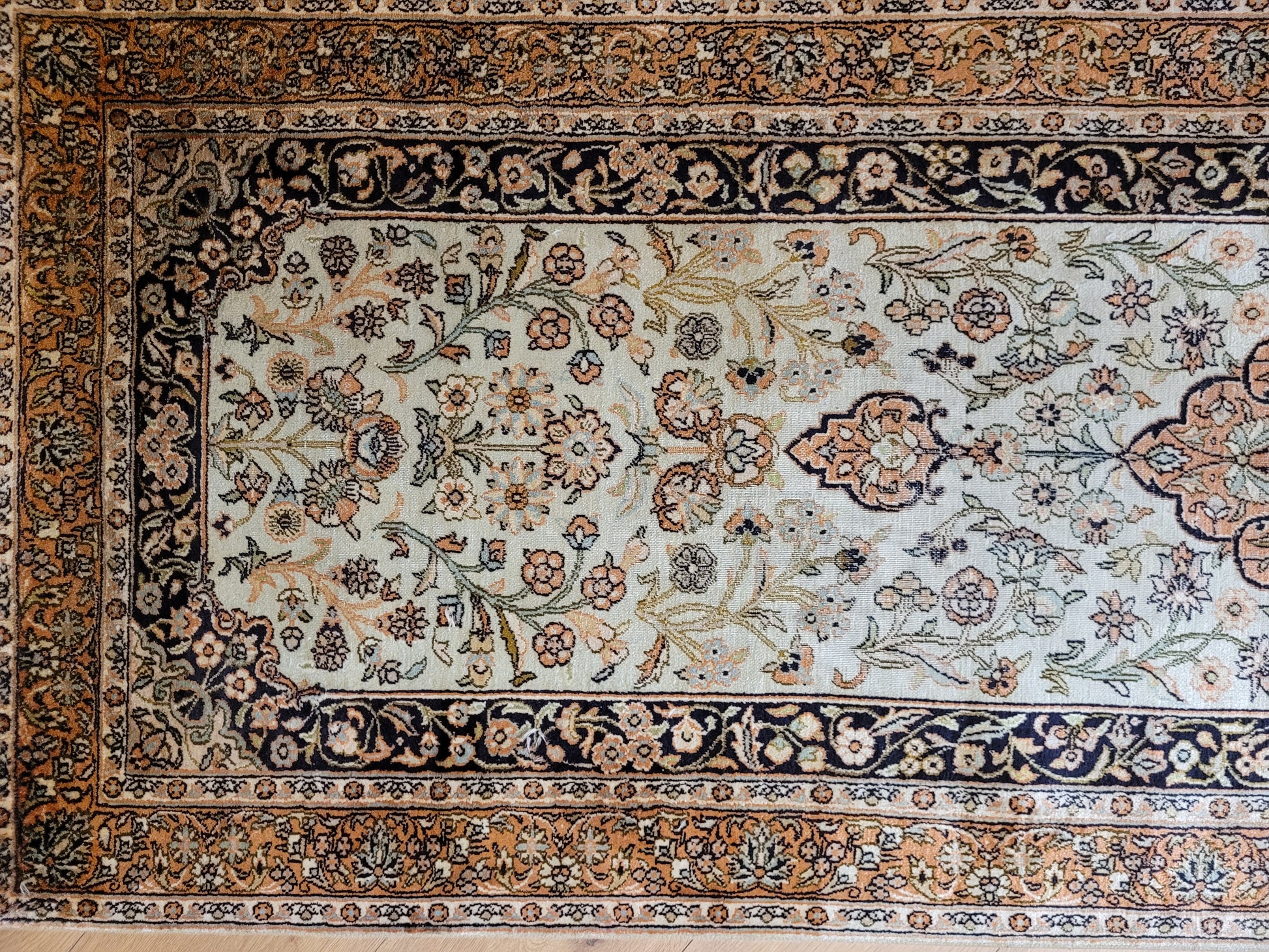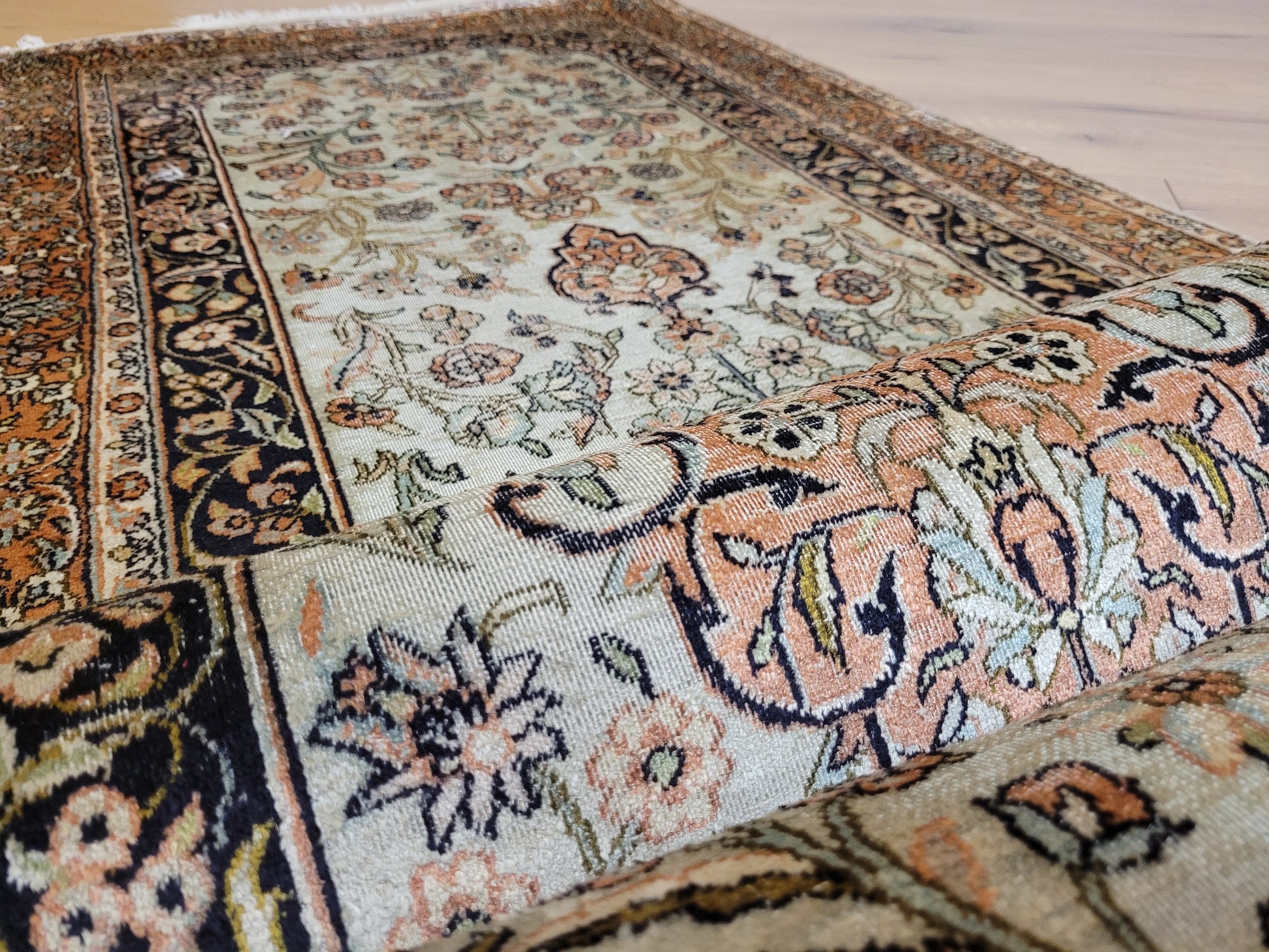 Ghom Läufer Seide auf Baumwolle florales Design 303x78 cm