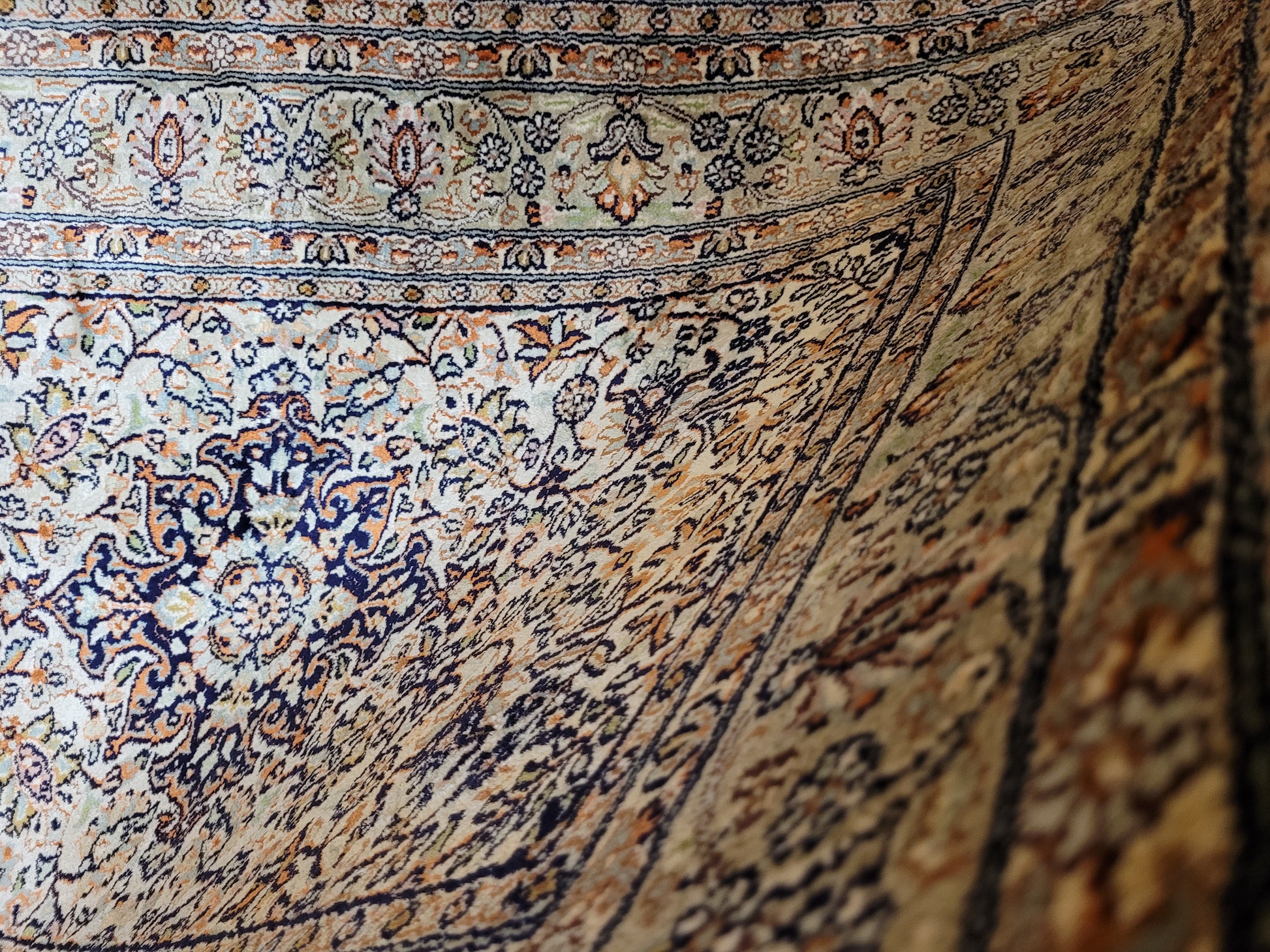 Ghom Seidenteppich feine Knüpfung zartes Blumenmedaillon 120x80 cm