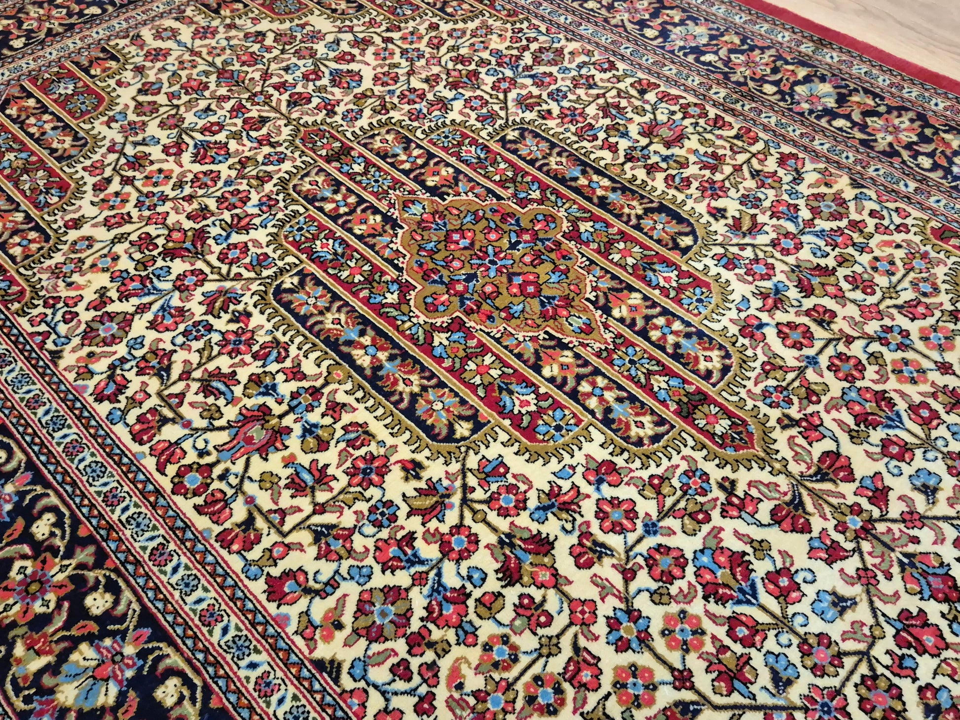Ghom Teppich Korkwolle florales Medaillon feine Knüpfung