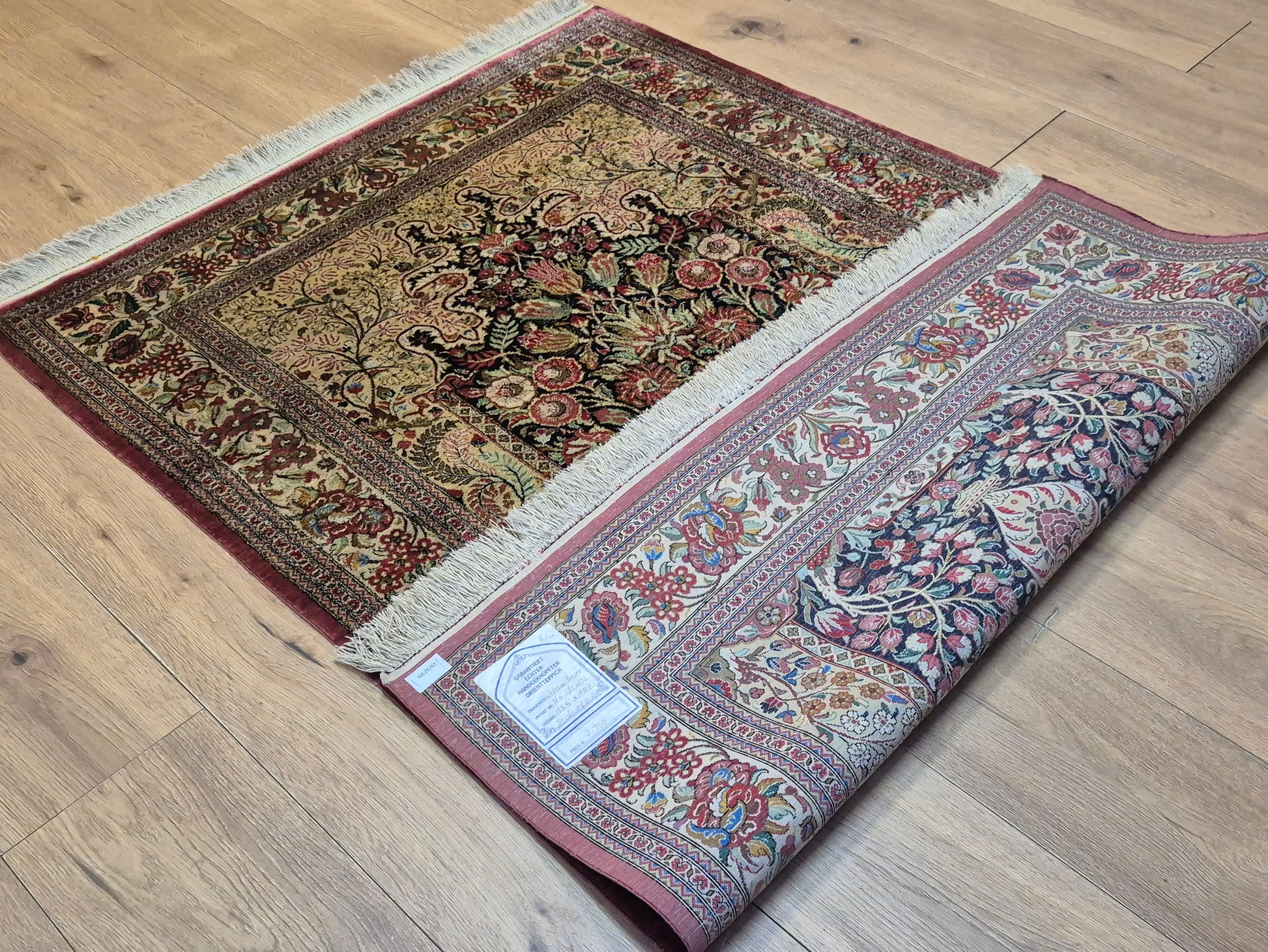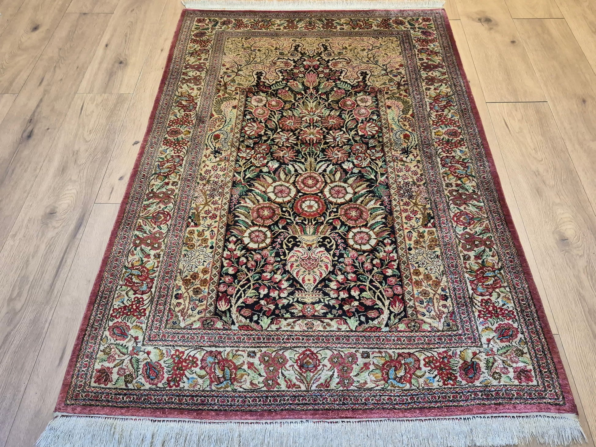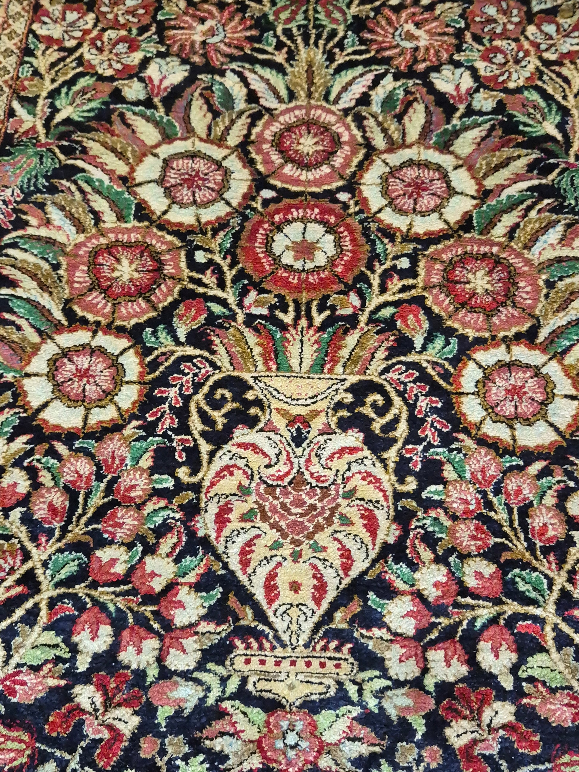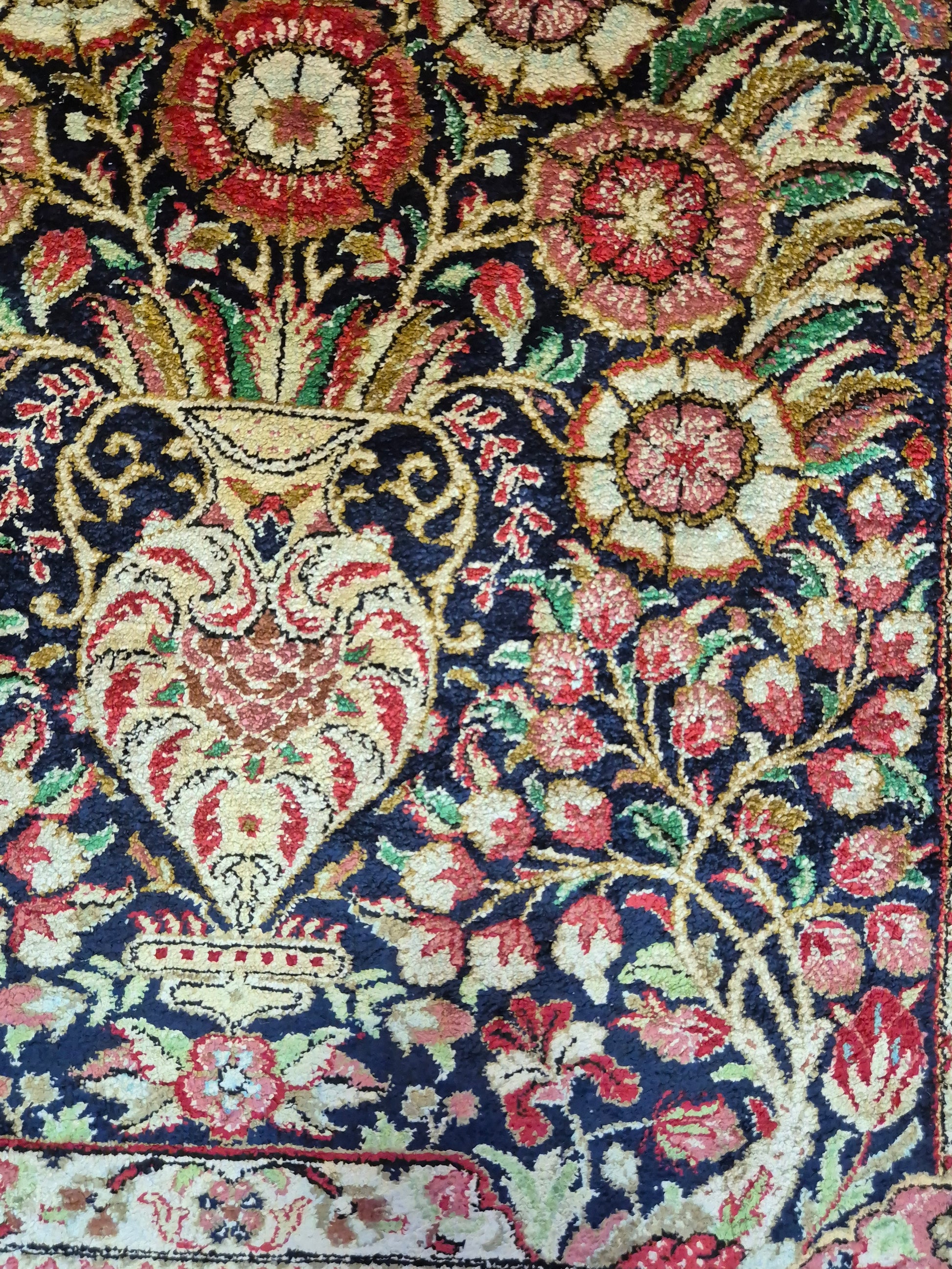 Ghom Teppich Seide auf Seide feine Knüpfung Vase mit Blumen