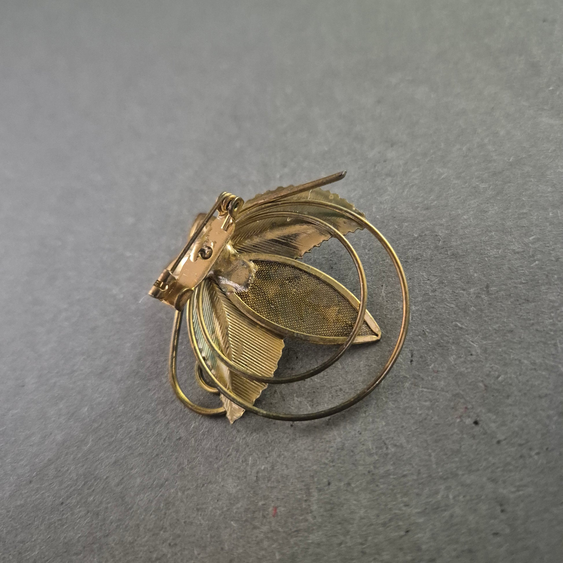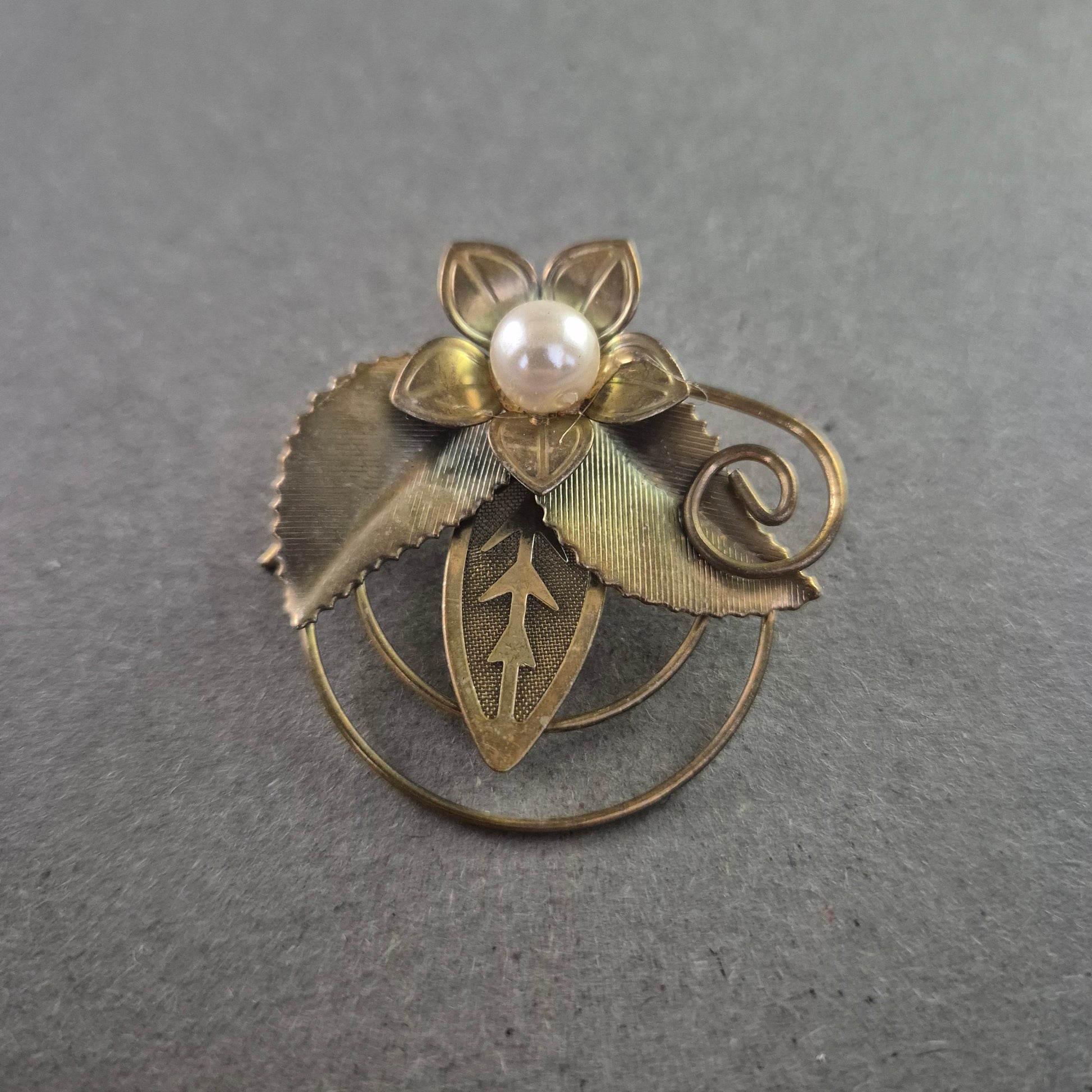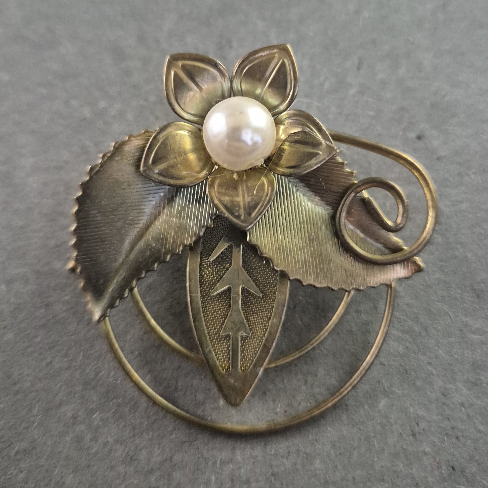 Goldfarbene Brosche mit Blume & Perle – Filigranes Vintage-Design