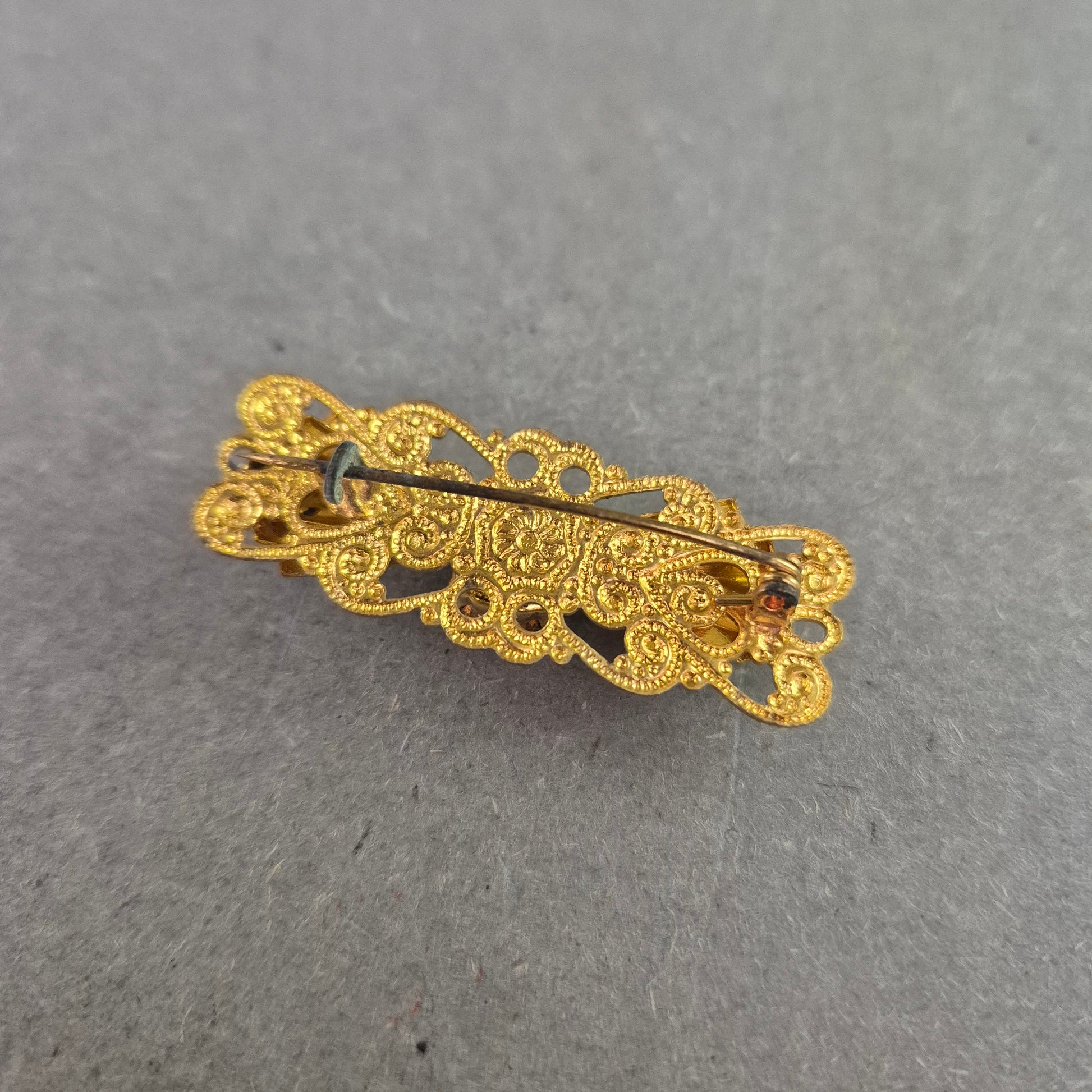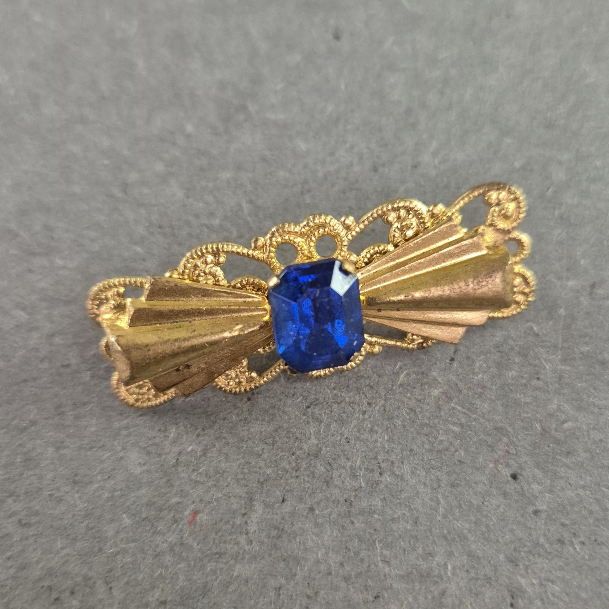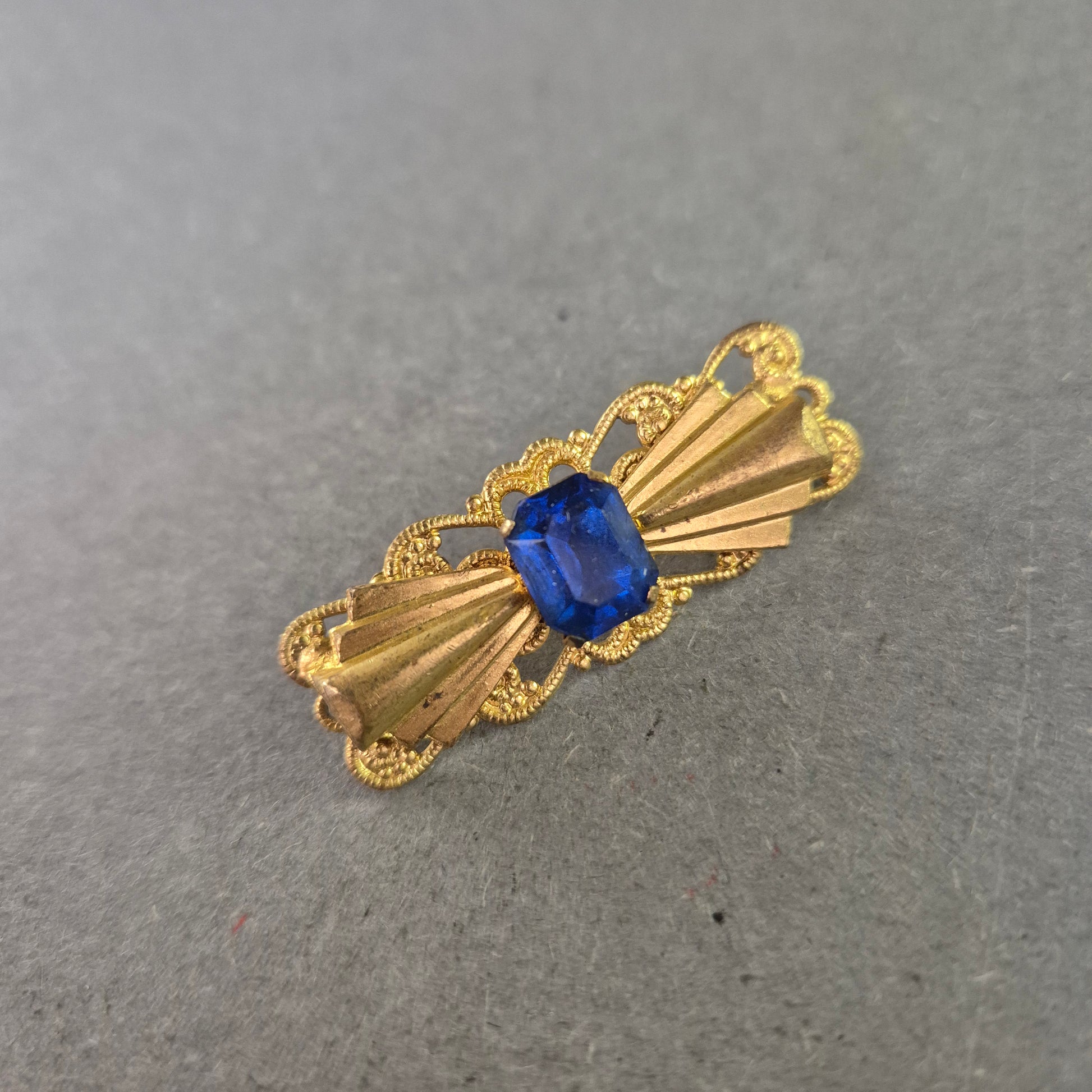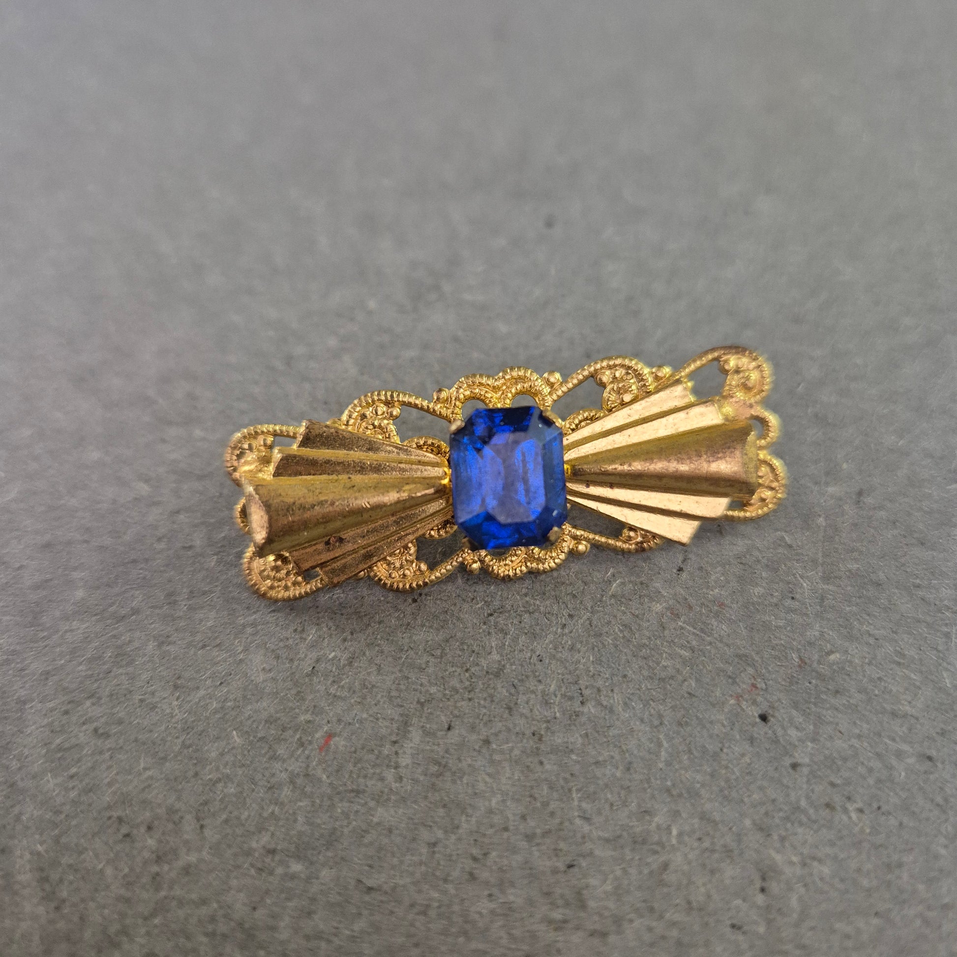 Goldfarbene Vintage-Brosche mit blauem Stein – Filigrane Eleganz