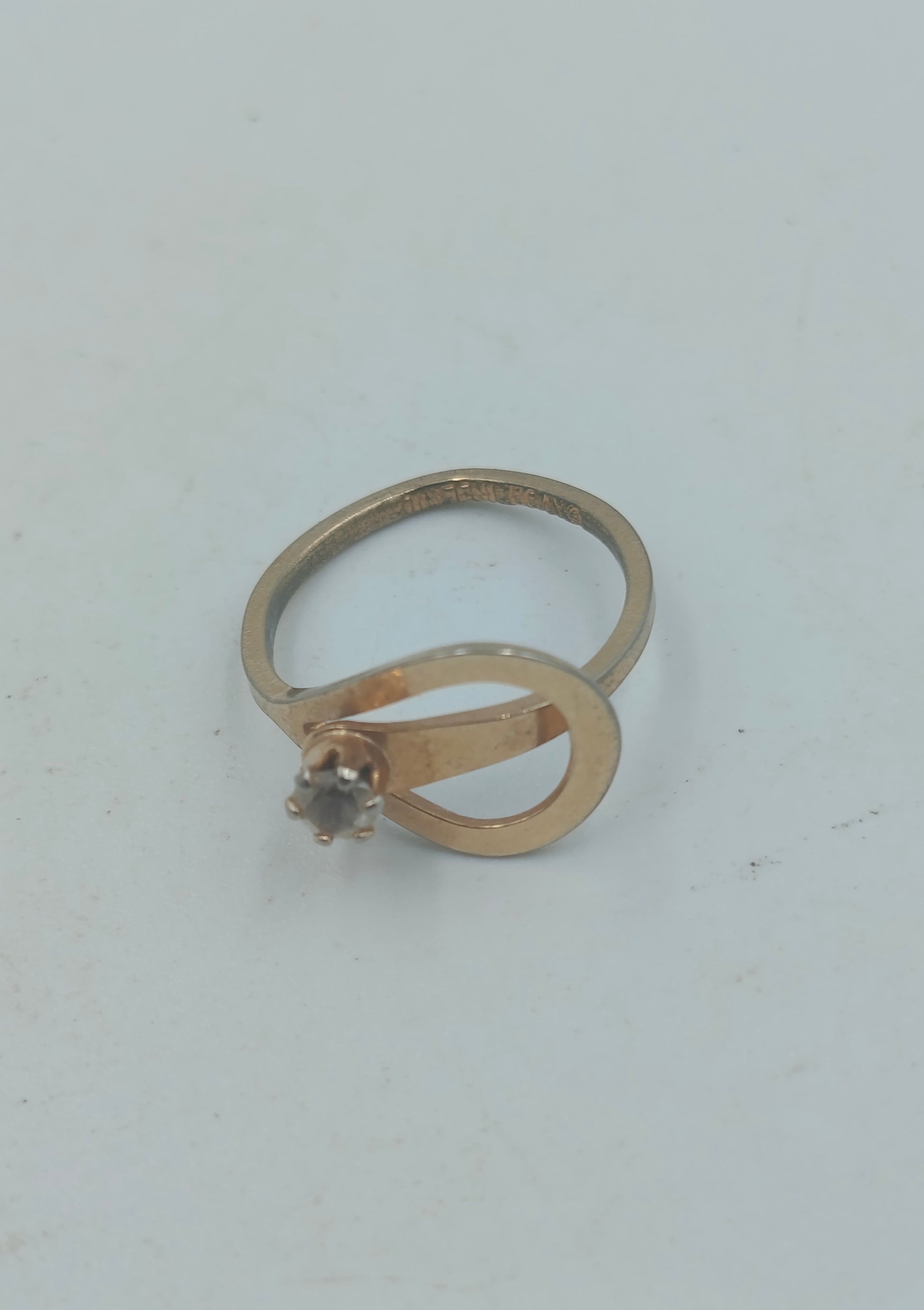 Feiner, eleganter Ring in goldfarbener Optik mit einem kleinen klaren facettierten Stein in einer klassischen Krappenfassung. Das moderne, leicht geschwungene Design verleiht ihm eine stilvolle Note – perfekt für dezente Eleganz im Alltag oder besondere Anlässe.