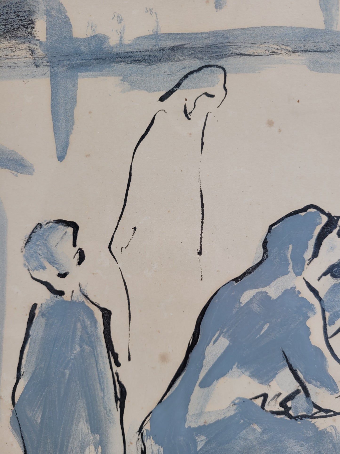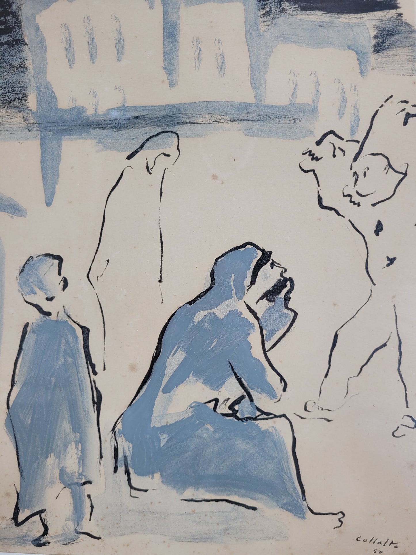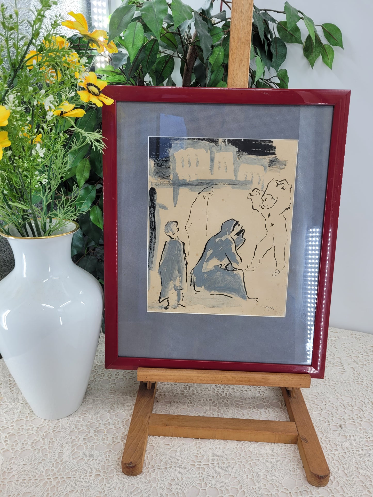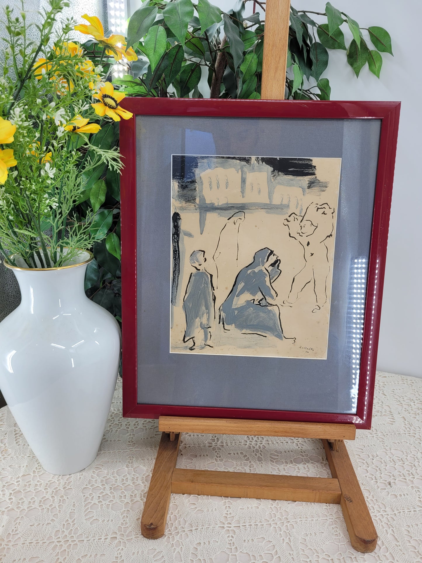 Beschreibung: Das Werk der Orientalischen Schule (XX) zeigt eine faszinierende Szene, in der ein Schausteller ein Märchen vor einer Gruppe von Personen auf einem Markt darbietet. Die Mischtechnik auf Papier verleiht der Szene eine besondere Textur und Tiefe. Die Betrachter werden in die lebendige Atmosphäre des Marktes versetzt, wo sie den Schausteller und sein Märchen genießen können. Die Personen, die ihn beobachten, sind Teil dieser Szenerie und fügen der Darstellung eine weitere Ebene der Interaktion hinzu. Das Gemälde wird mit Rahmen geliefert und befindet sich in einem sehr guten Zustand, wie auf den beigefügten Fotos zu sehen ist.