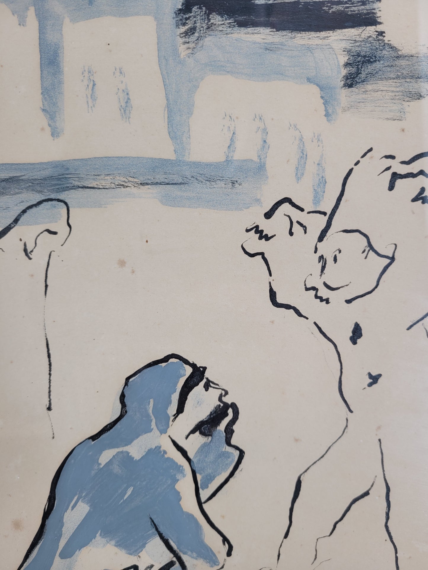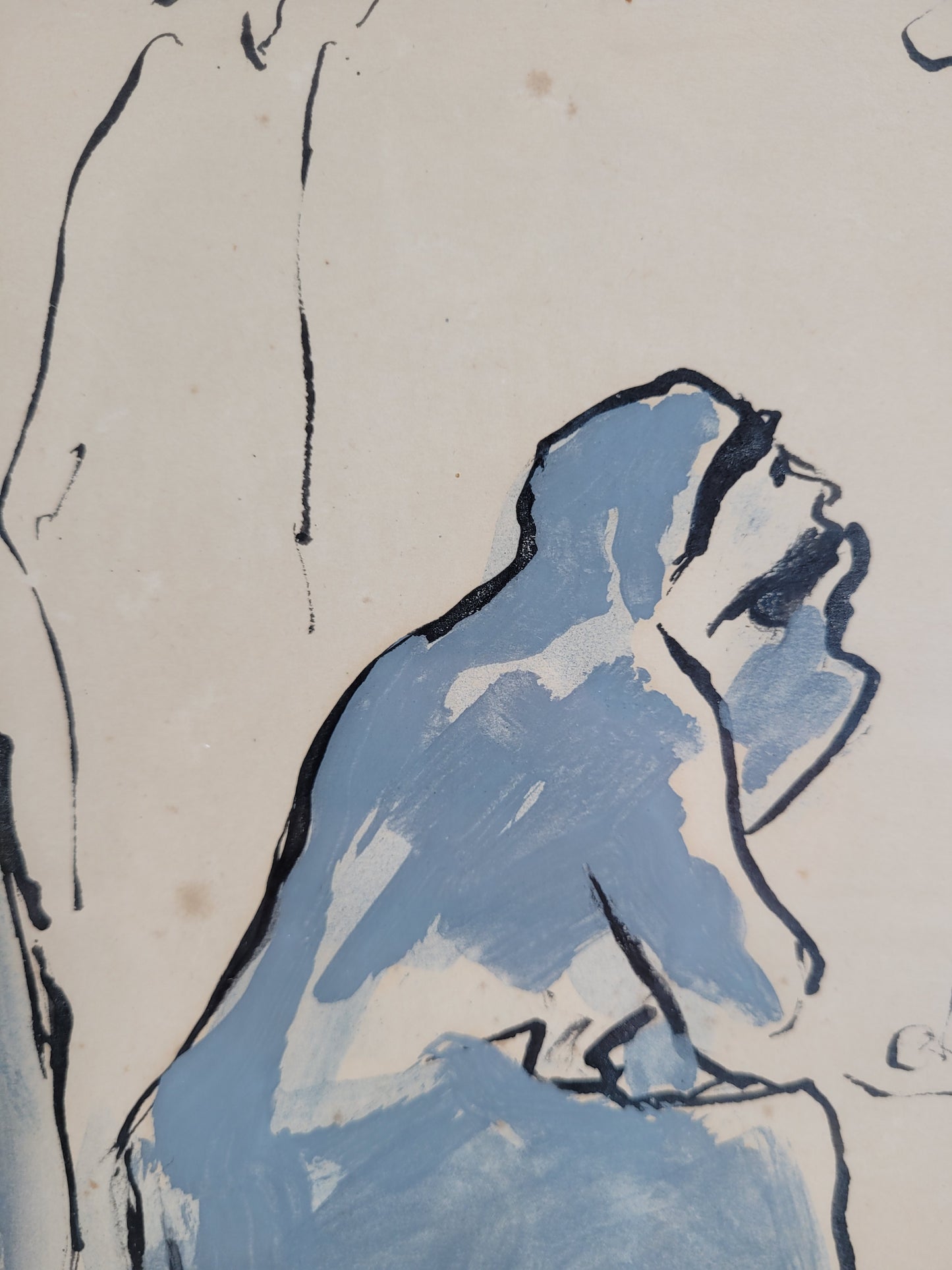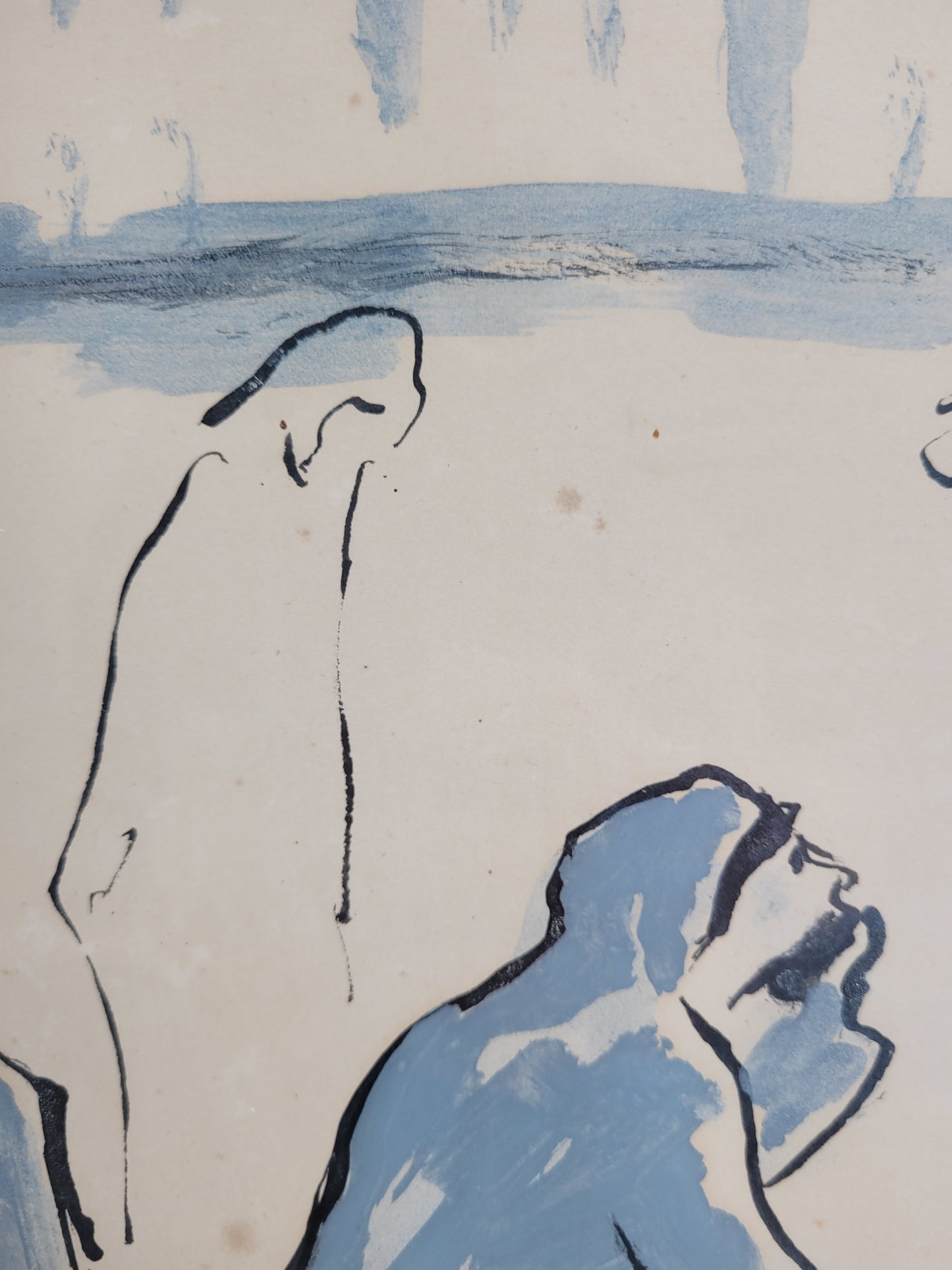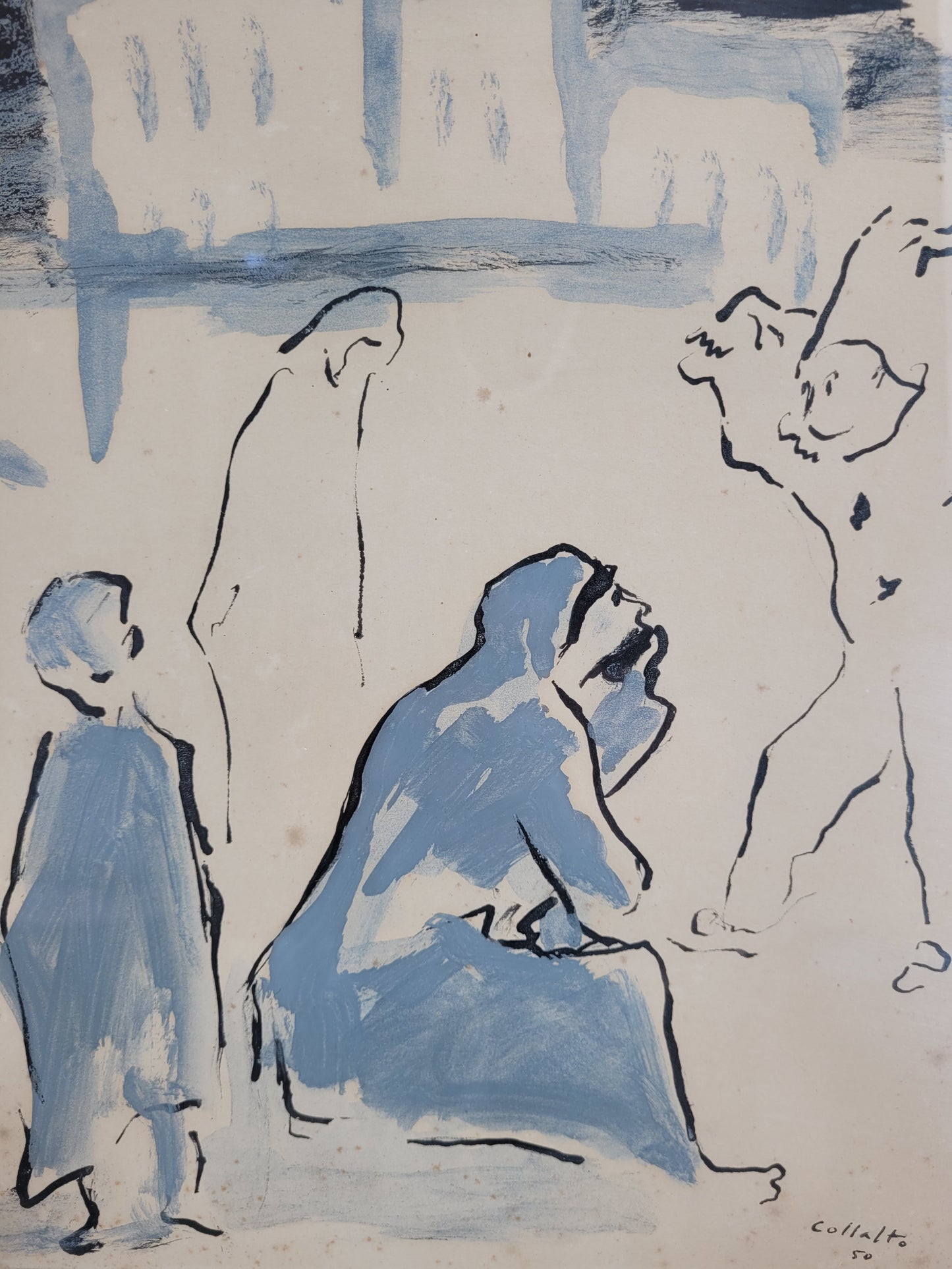 Beschreibung: Das Werk der Orientalischen Schule (XX) zeigt eine faszinierende Szene, in der ein Schausteller ein Märchen vor einer Gruppe von Personen auf einem Markt darbietet. Die Mischtechnik auf Papier verleiht der Szene eine besondere Textur und Tiefe. Die Betrachter werden in die lebendige Atmosphäre des Marktes versetzt, wo sie den Schausteller und sein Märchen genießen können. Die Personen, die ihn beobachten, sind Teil dieser Szenerie und fügen der Darstellung eine weitere Ebene der Interaktion hinzu. Das Gemälde wird mit Rahmen geliefert und befindet sich in einem sehr guten Zustand, wie auf den beigefügten Fotos zu sehen ist.