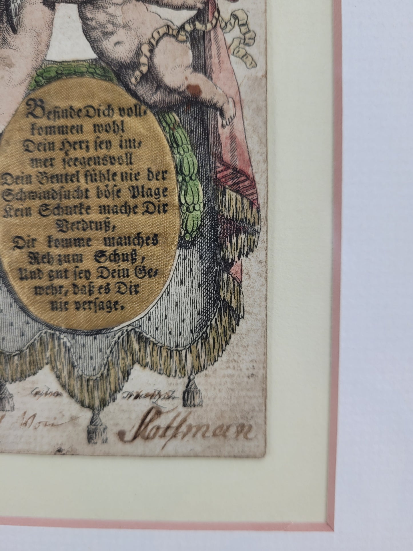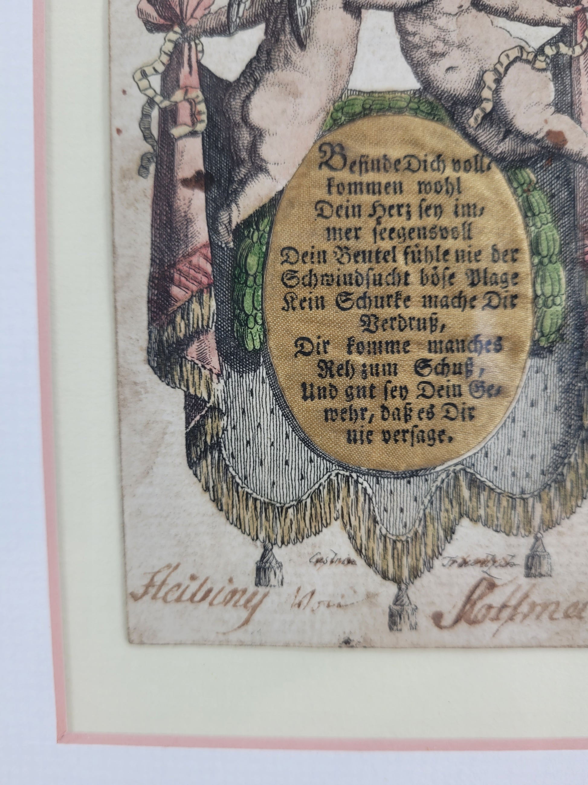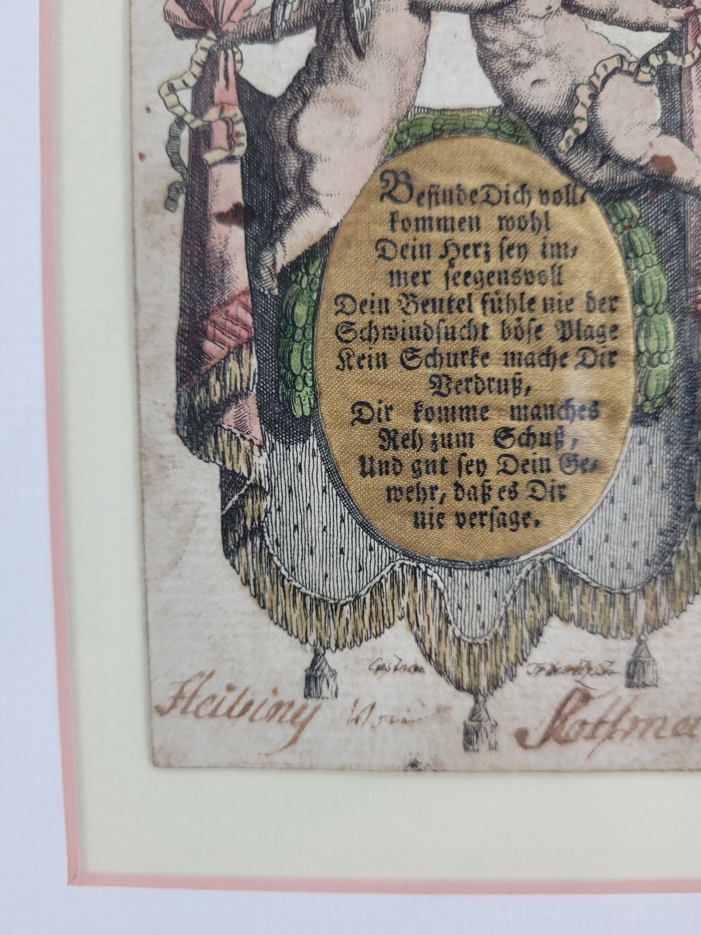 • Grafischer Farbdruck einer Grußkarte aus dem Jahr 1788