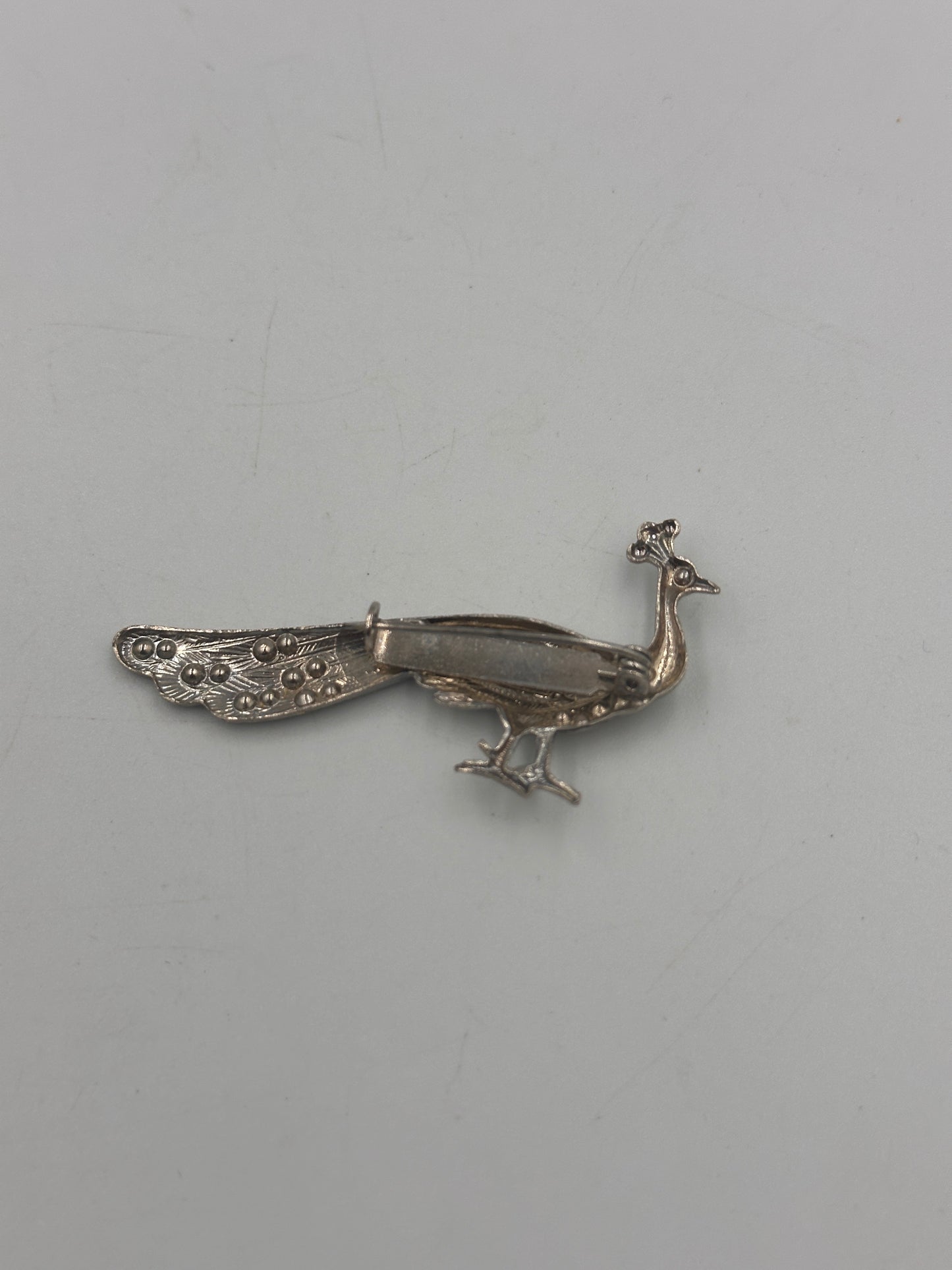 Große versilberte Pfau-Vogel-Brosche mit Zirkonia-Steinen