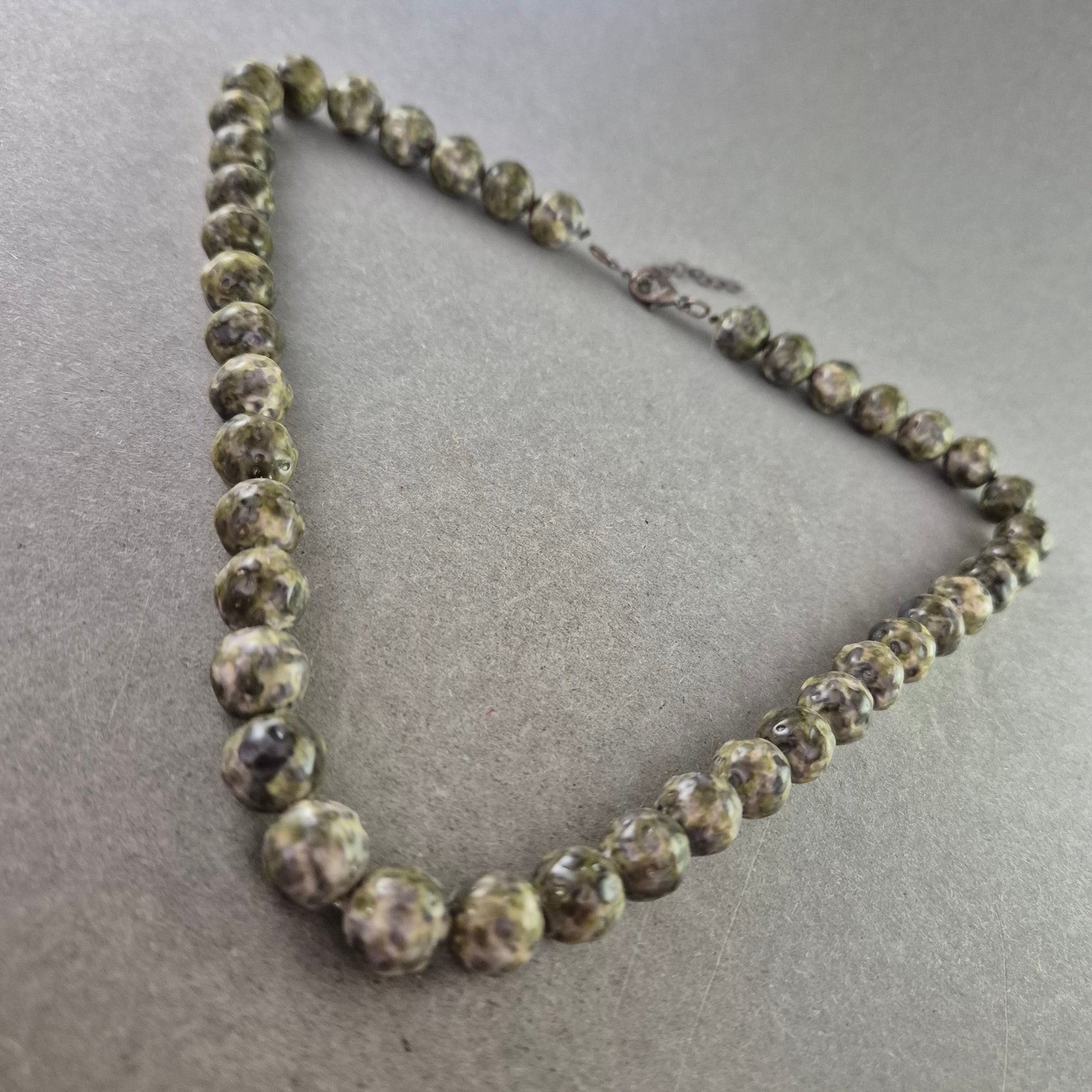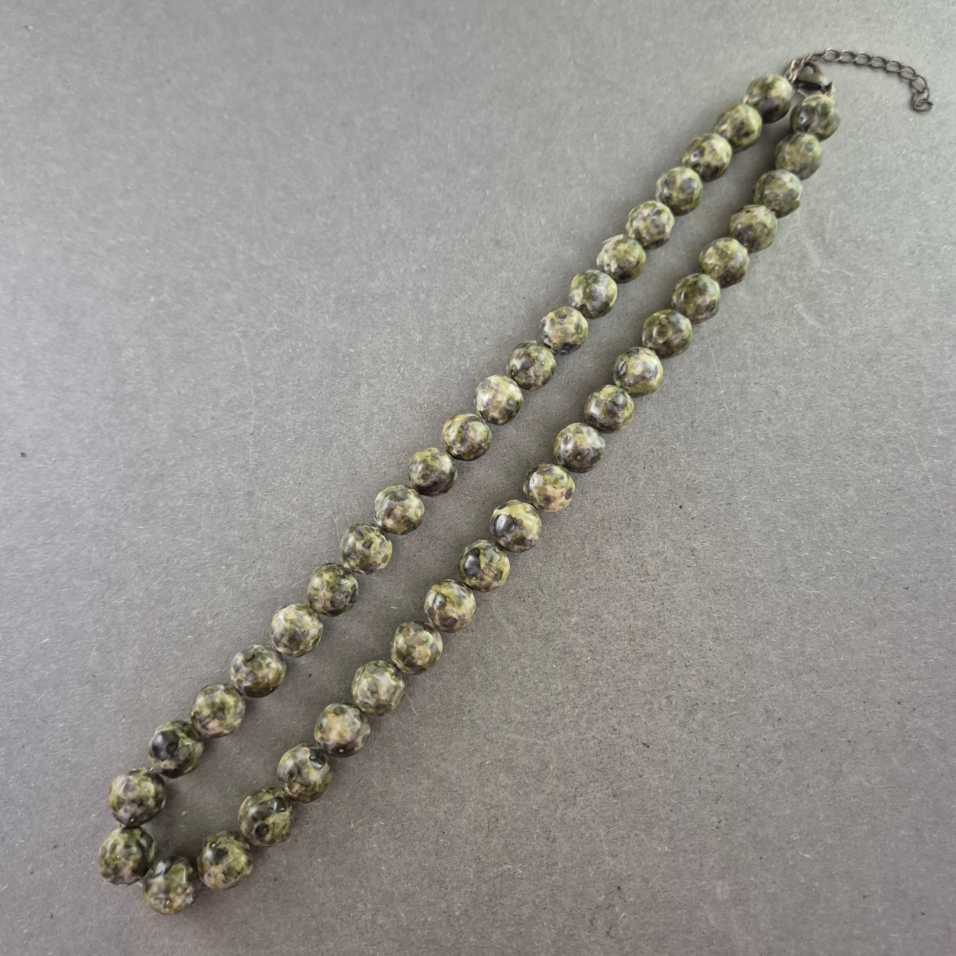 Grün-marmorierte Halskette mit Kunststoffperlen – Verstellbar & Vintage