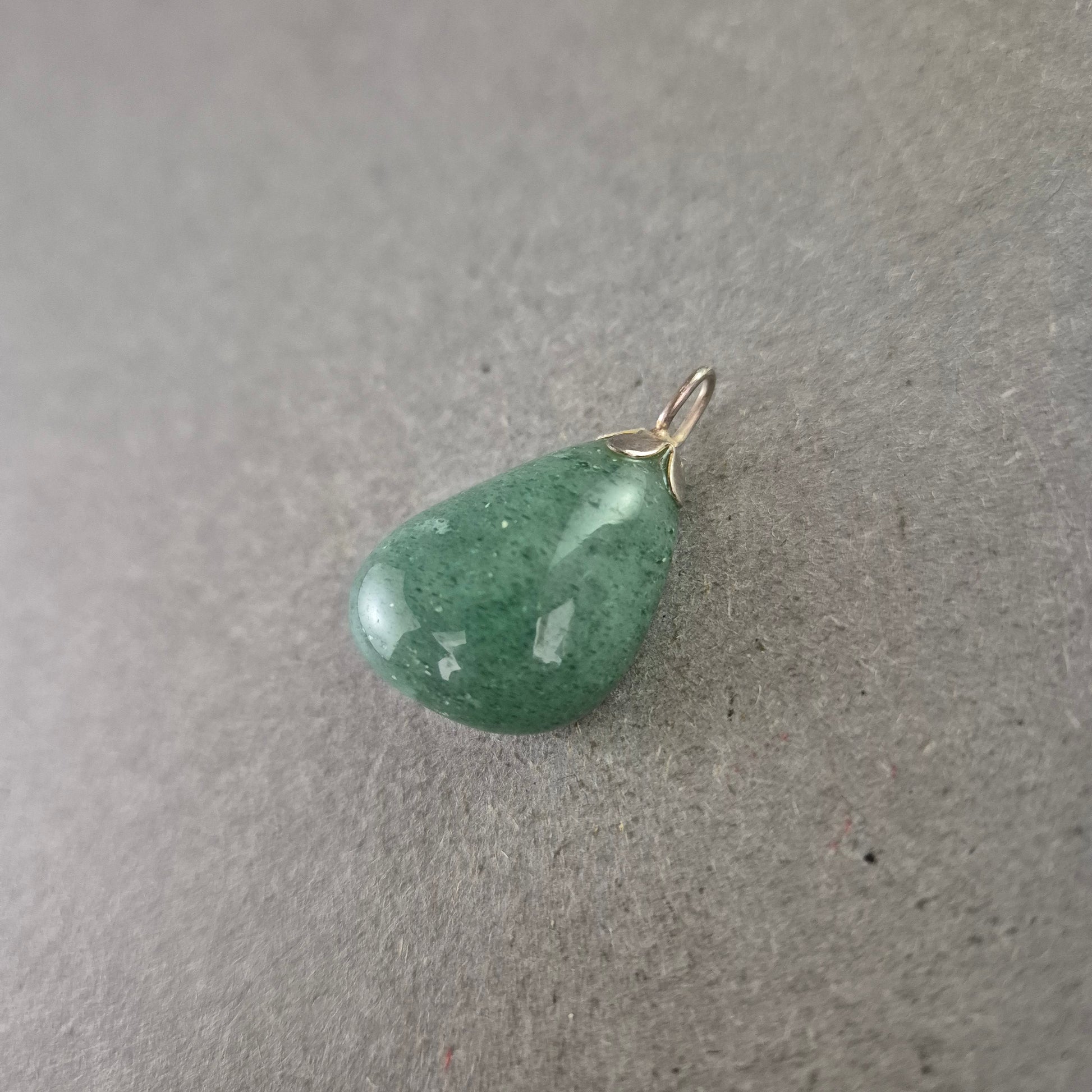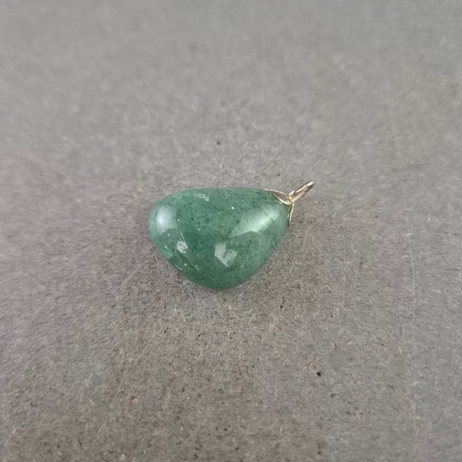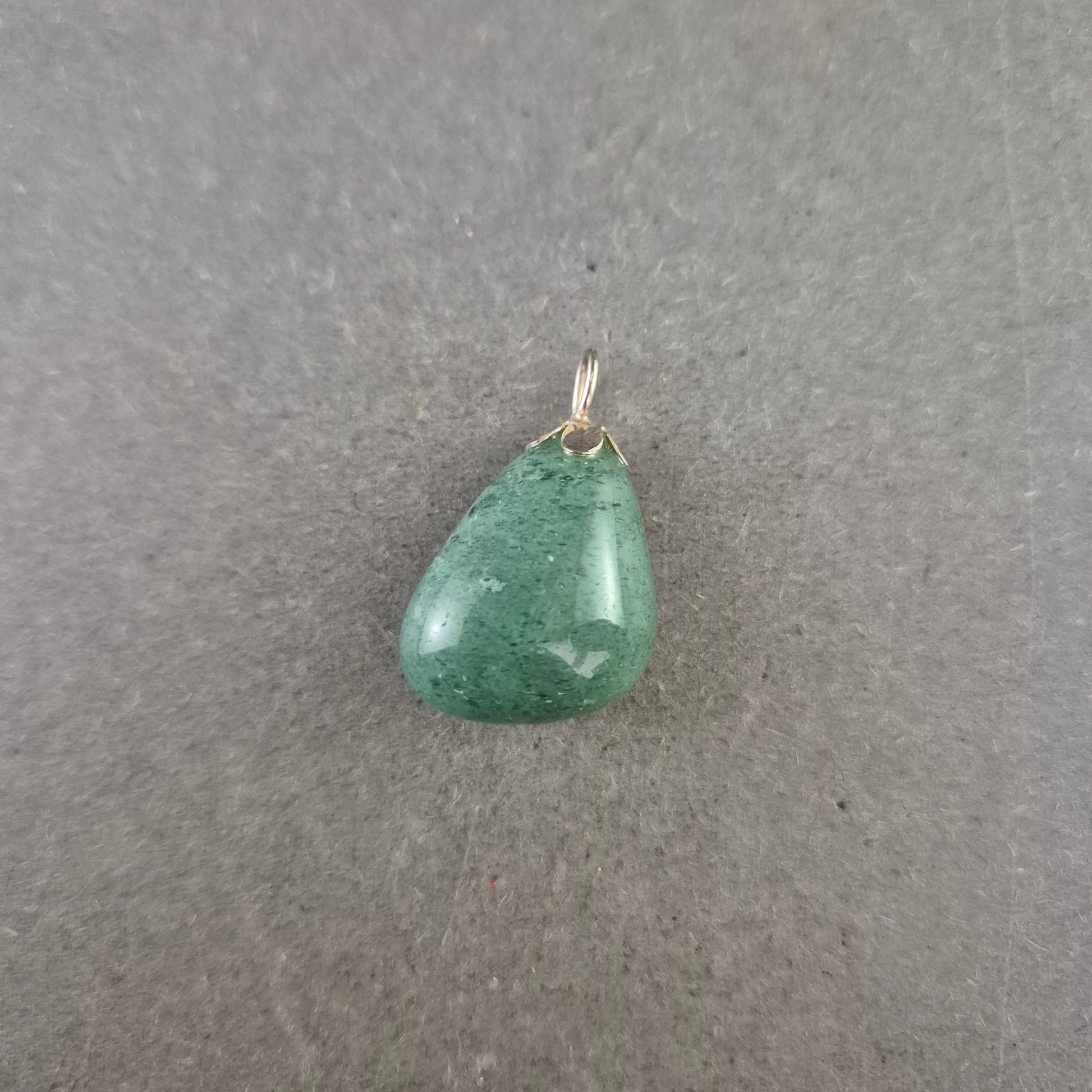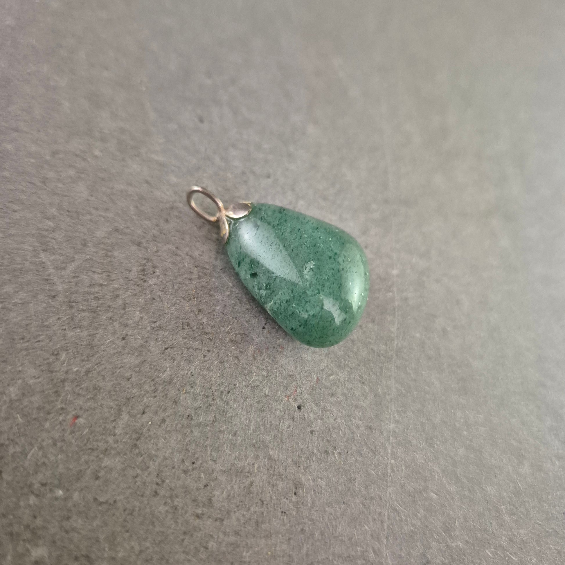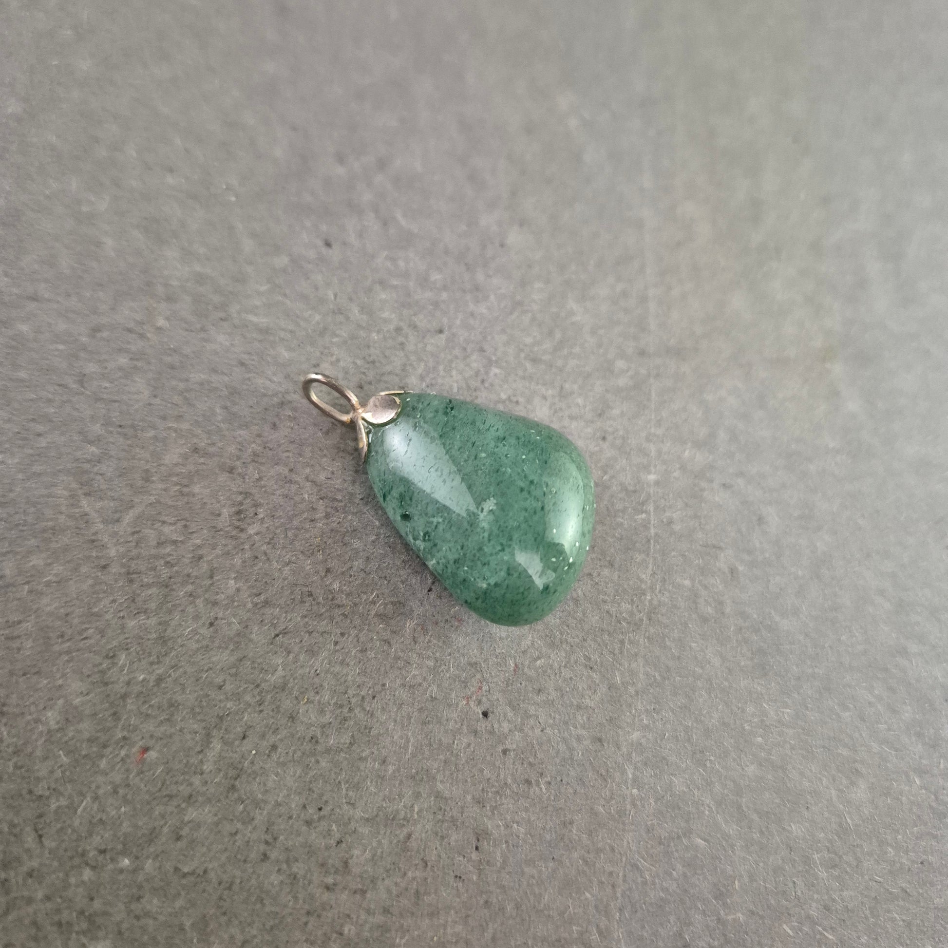 Material: Grüner Stein (vermutlich Aventurin), Silberfarbenes Metall (Öse)