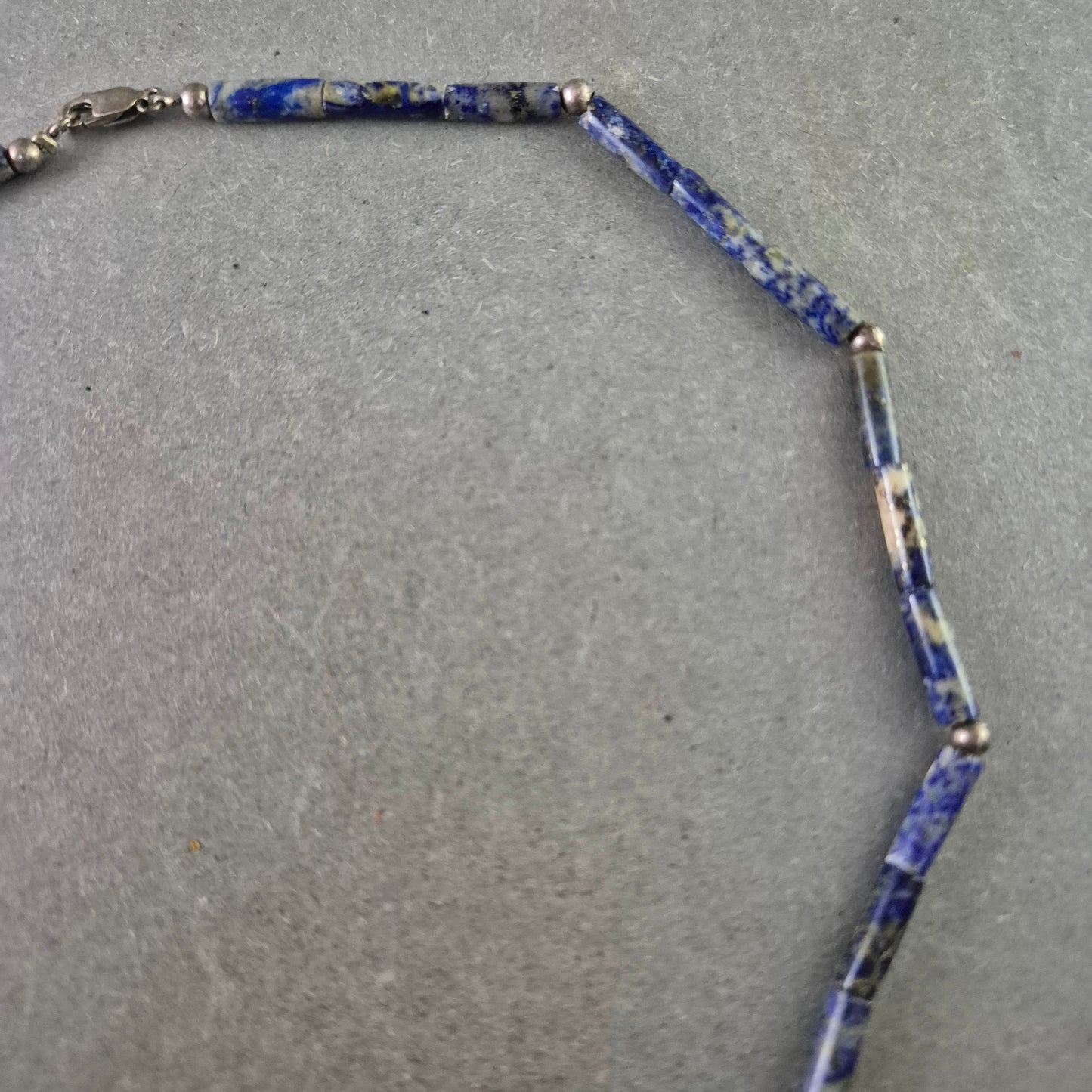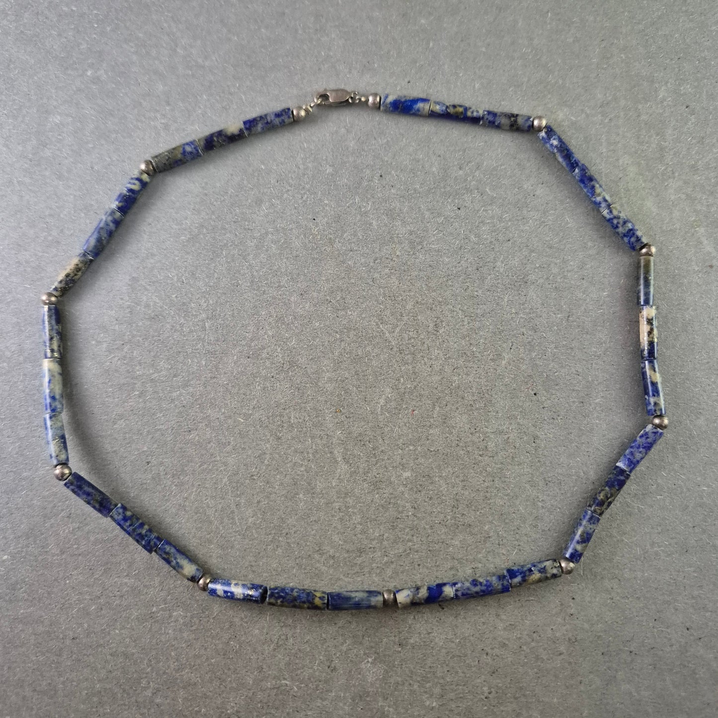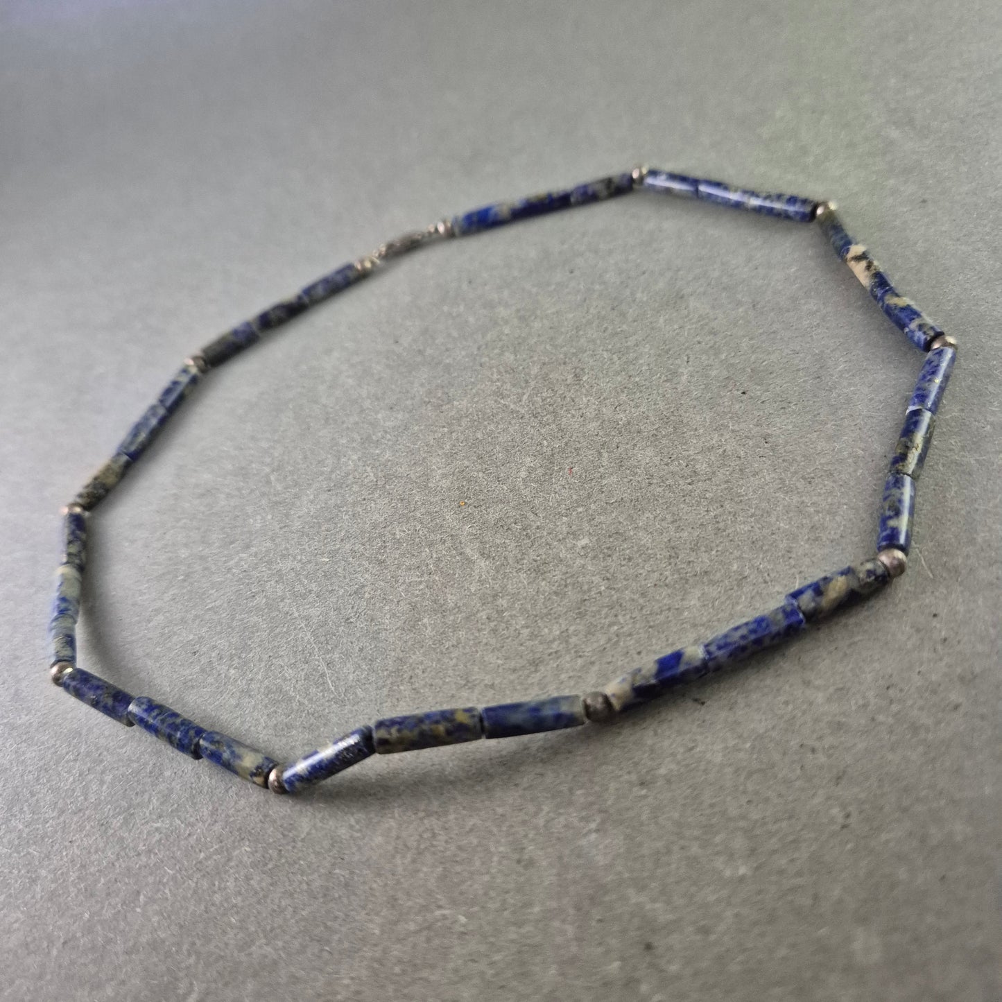 Halskette mit blauen Lapis-Röhrenperlen – Natürlich & geometrisch