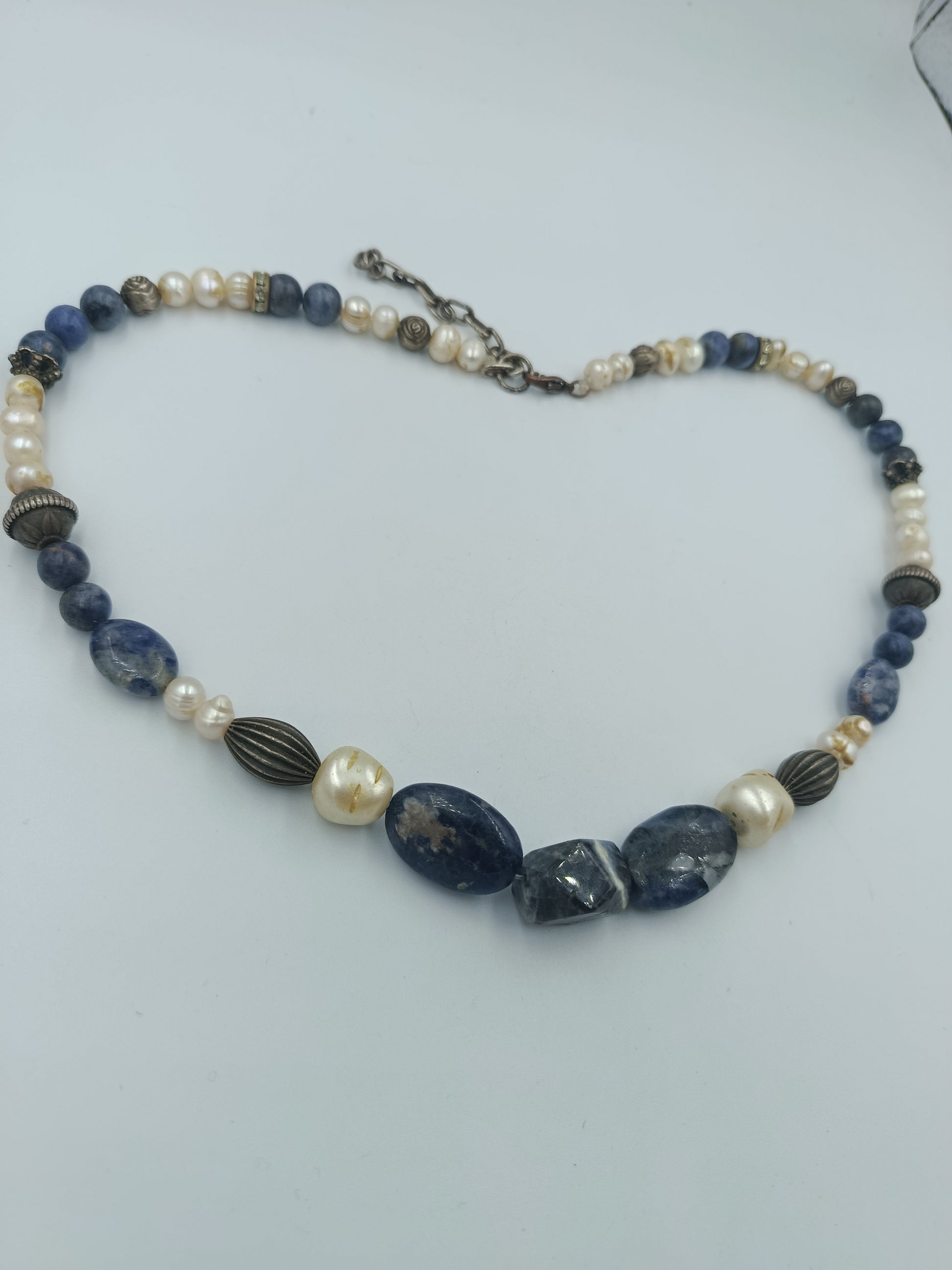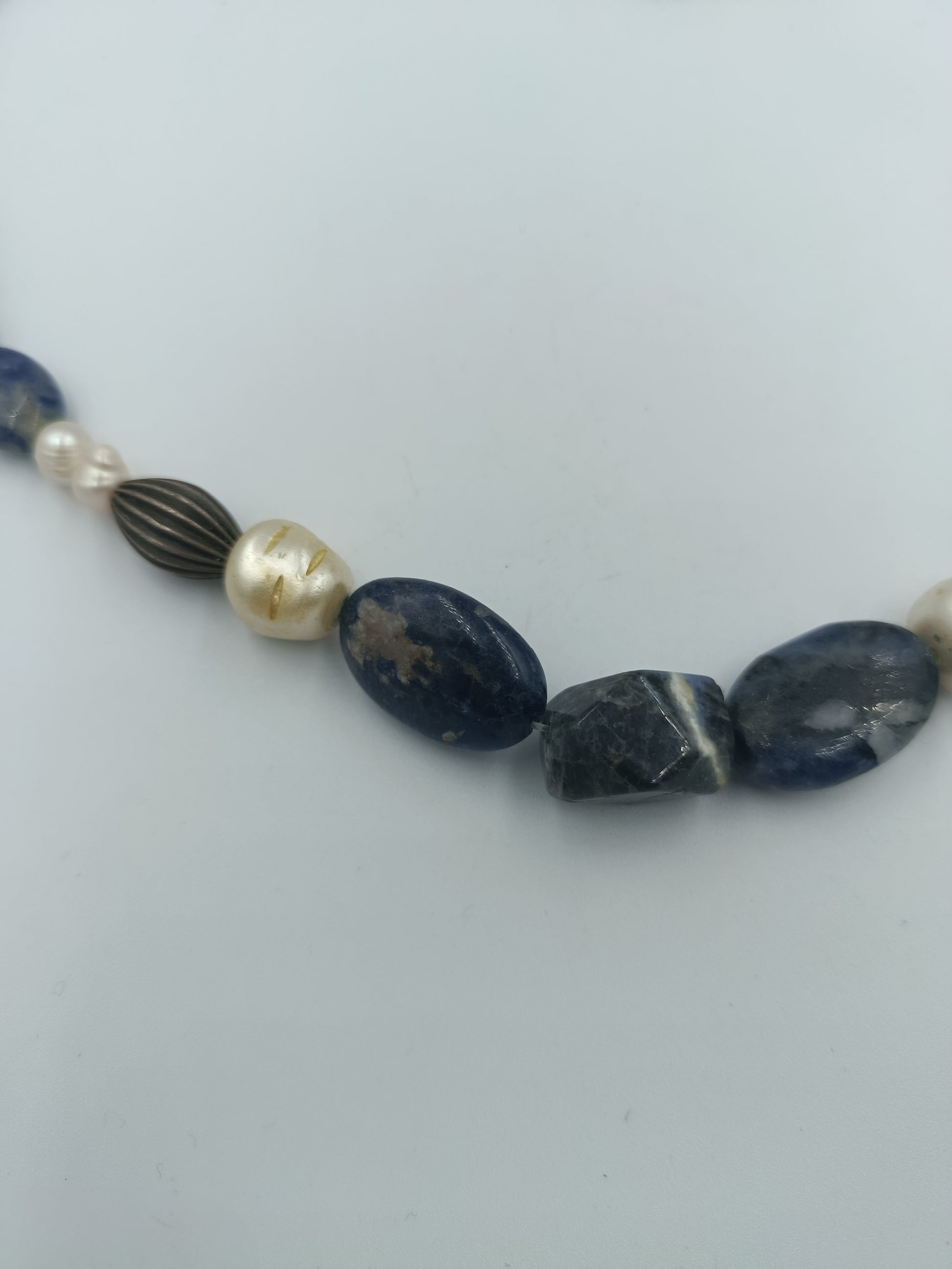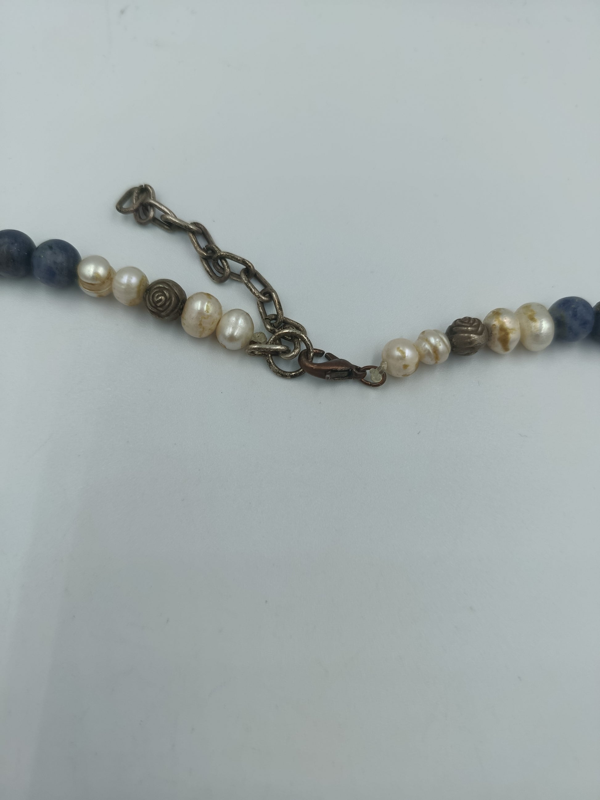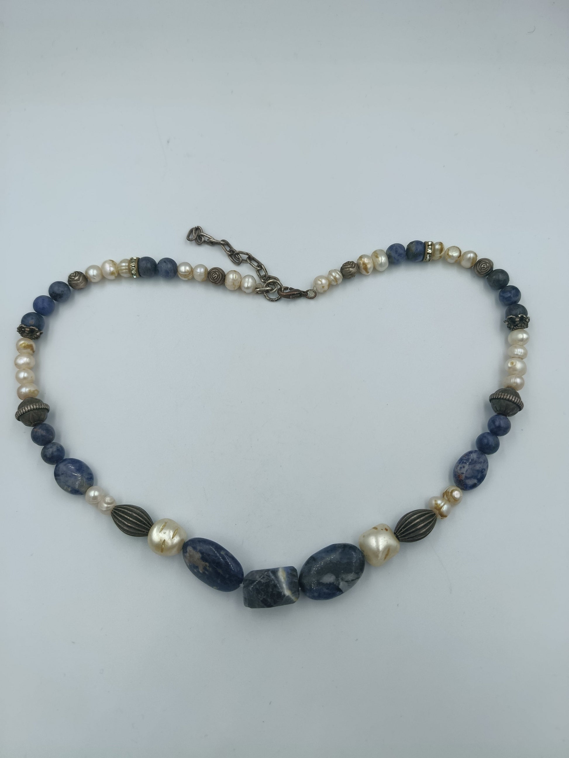 Halskette mit Sodalith-Steinen und Süßwasserperlen