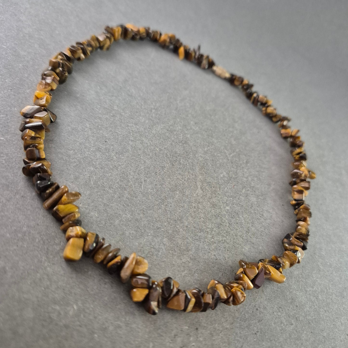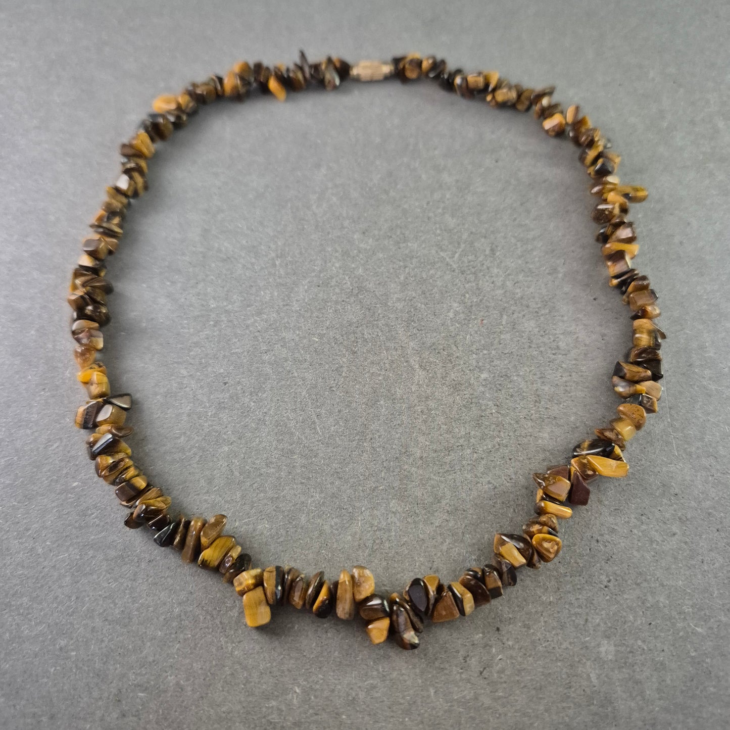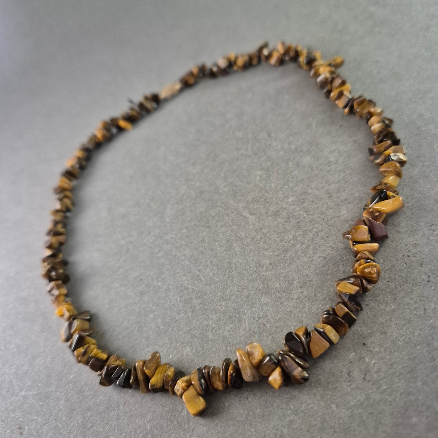 Halskette mit Tigerauge-Splittern – Natursteinoptik im Vintage-Stil