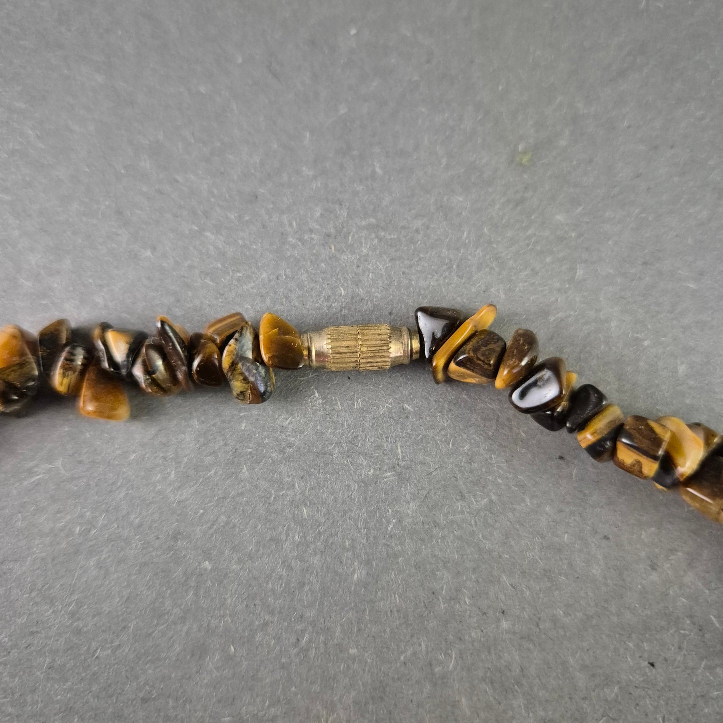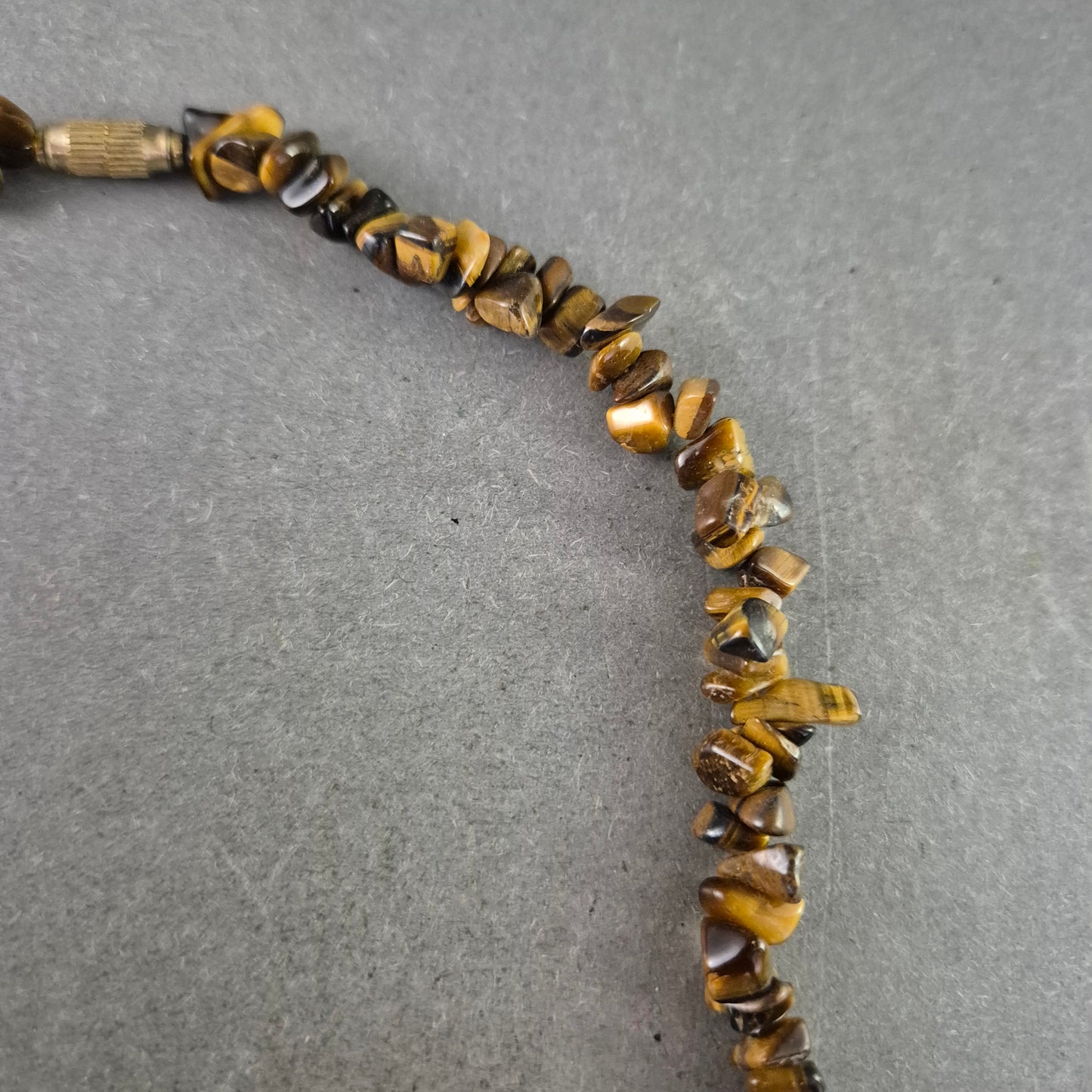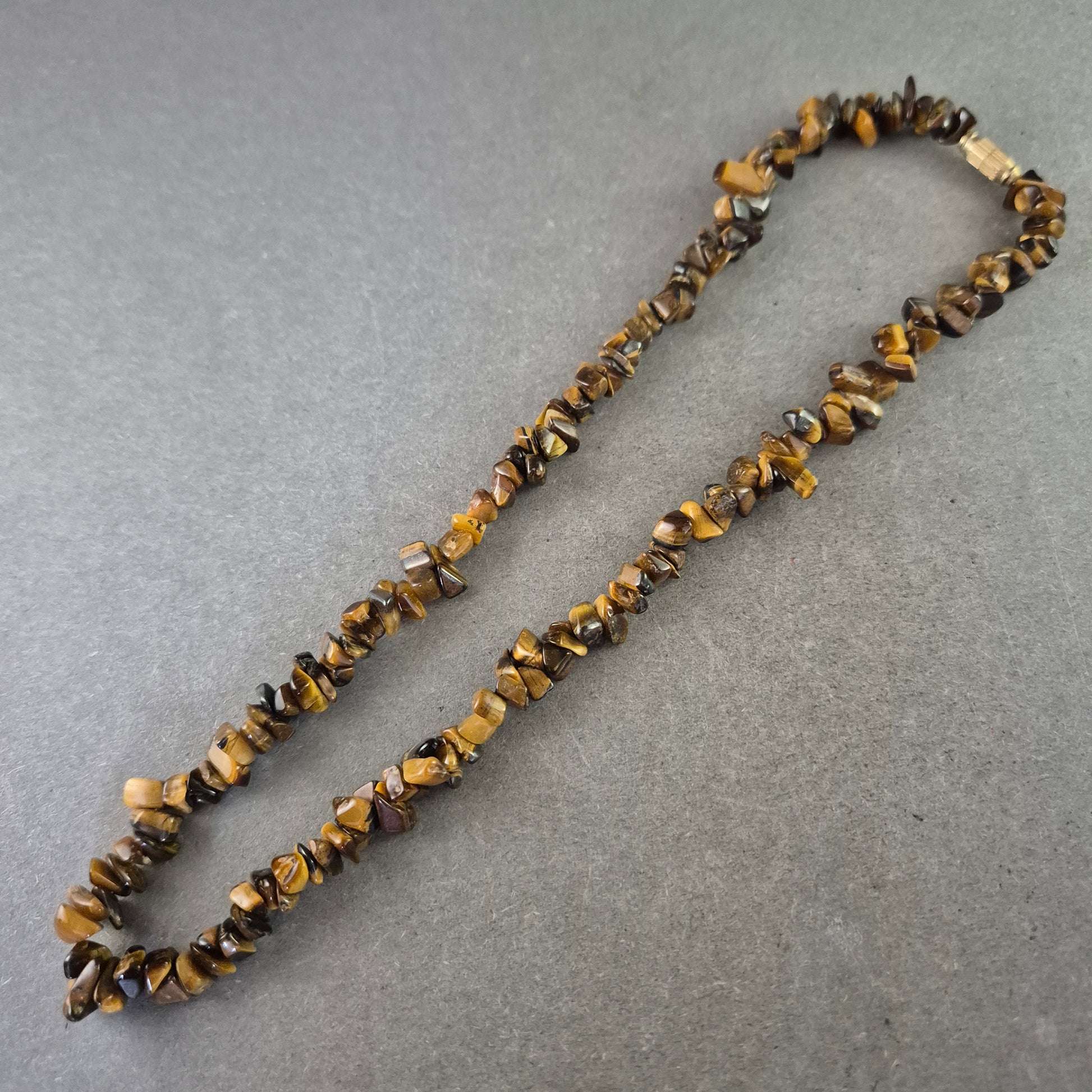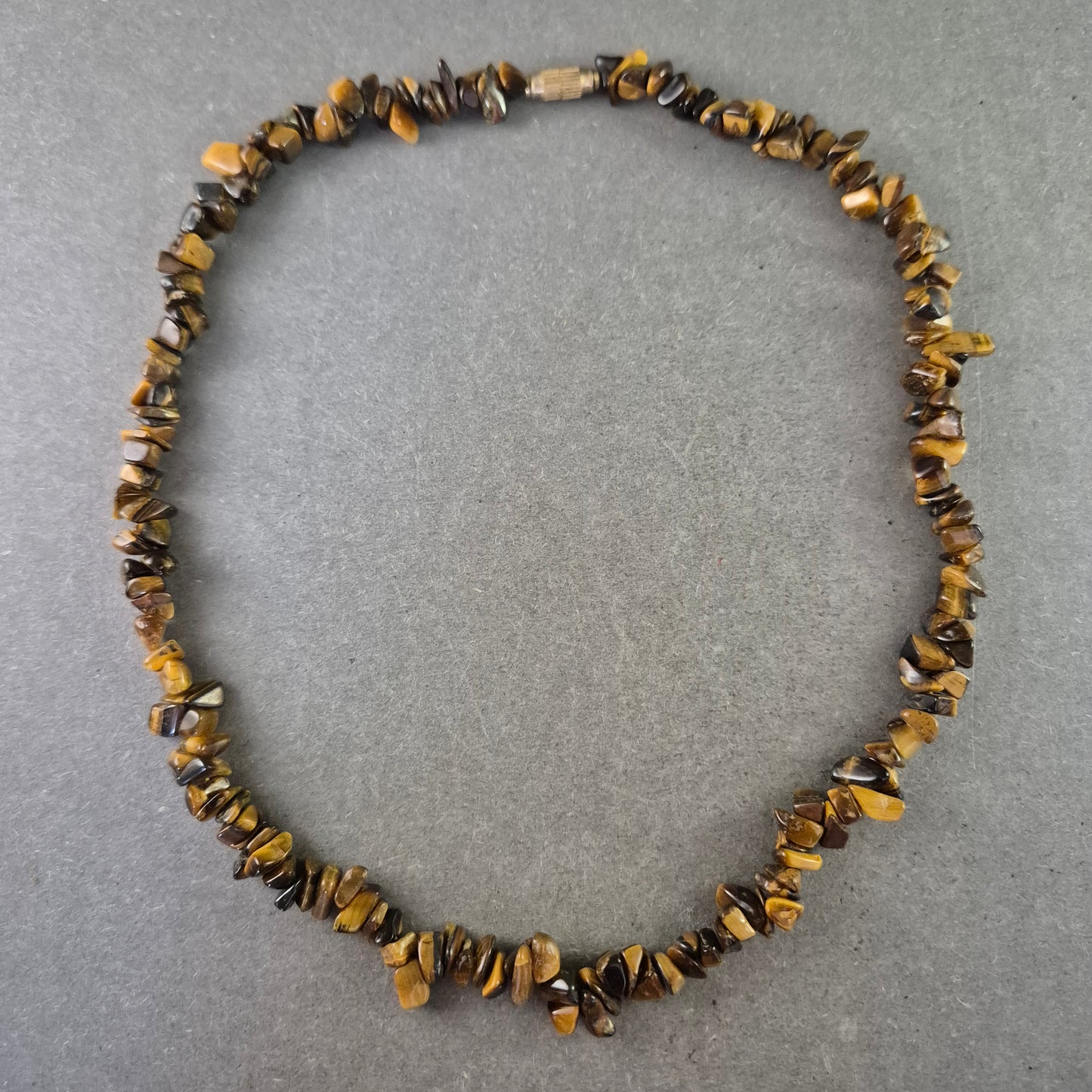 Halskette mit Tigerauge-Splittern – Natursteinoptik im Vintage-Stil