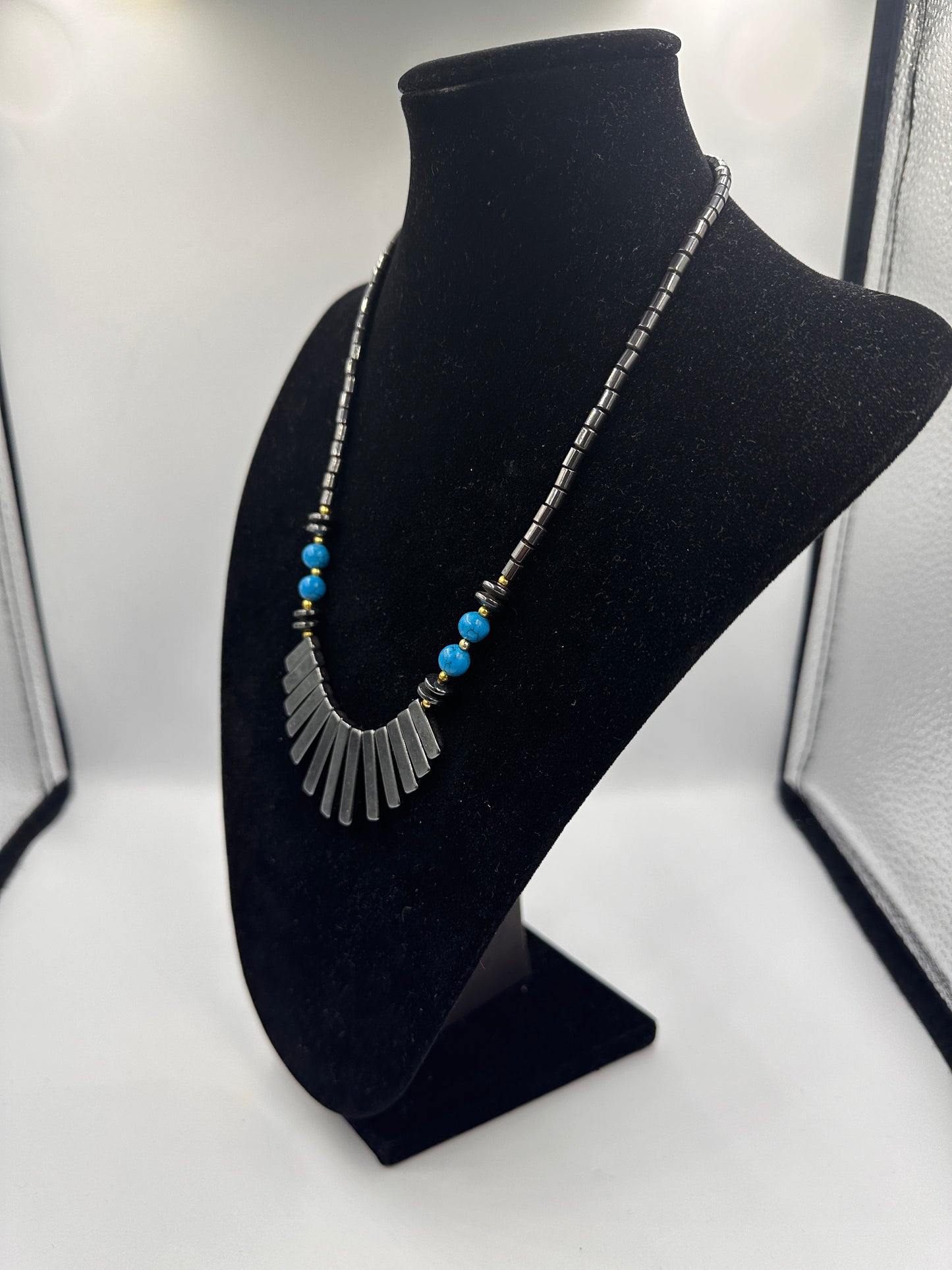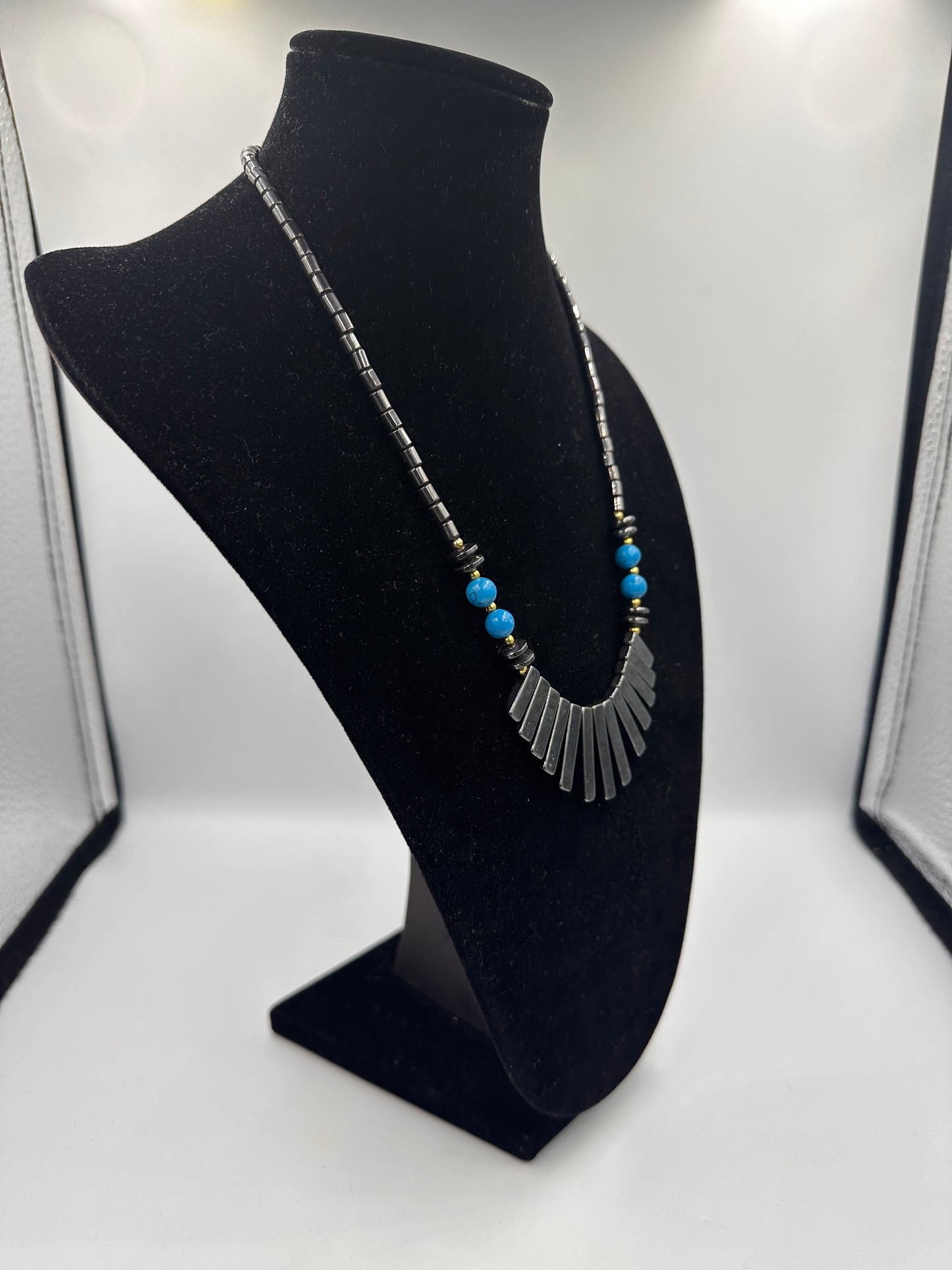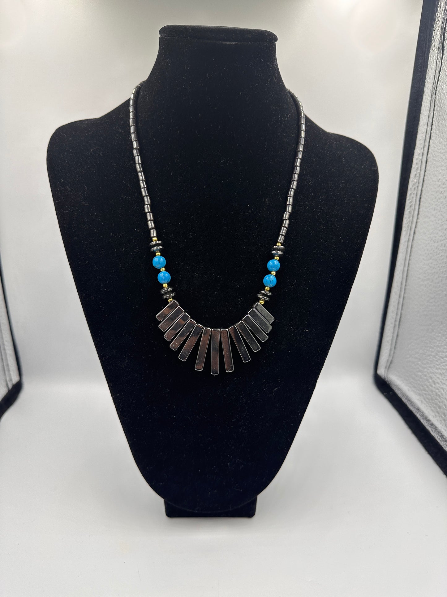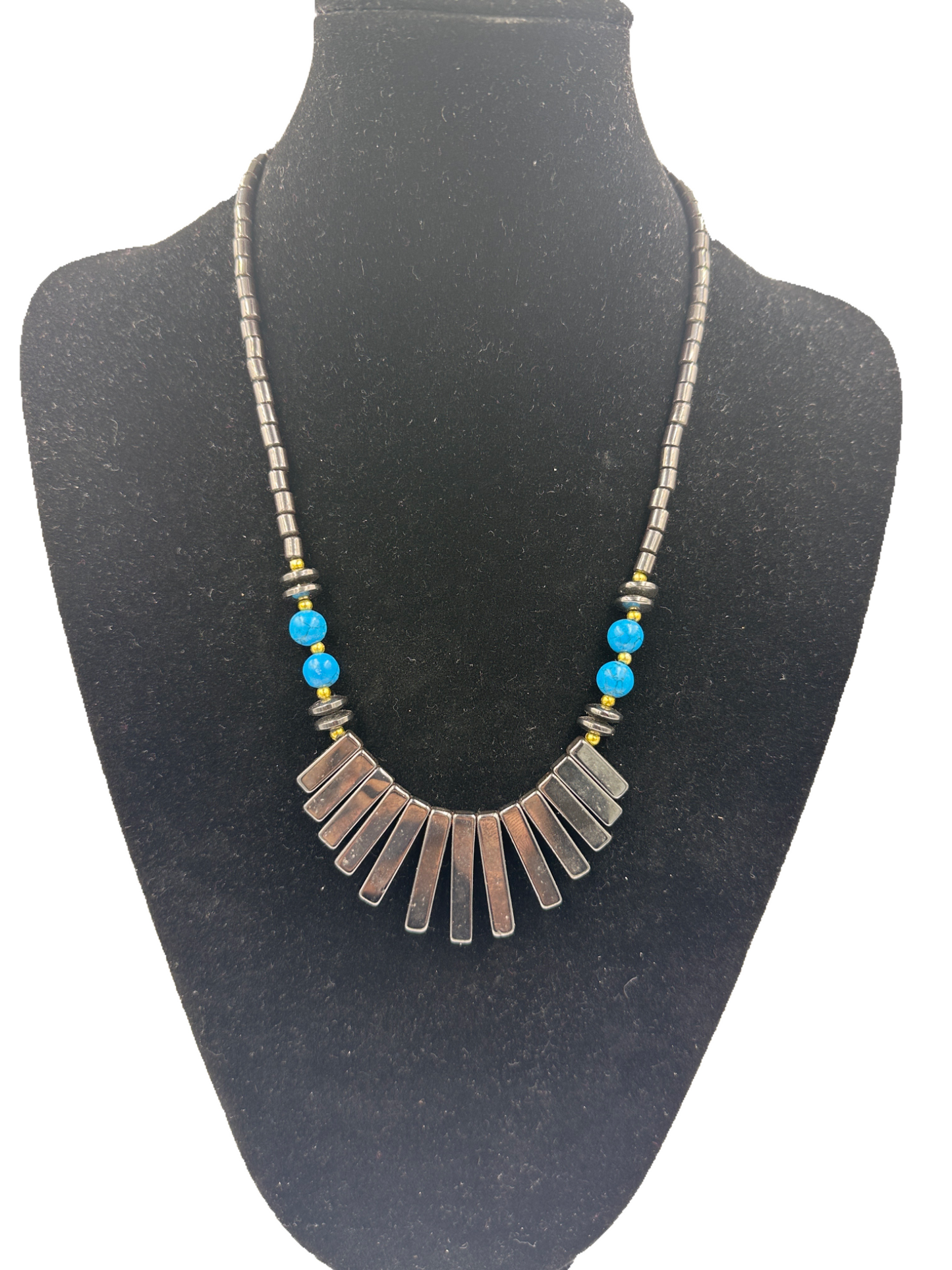 Beschreibung: Verleihen Sie Ihrem Outfit mit dieser eleganten Hämatit-Collier Halskette mit blauen Akzenten einen Hauch von Raffinesse. Dieses exquisite Schmuckstück kombiniert die tiefen, glänzenden Töne des Hämatits mit leuchtend blauen Akzenten, die einen auffälligen Kontrast bieten. Perfekt für besondere Anlässe oder als stilvolles Accessoire im Alltag.