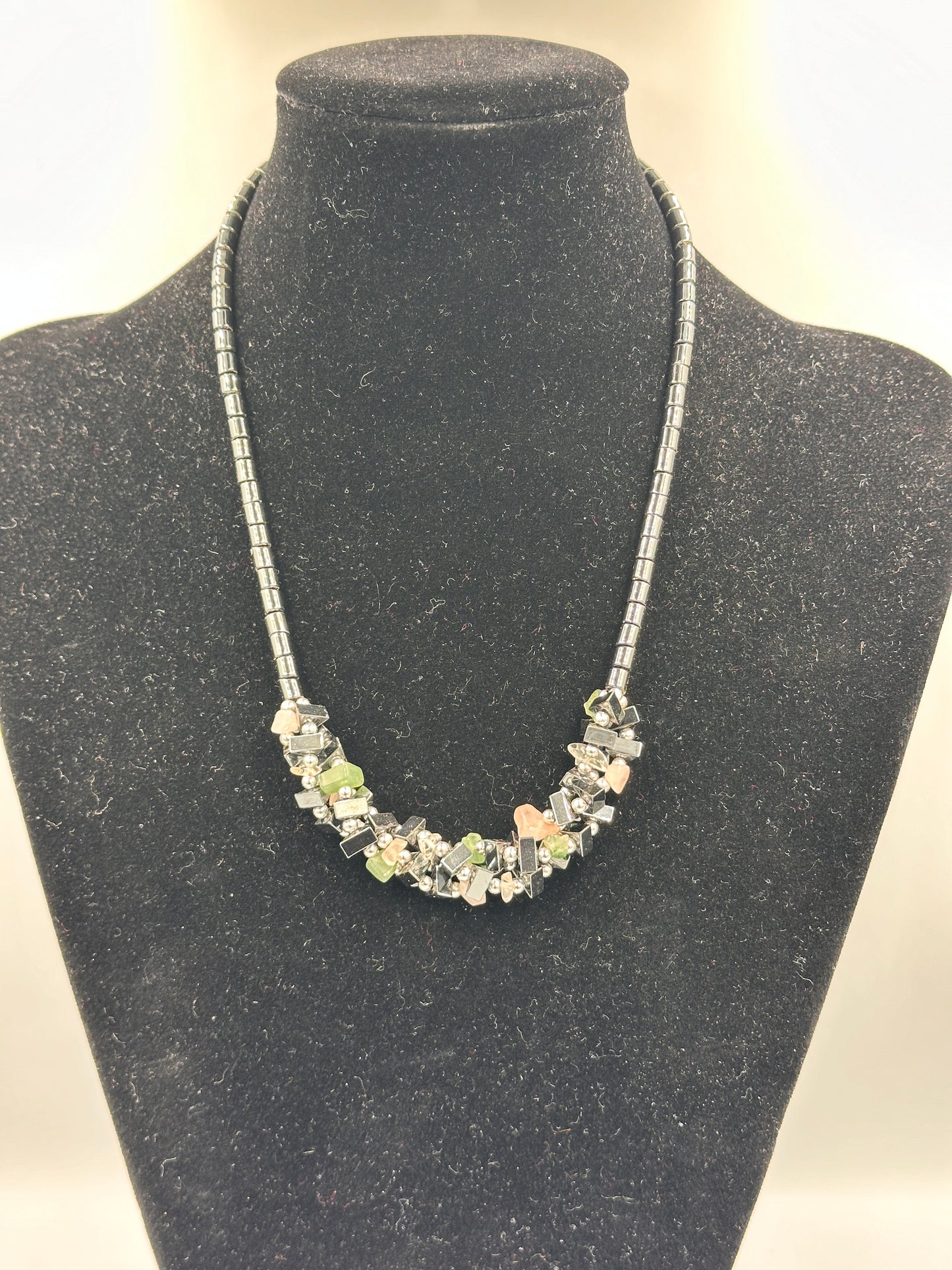 Hämatit Collier Halskette mit Verschiedenen Edelsteinen