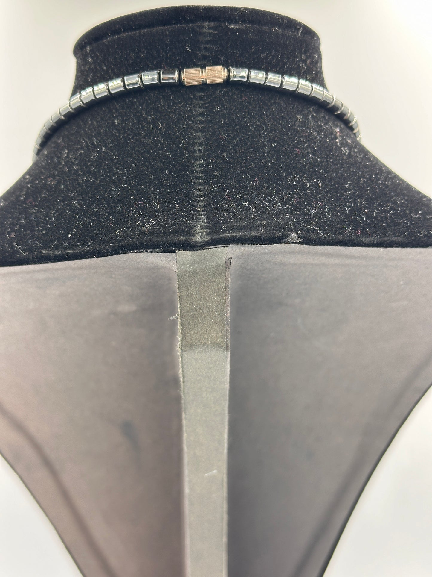 Um die Schönheit und den Glanz dieser Hämatit Collier Halskette zu bewahren, empfehlen wir, sie regelmäßig mit einem weichen Tuch zu reinigen und vor Feuchtigkeit sowie direktem Kontakt mit Parfüm und Chemikalien zu schützen.