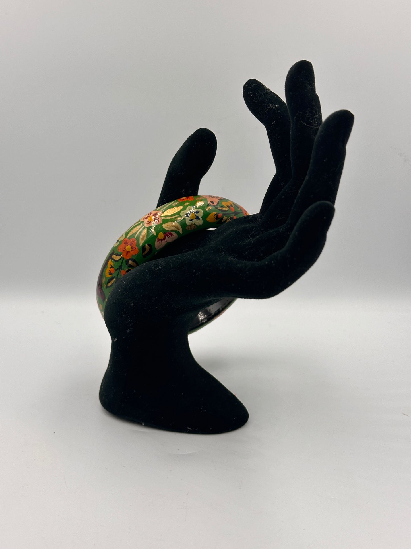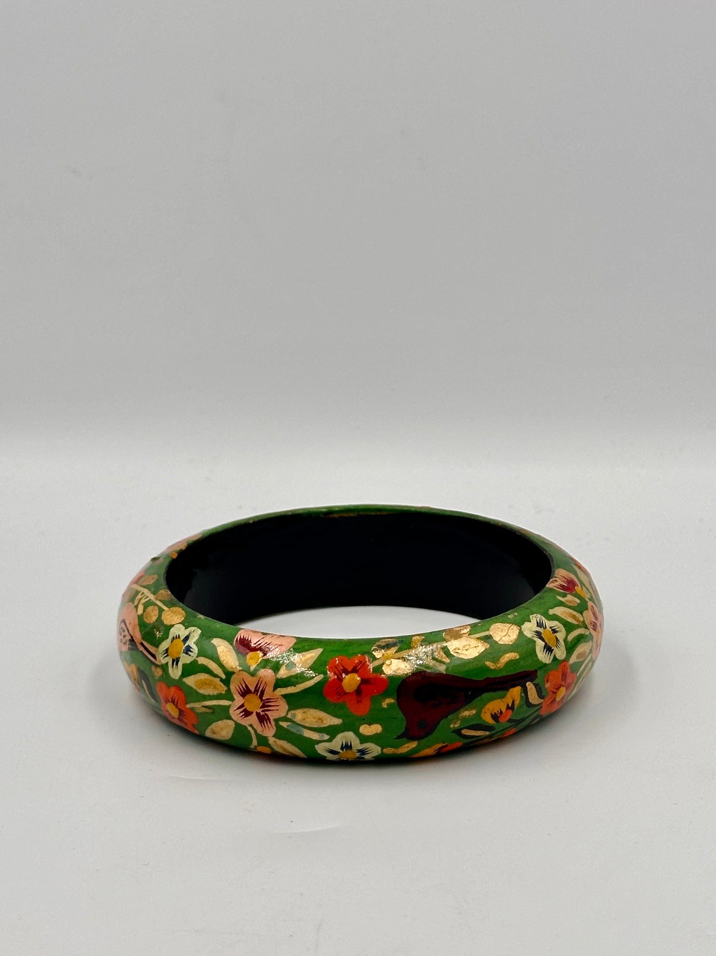 Beschreibung: Tauchen Sie ein in die kunstvolle Welt Indiens mit diesem handbemalten Vintage-Armreif. Jedes Detail spricht von Handwerkskunst und Tradition, die in jedem Pinselstrich festgehalten sind. Der Armreif zeigt Gebrauchsspuren, die seinen Charakter und seine Authentizität unterstreichen.