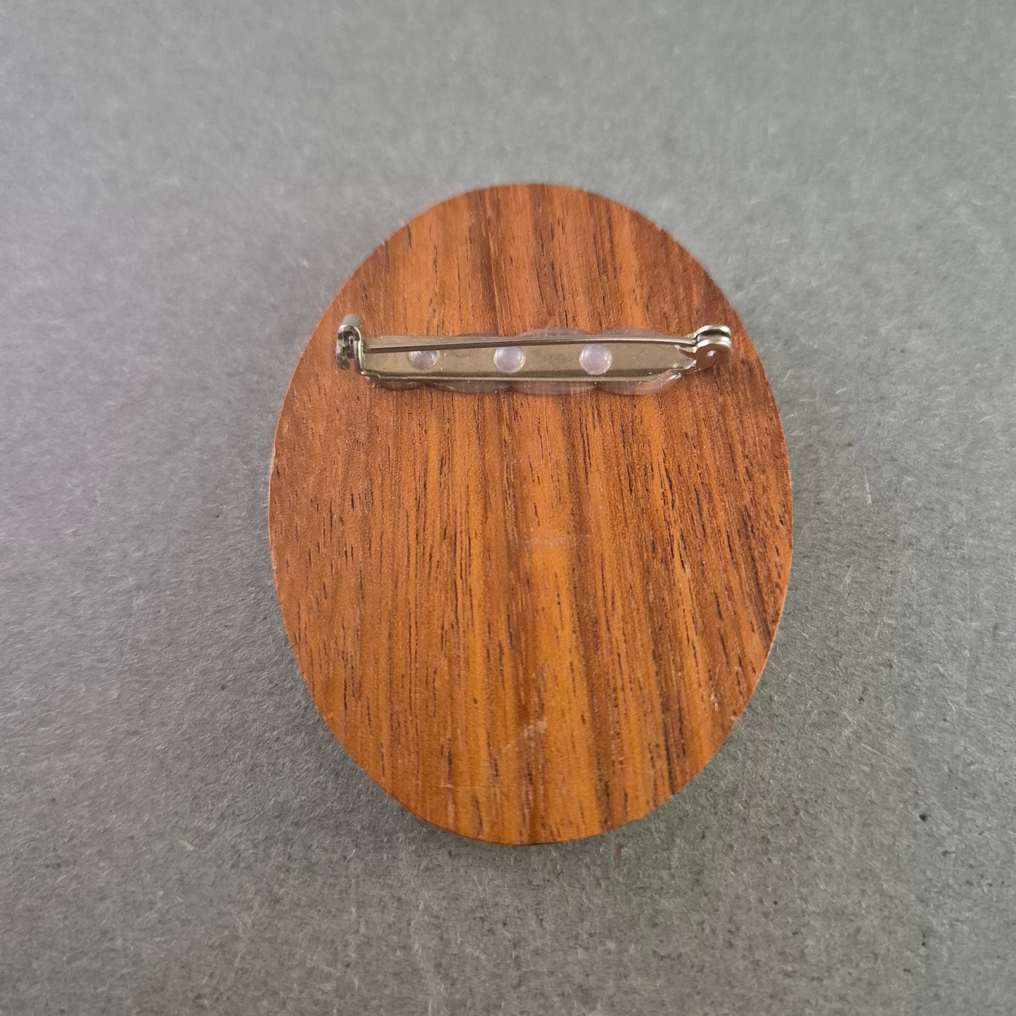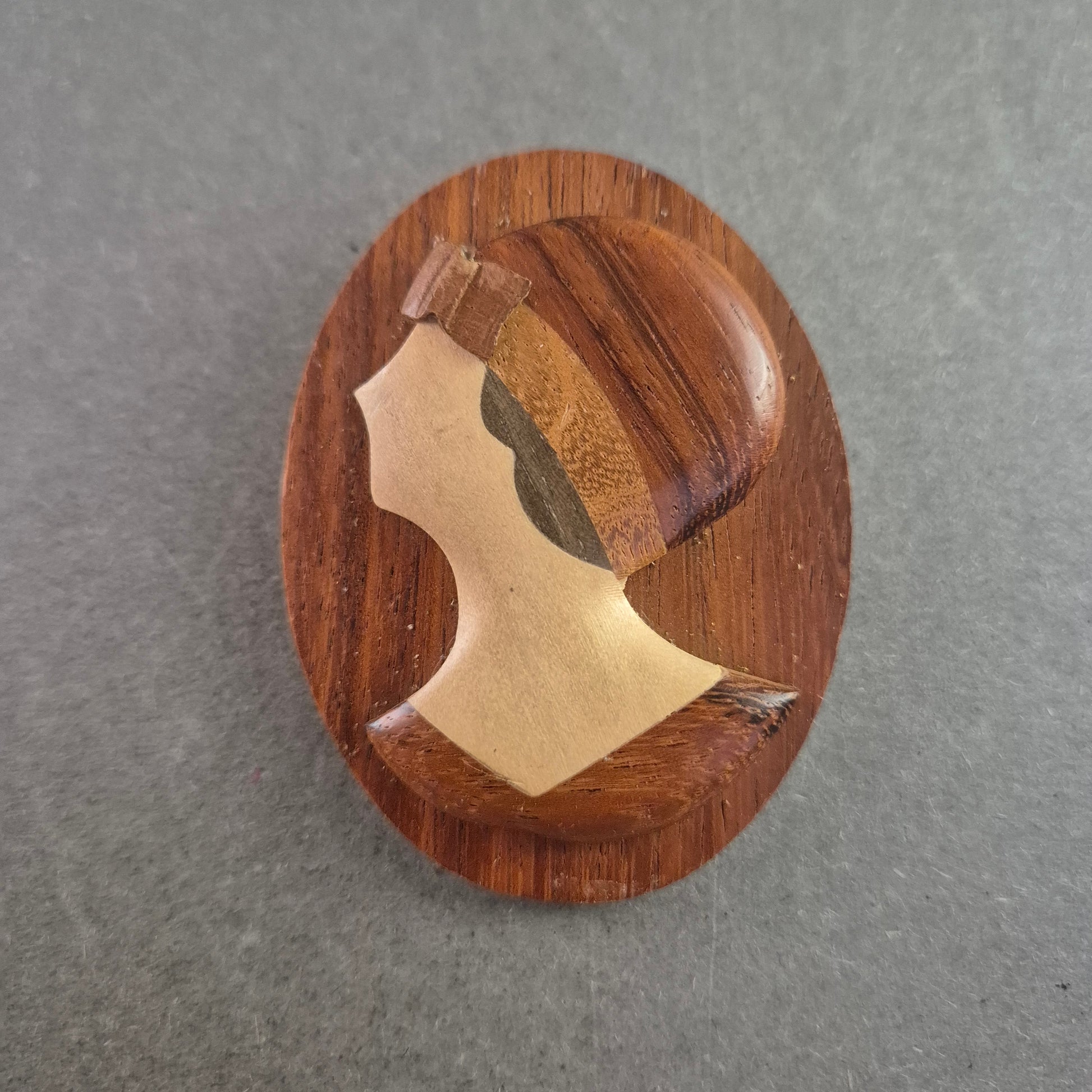 Handgefertigte Holz-Brosche – Silhouette im Retro-Stil