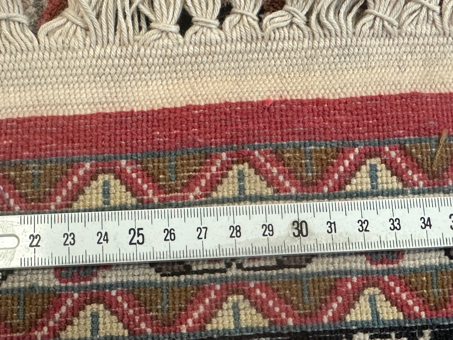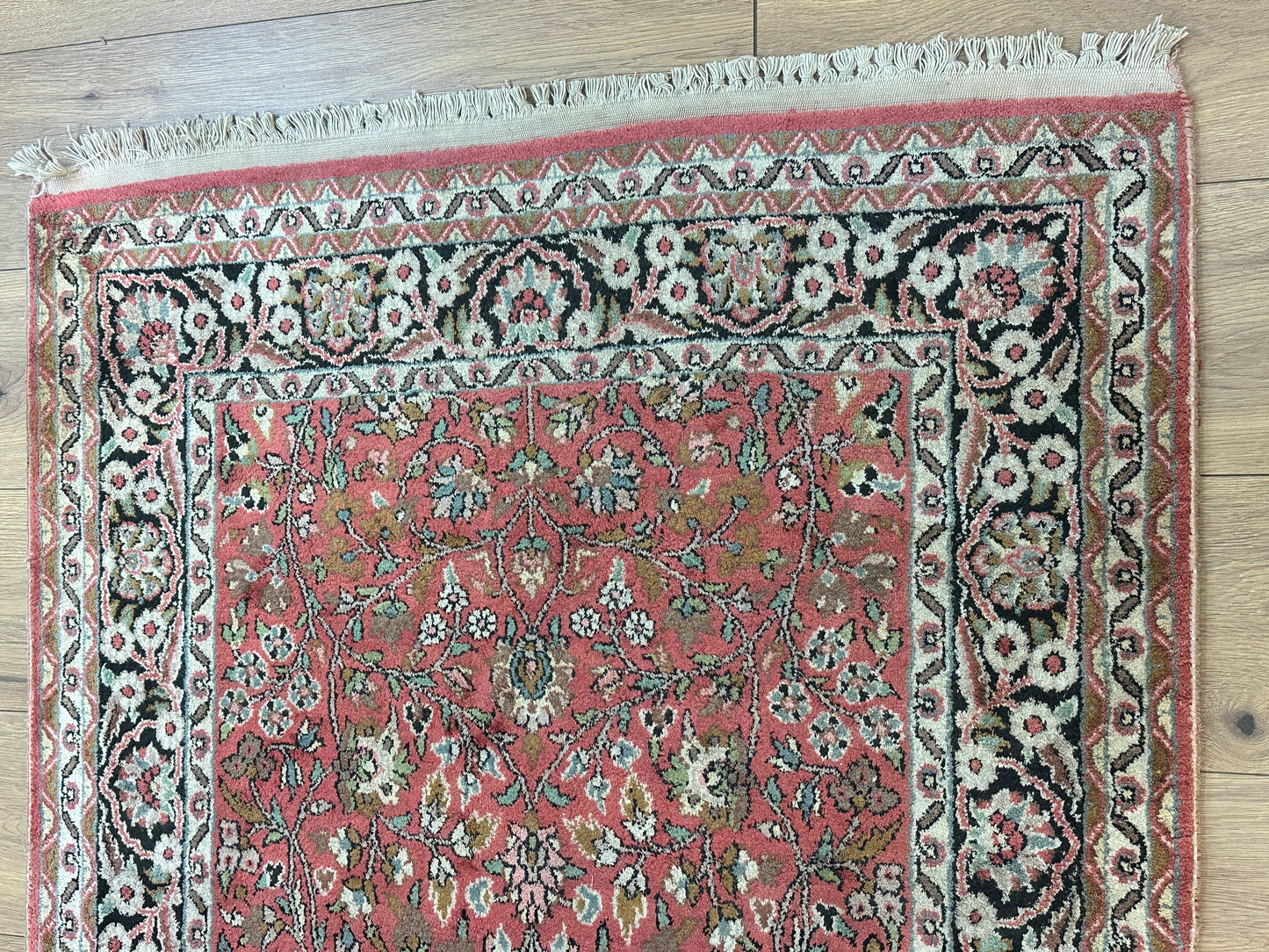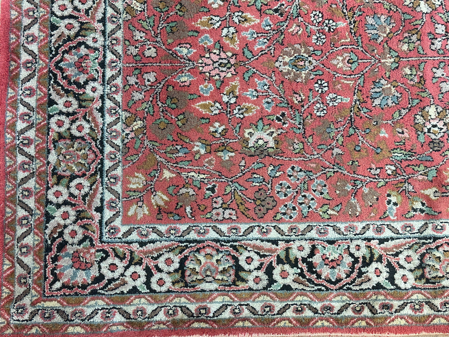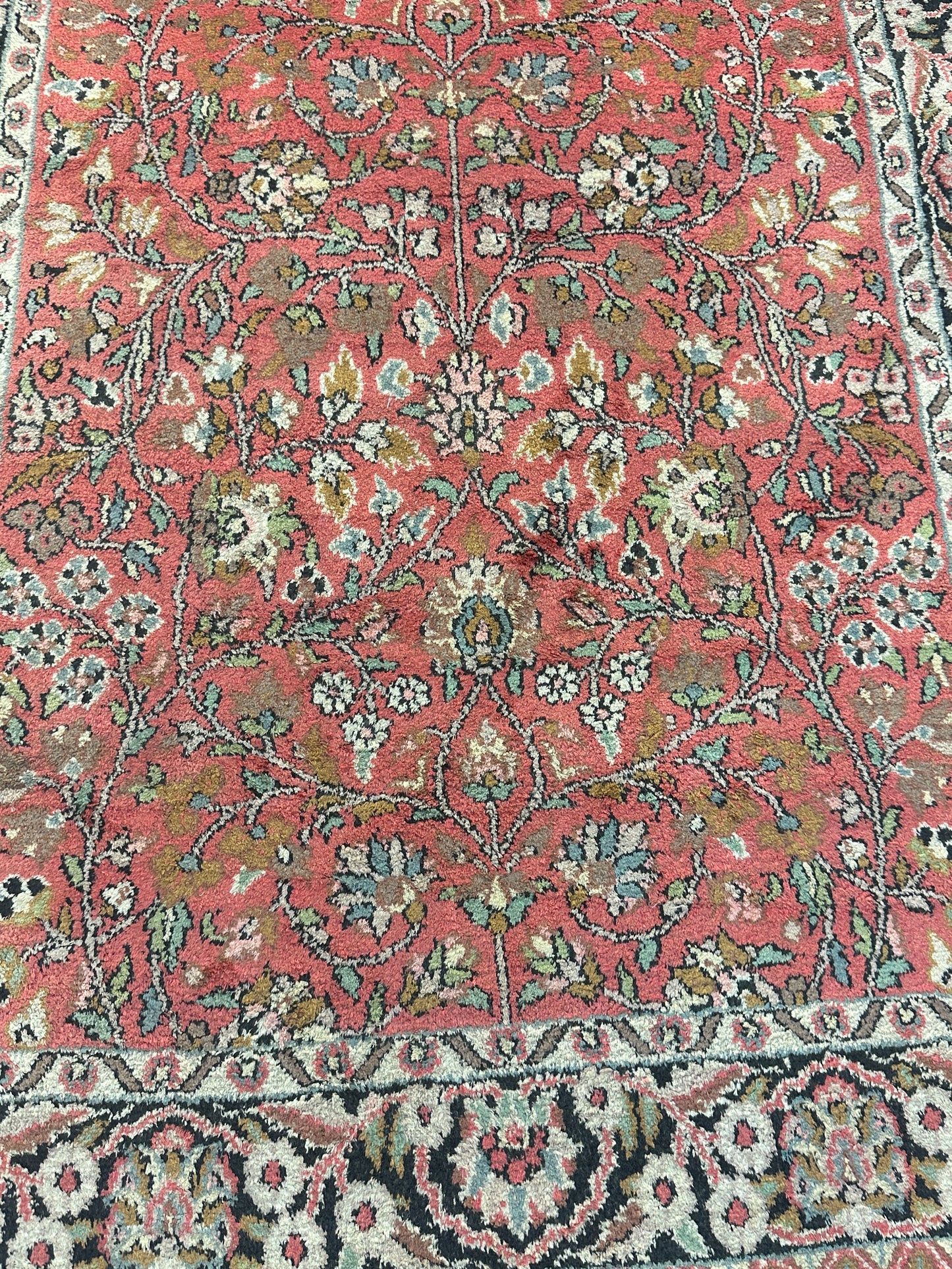 • Zustand gut: Dieser Teppich befindet sich in einem guten Zustand, was auf seine hochwertige Verarbeitung und Pflege hinweist. Die geschickte Kombination von Kaschmir und Seide macht ihn zu einem besonderen Schmuckstück.