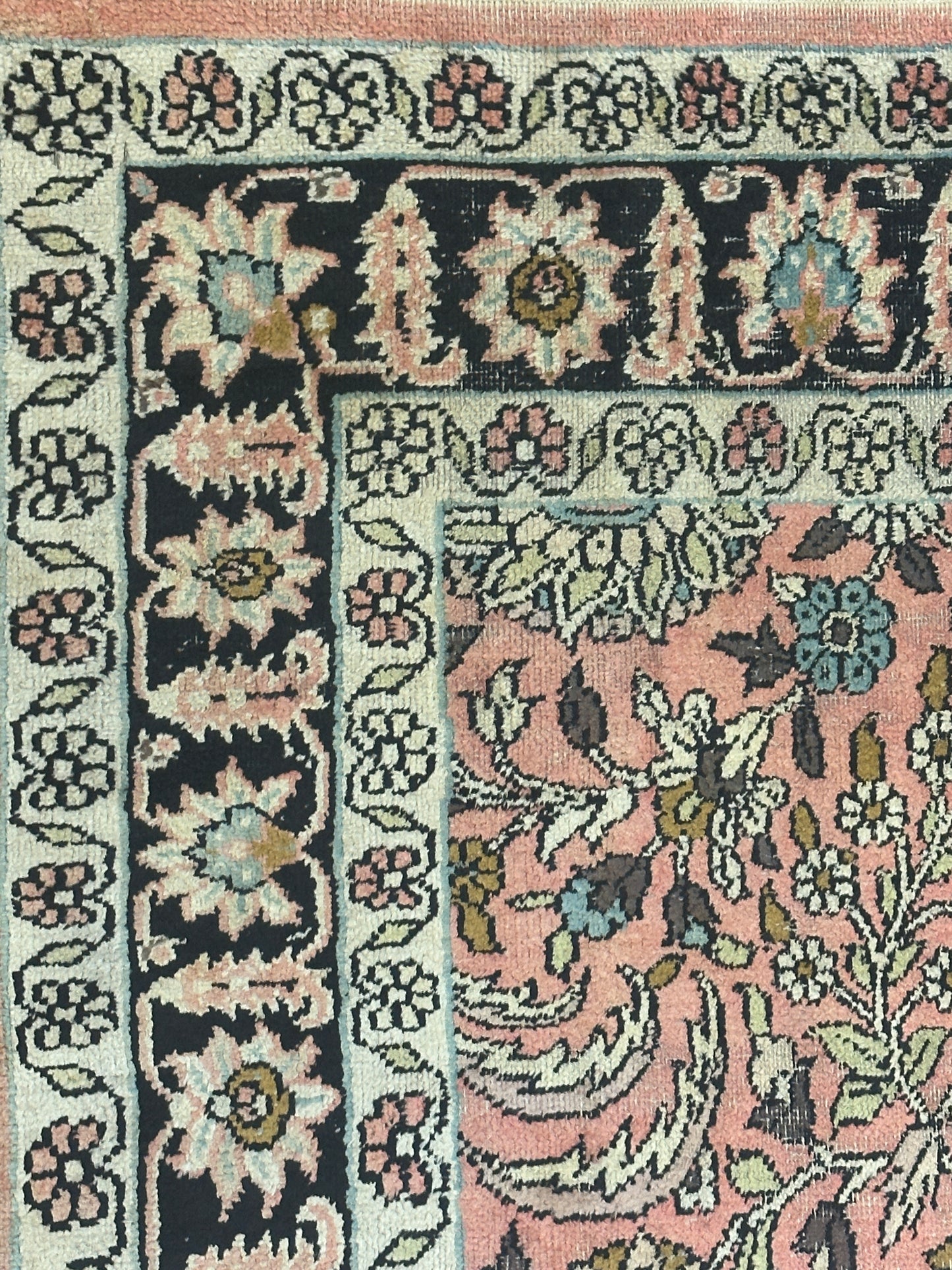 Der Kaschmir Ghom Seidenteppich mit Lebensbaum-Motiv ist ein Symbol für traditionelle Handwerkskunst und künstlerische Raffinesse. Die feinen Details und die Verwendung hochwertiger Seide machen ihn zu einem exquisiten Kunstwerk.