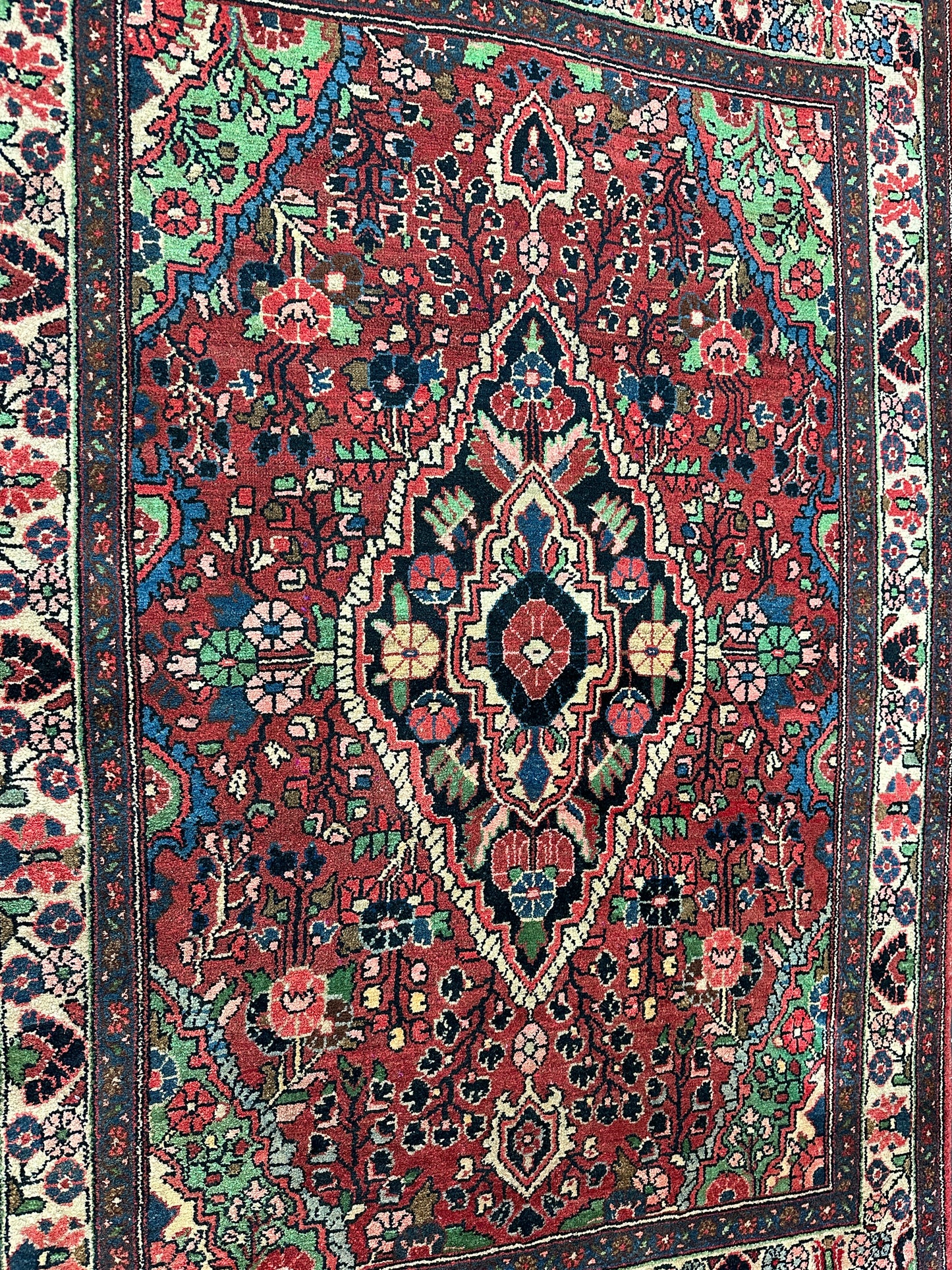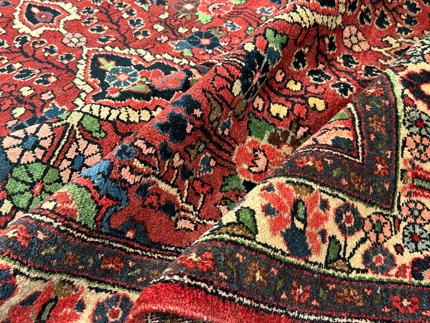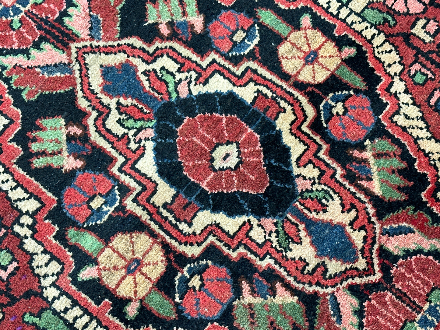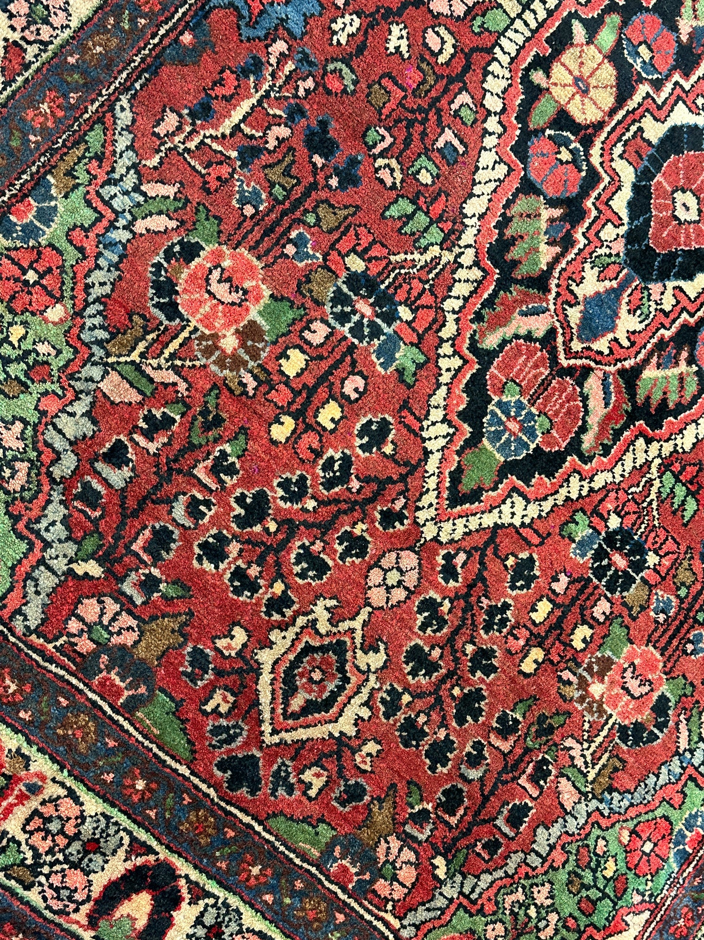 • Antiker Hamadan-Stil: Dieser Teppich präsentiert sich im Stil eines antiken Hamadan-Designs, das für seine einzigartigen Muster und warmen Farben bekannt ist.