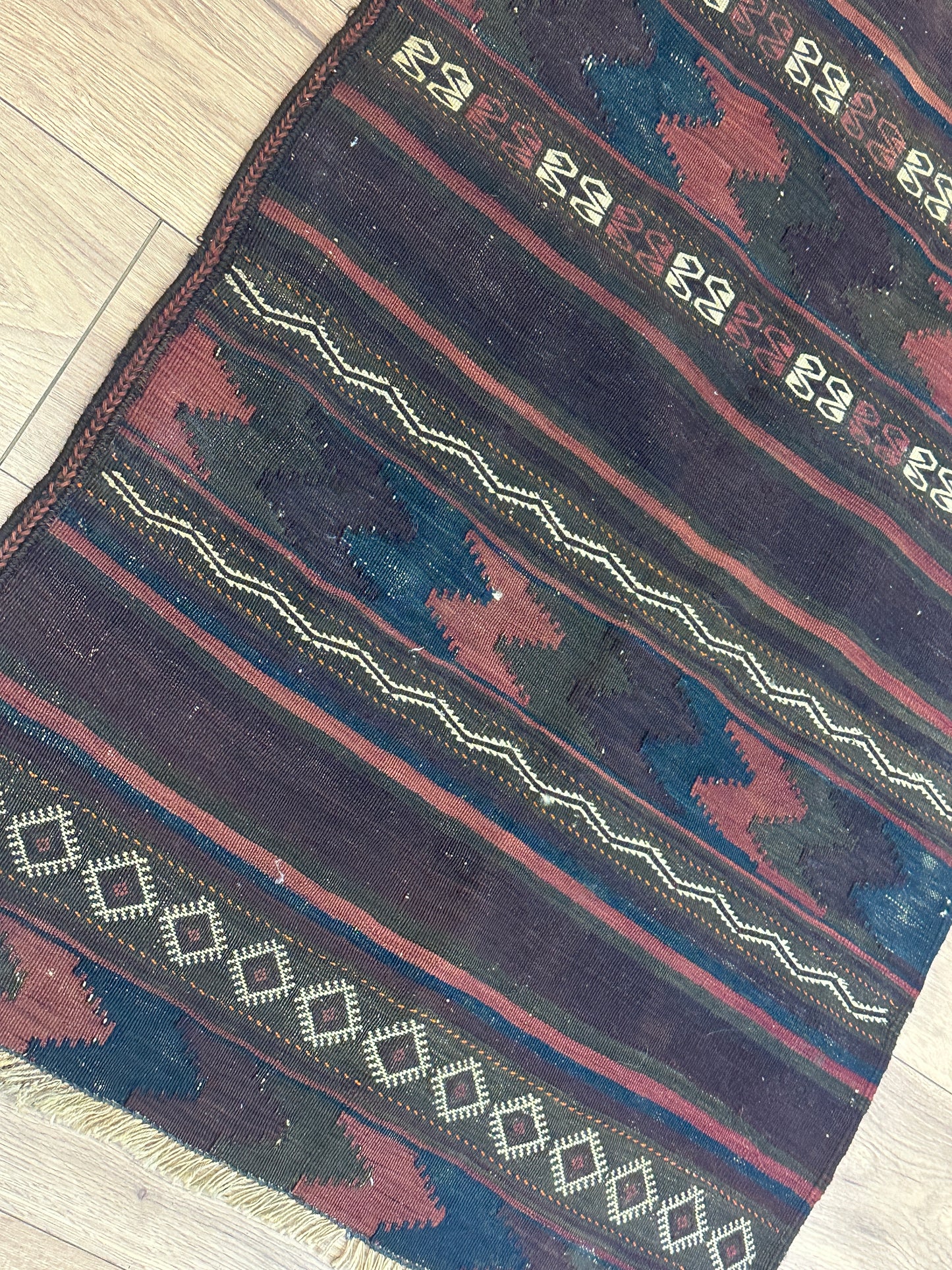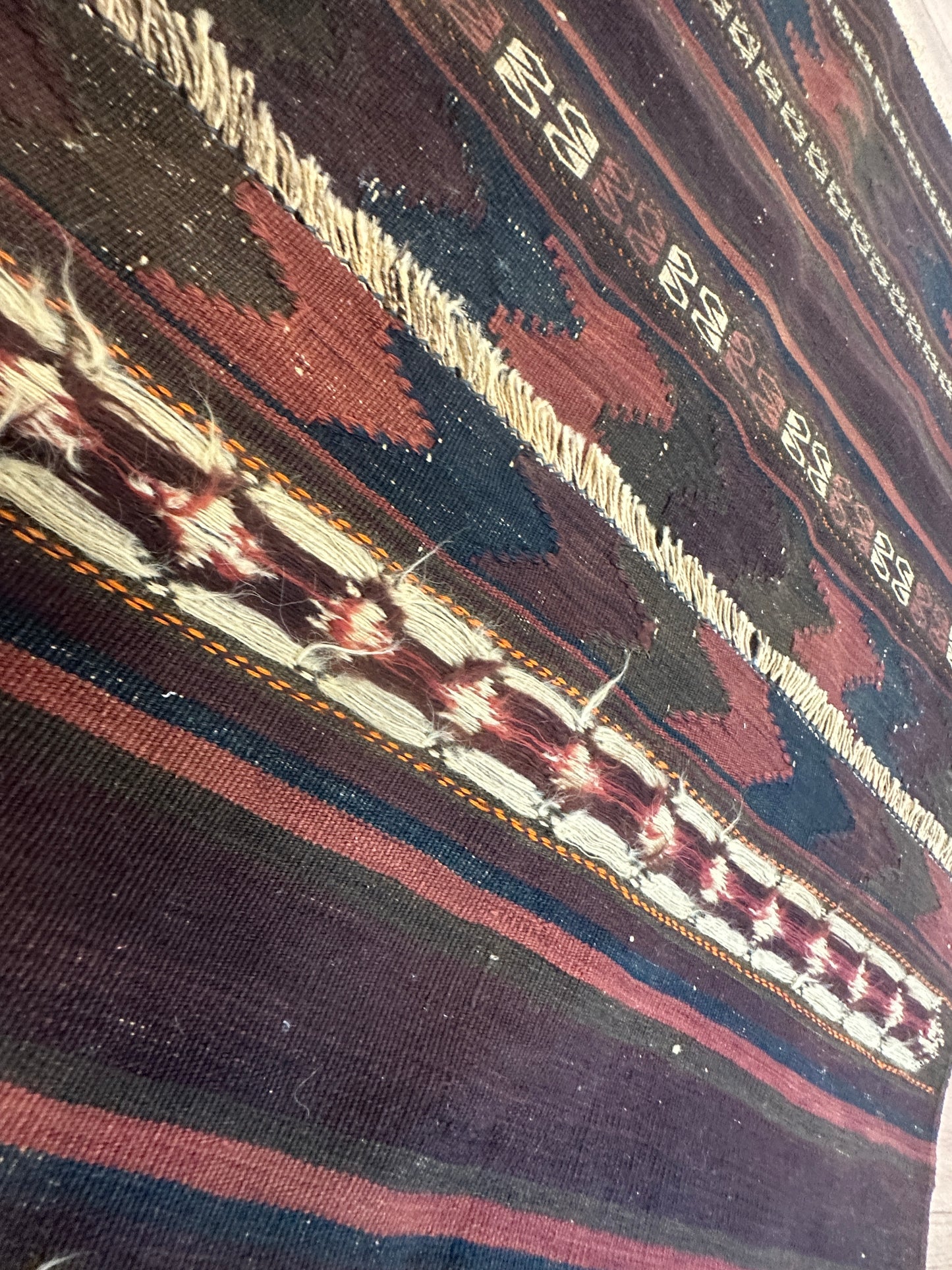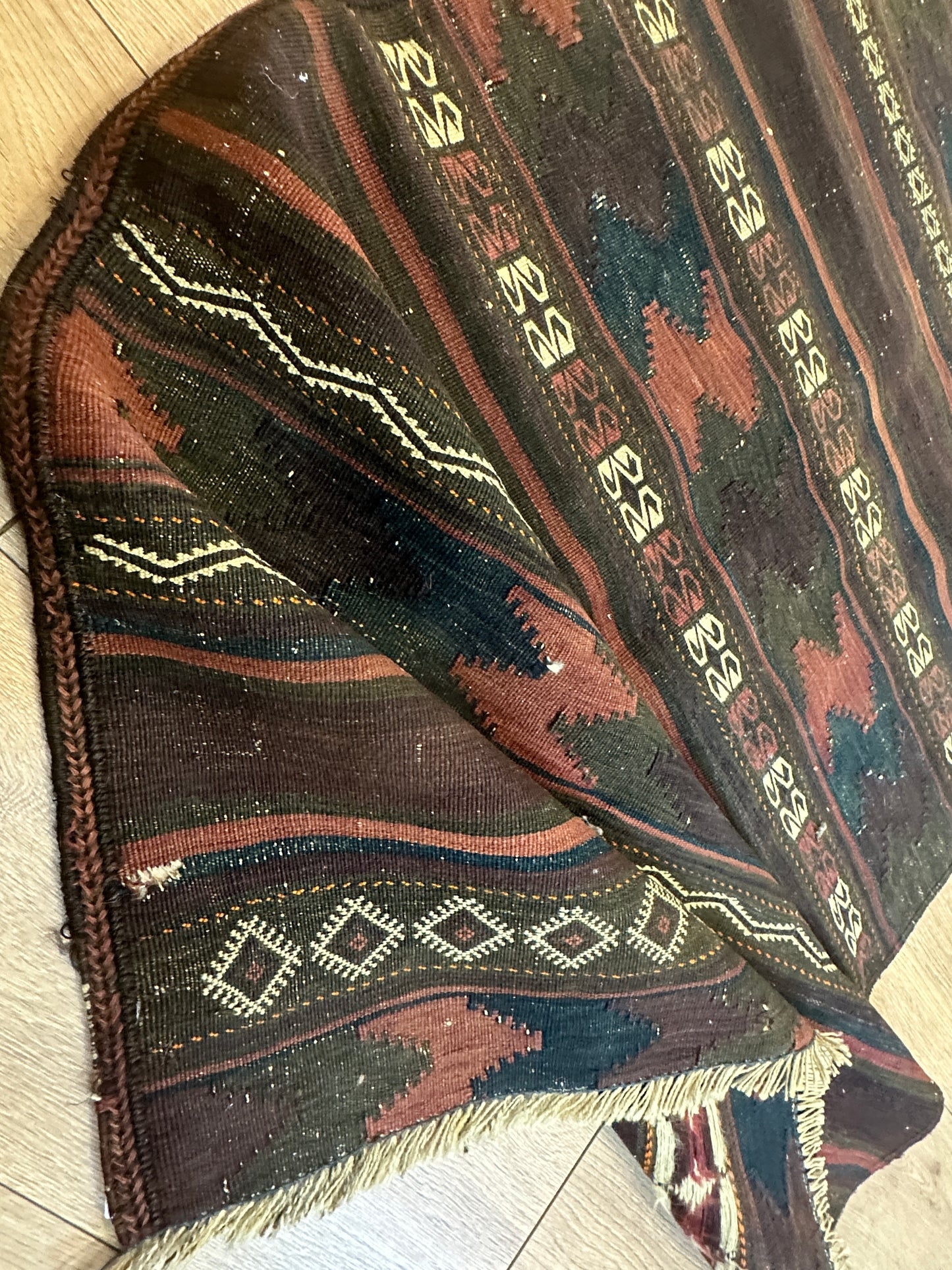 • Zustand gut: Der Teppich befindet sich in einem guten Zustand, wodurch seine historische Schönheit bewahrt bleibt. Dieser gut erhaltene Zustand macht den Teppich nicht nur ästhetisch ansprechend, sondern auch langlebig.
