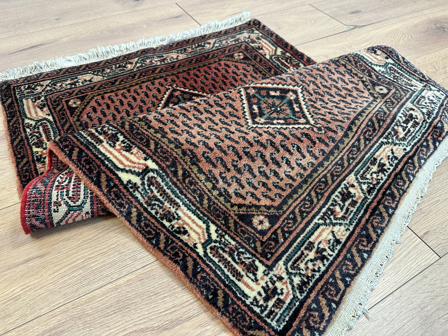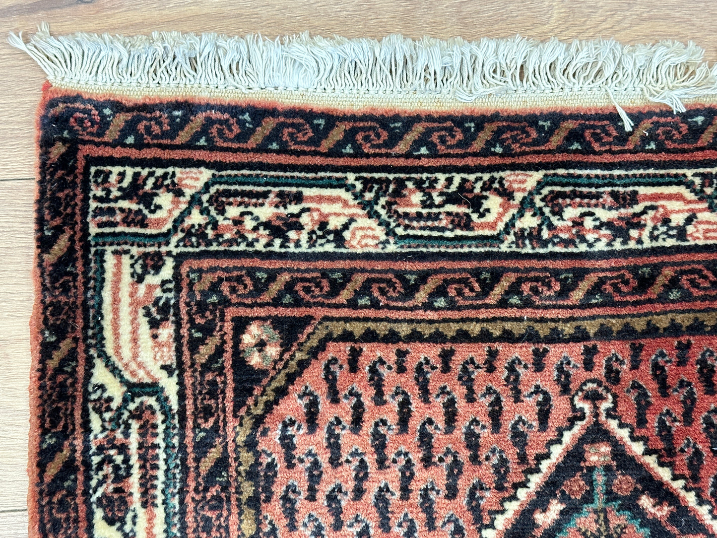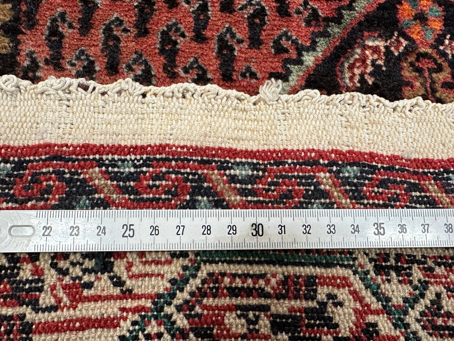 Hinweis: Aufgrund der Handarbeit kann es zu minimalen Variationen in Farbe und Muster kommen, was die Einzigartigkeit jedes Teppichs unterstreicht.
